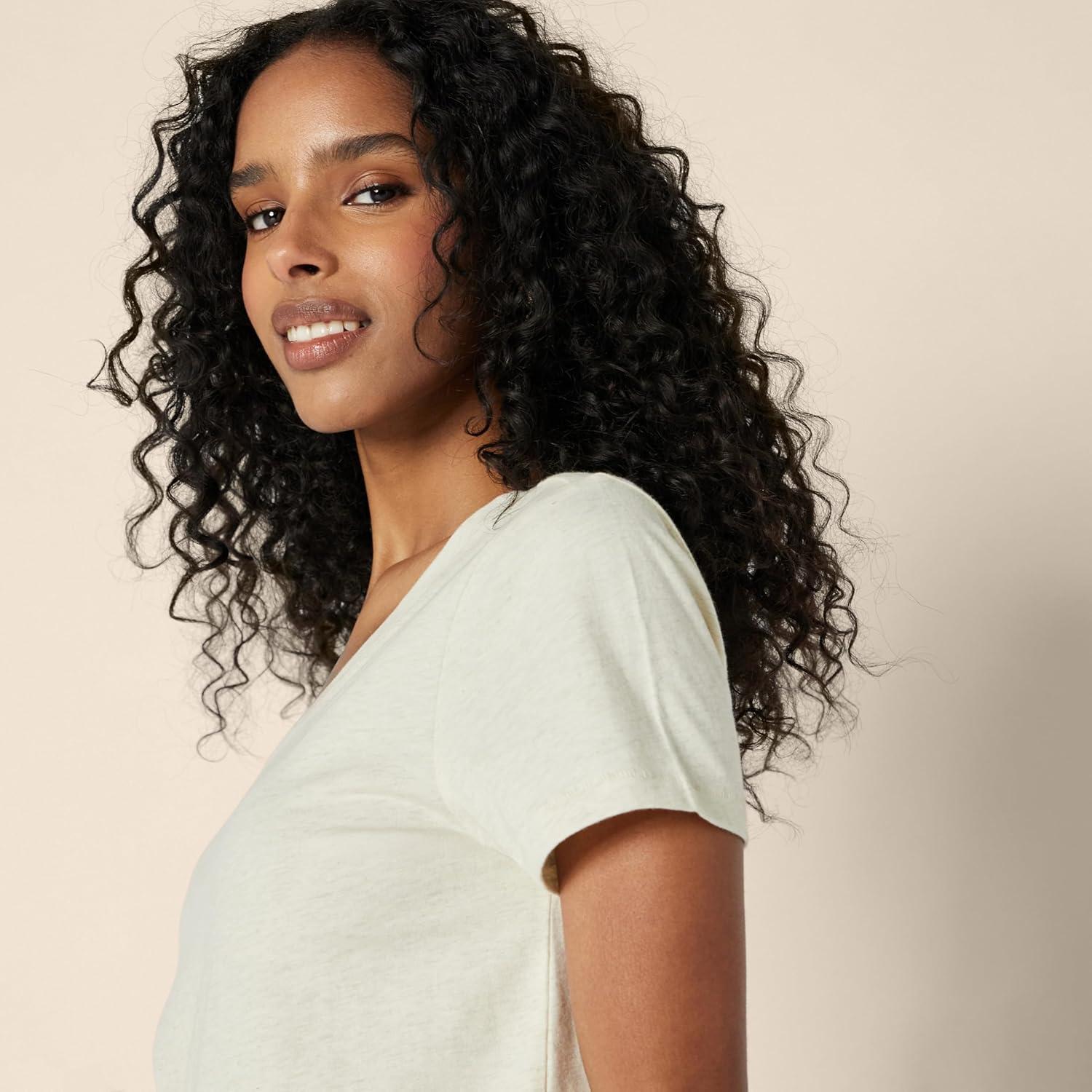 Amazon Essentials Women’s Regular Fit 100% Cotton V-Neck Short Sleeve T-Shirt, Multipacks(Sand Heather)