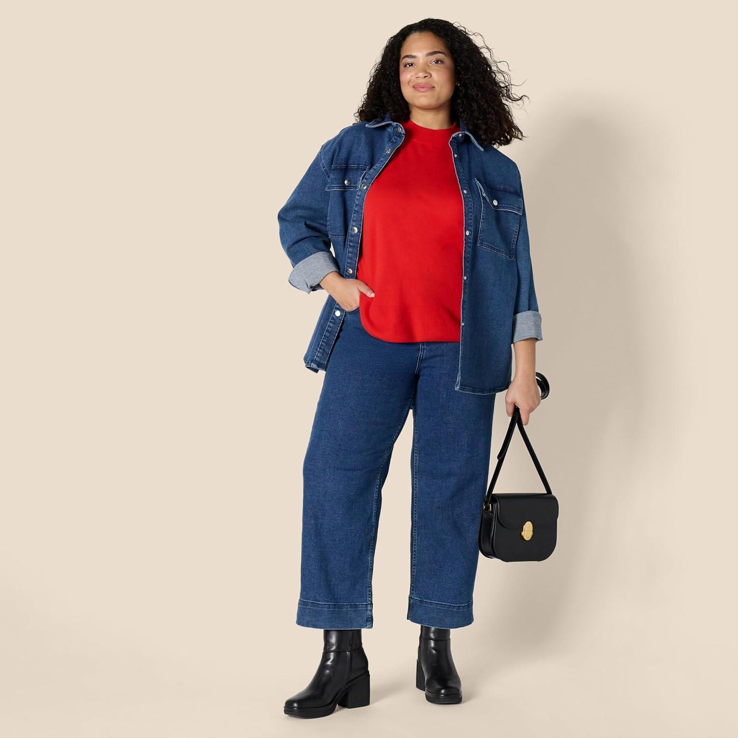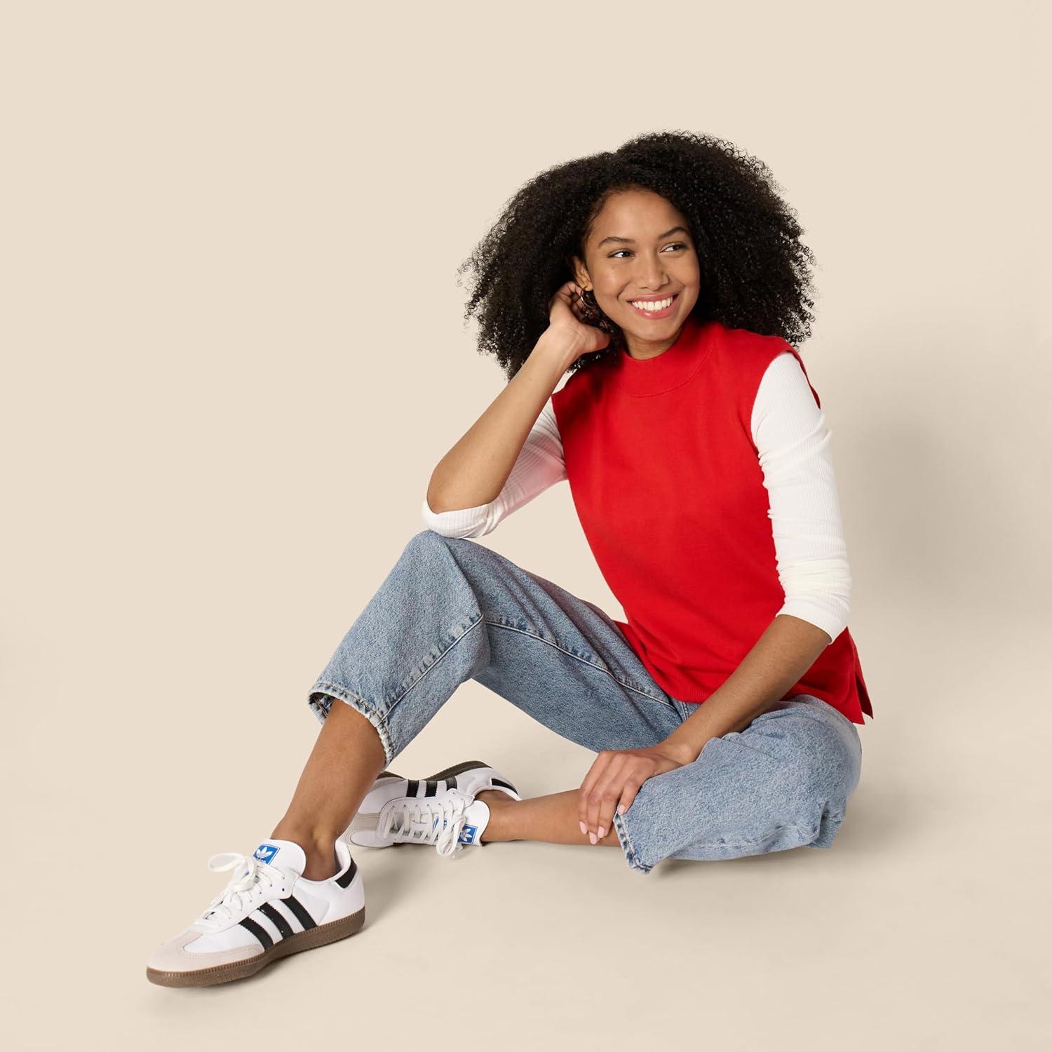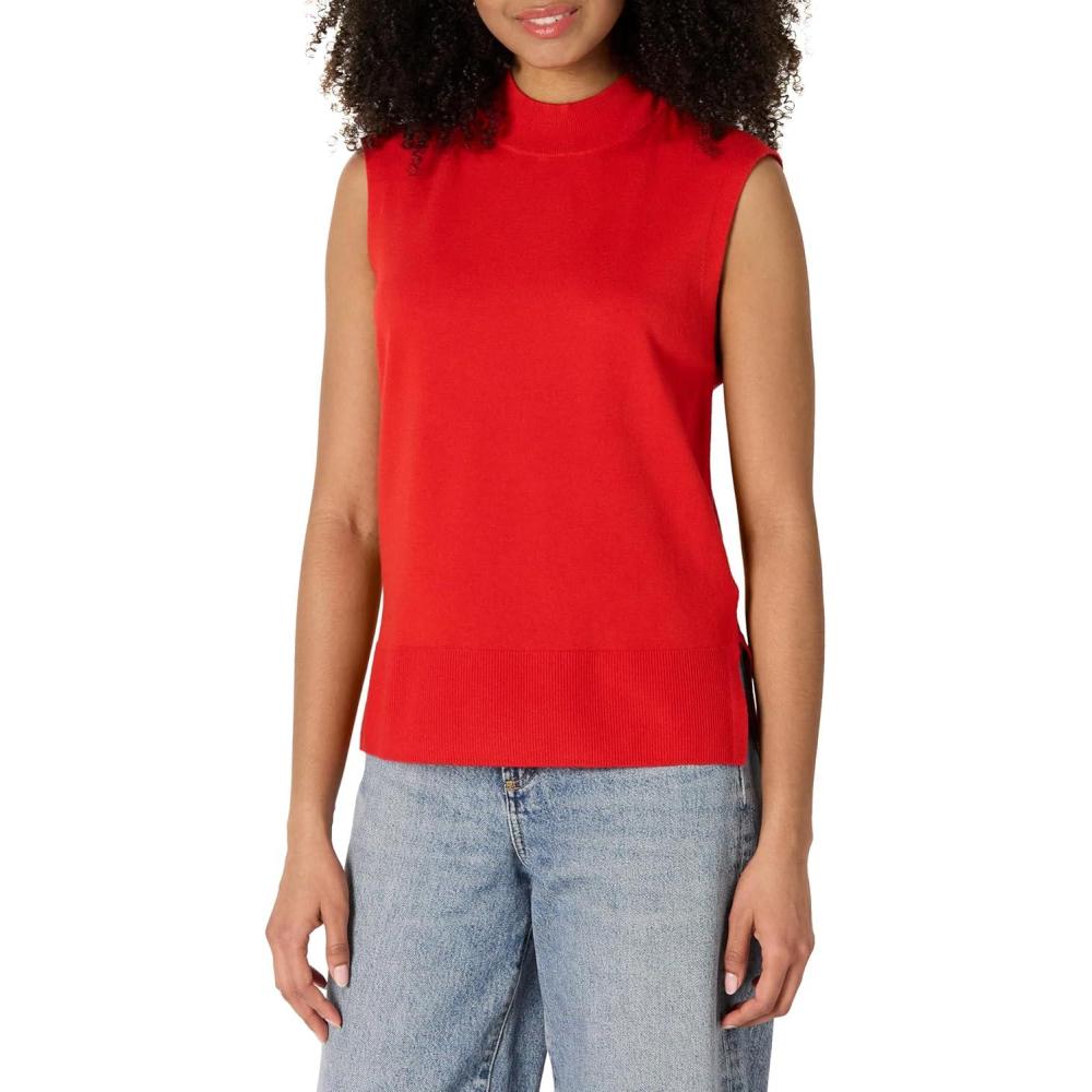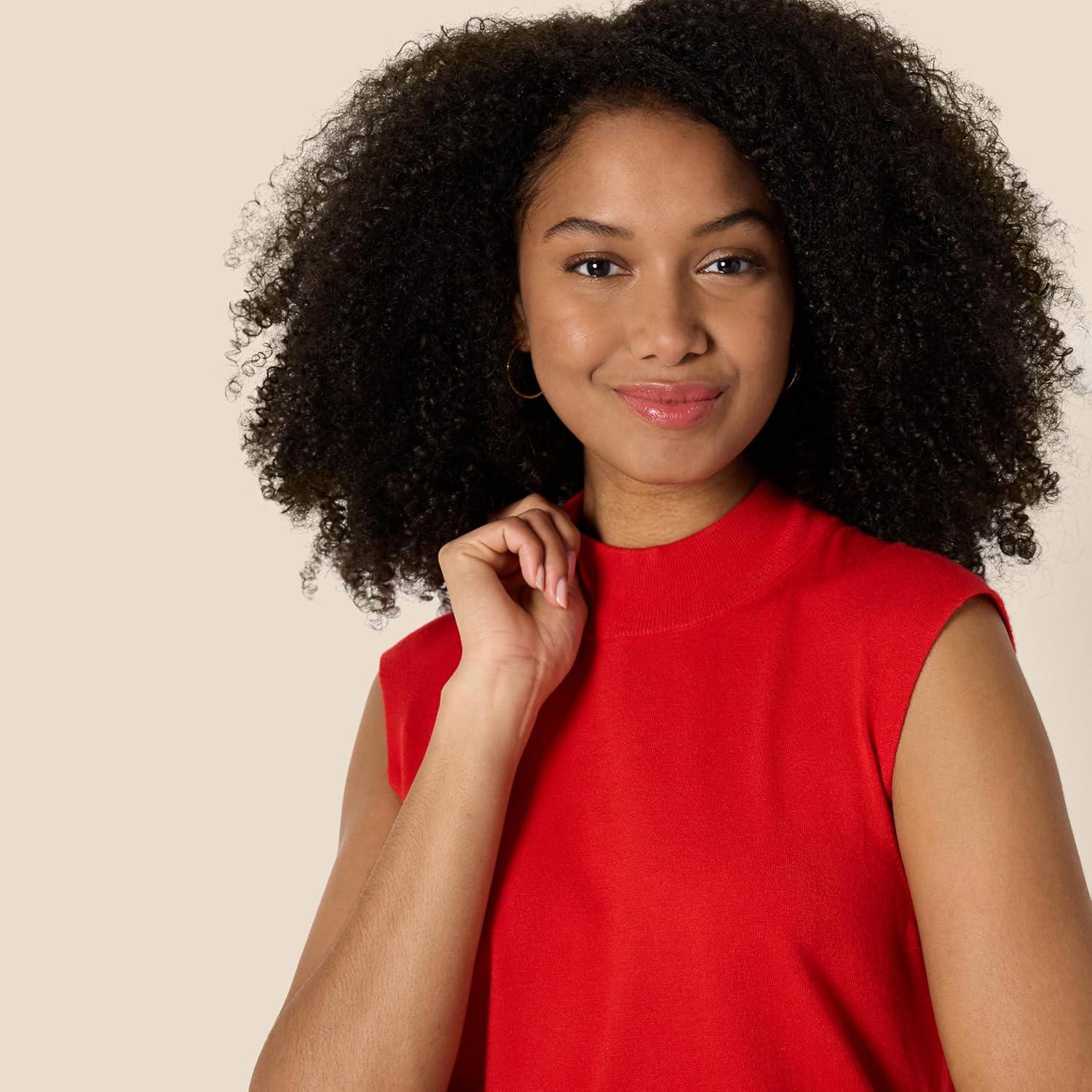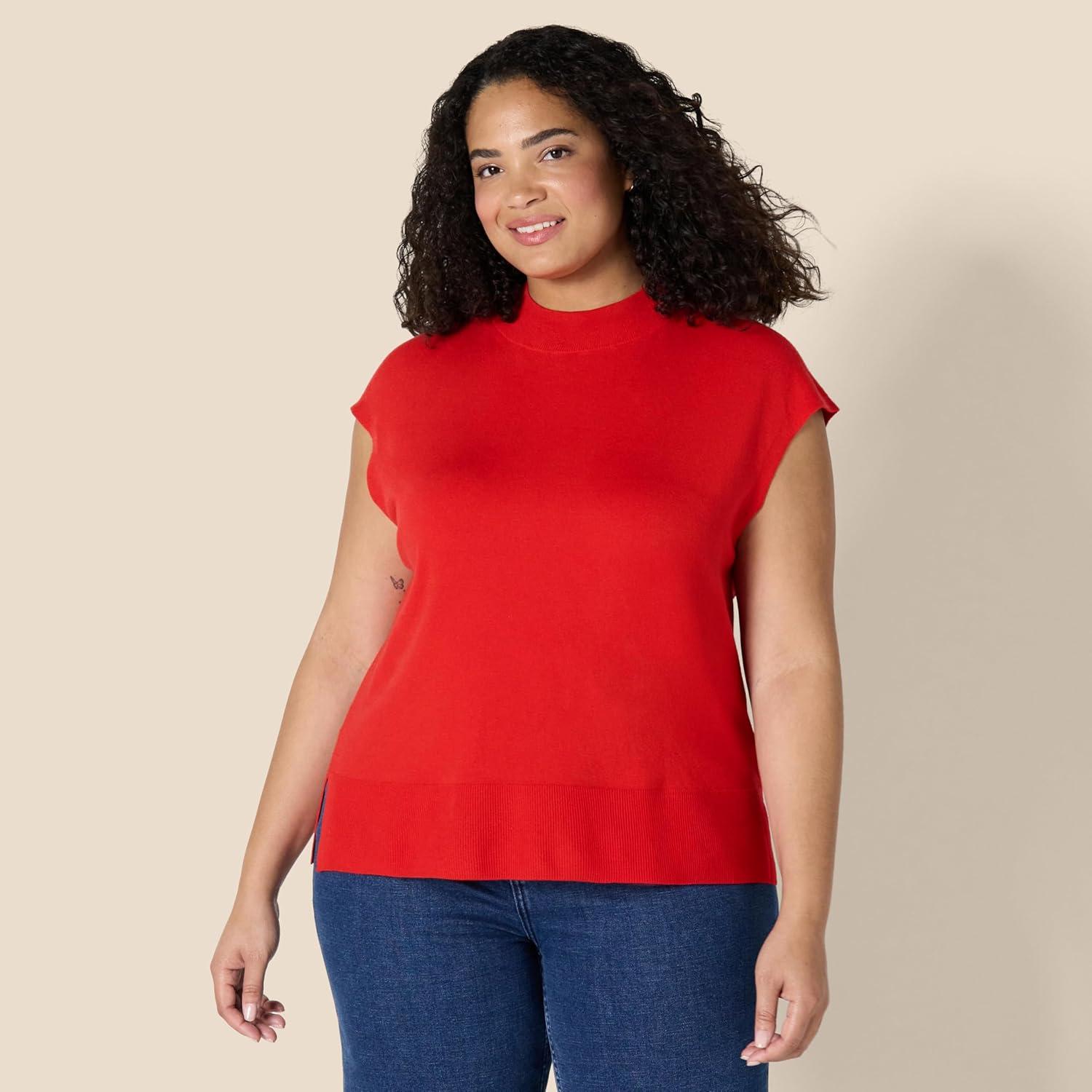 Amazon Essentials Women’s Regular-Fit Cap Sleeve Pullover Mock Neck Sweater Top(Bright Poppy Red)