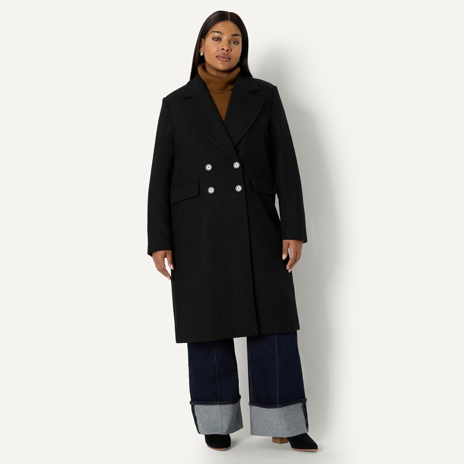 Amazon Essentials Women’s Regular-Fit Double Breasted Wool-Blend Longline Coat(Black)