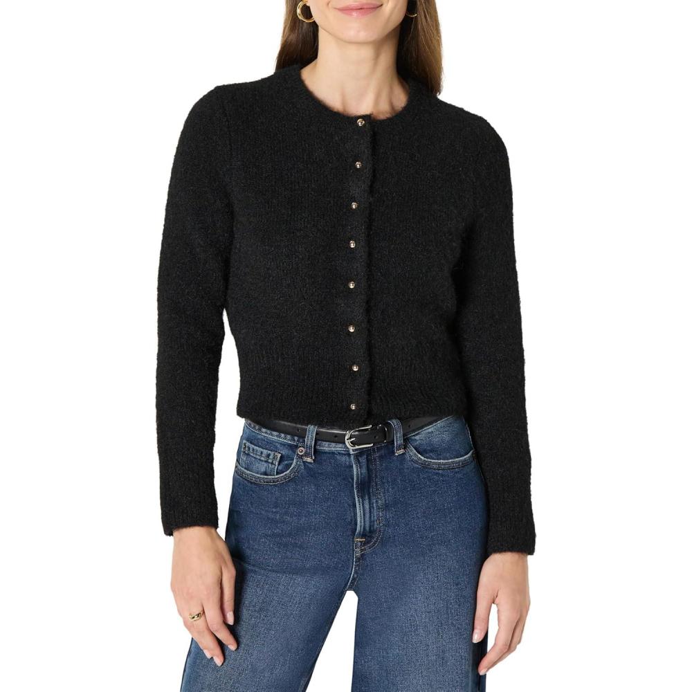 Amazon Essentials Womens Regular-Fit Faux Mohair Button-Down Cardigan(Black)