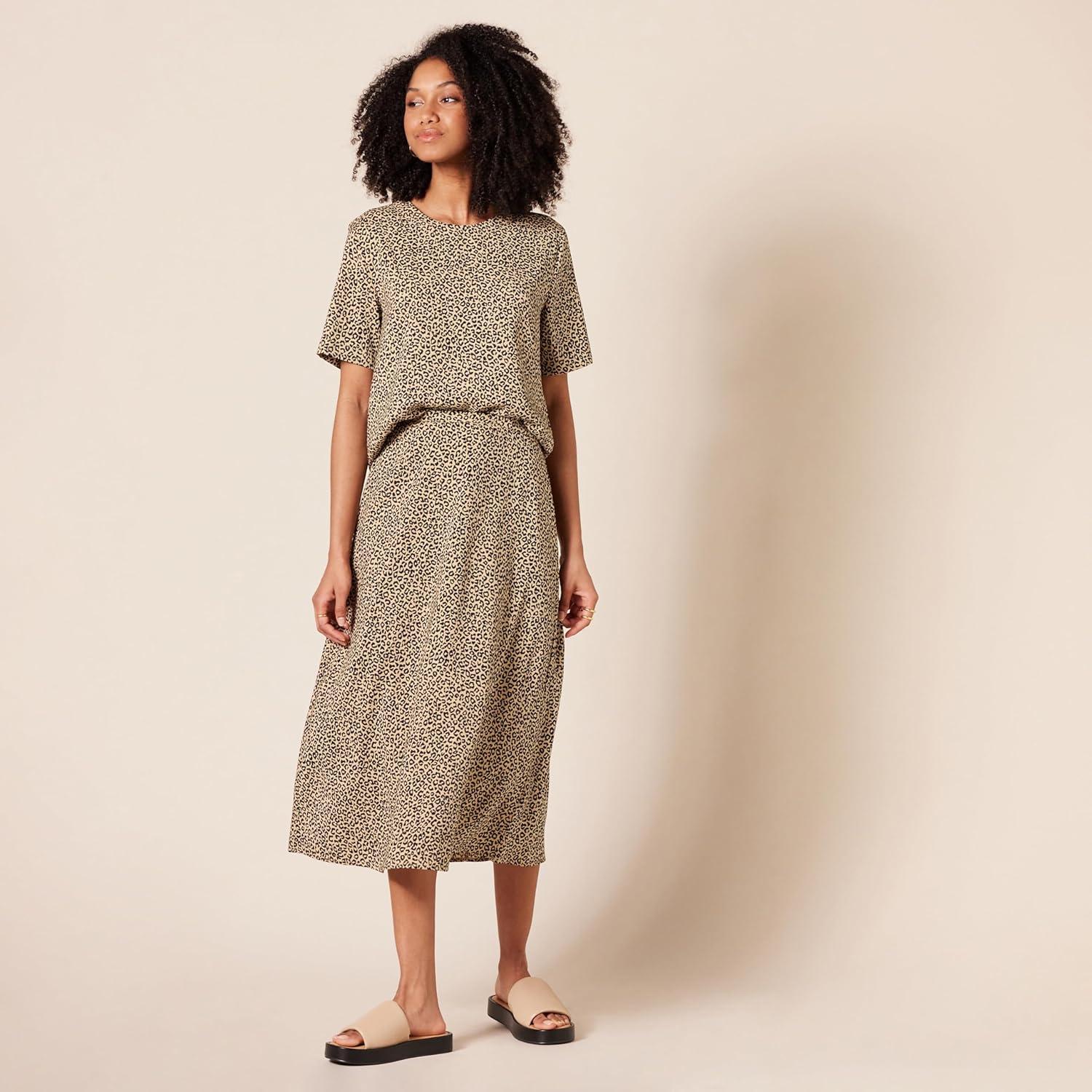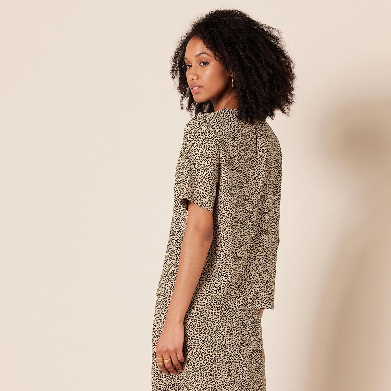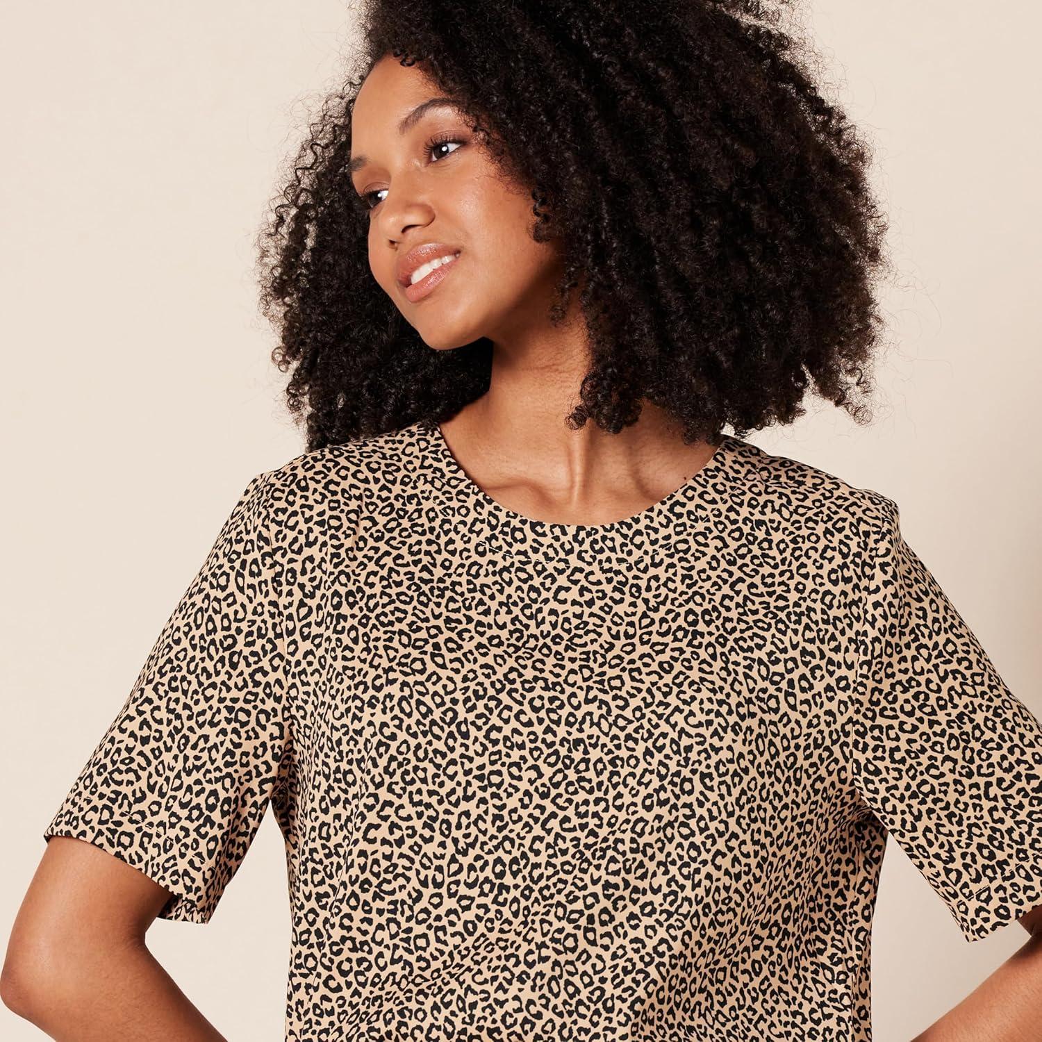Amazon Essentials Women’s Regular-Fit Georgette Short Sleeve Top(Taupe Leopard)