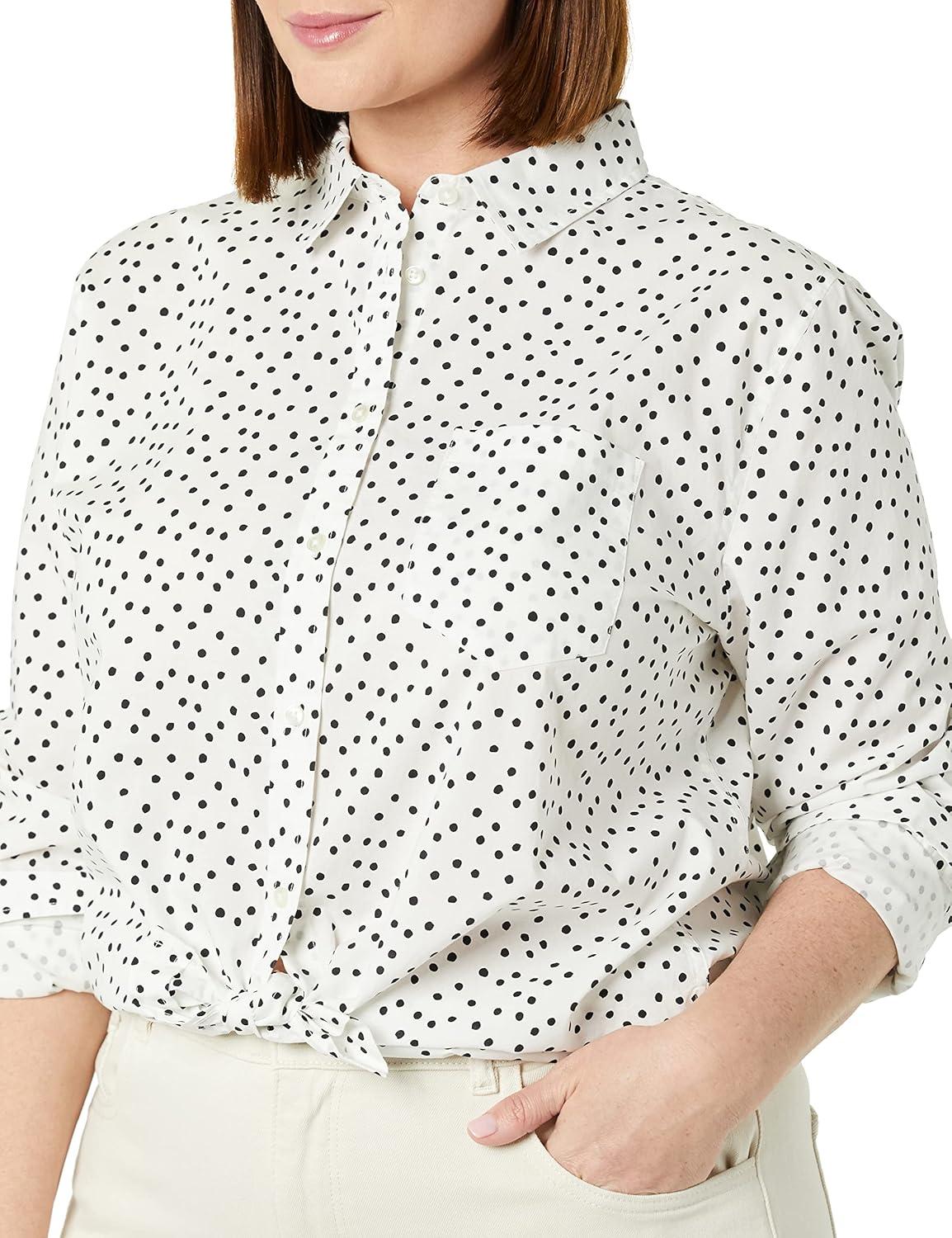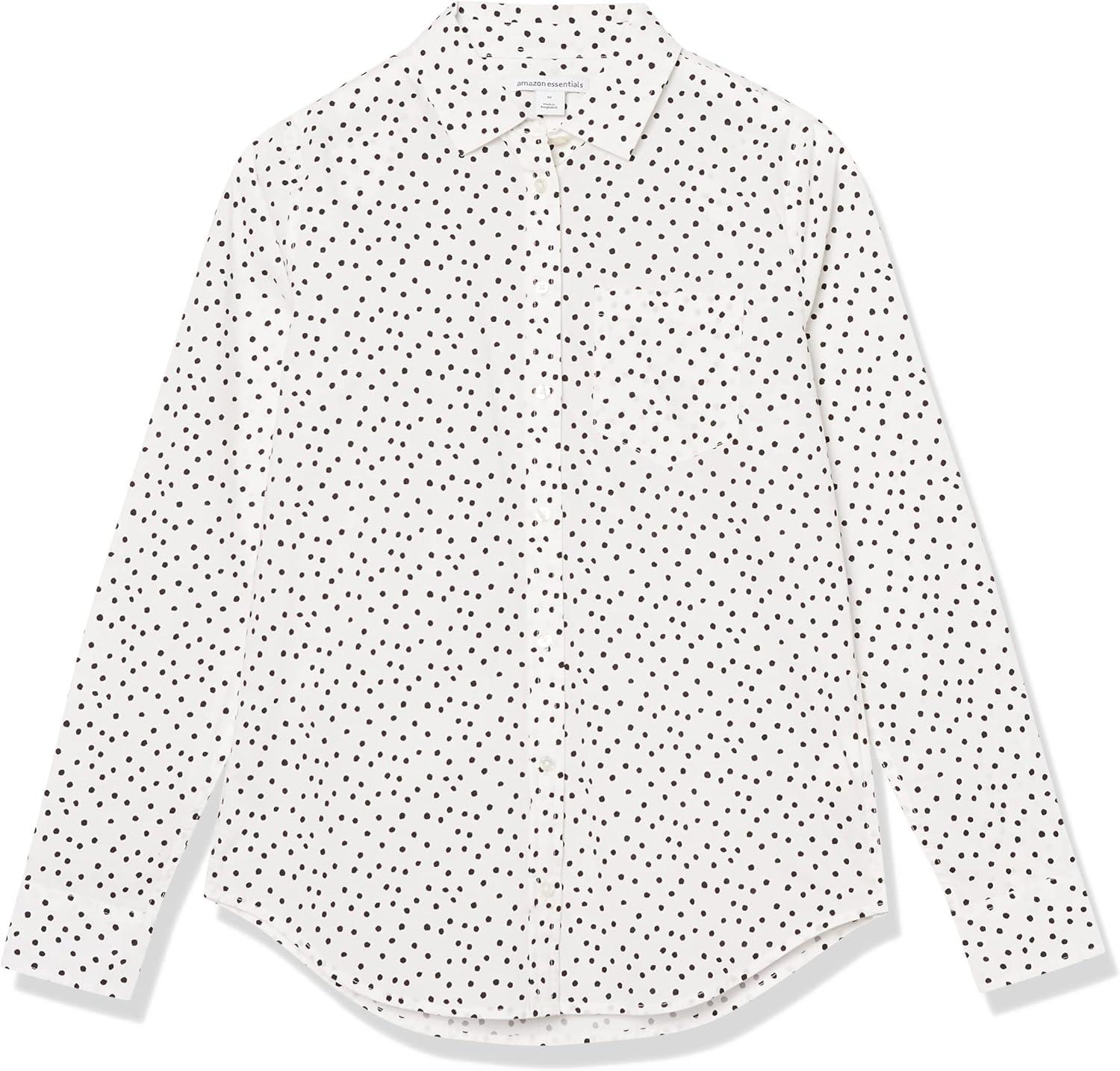 Amazon Essentials Women’s Regular-Fit Long-Sleeve Button-Down Poplin Shirt(Black White Dots)