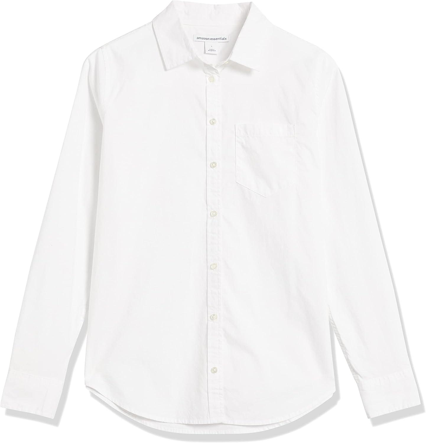 Amazon Essentials Women's Regular-Fit Long-Sleeve Button-Down Poplin Shirt(White)