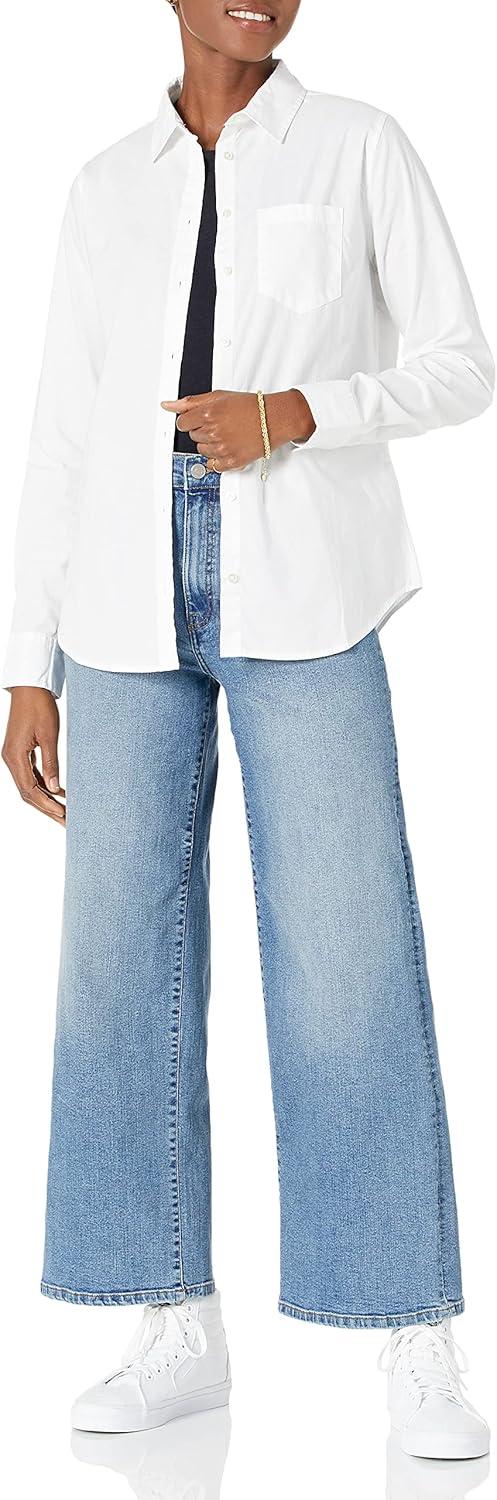 Amazon Essentials Women’s Regular-Fit Long-Sleeve Button-Down Poplin Shirt(White)