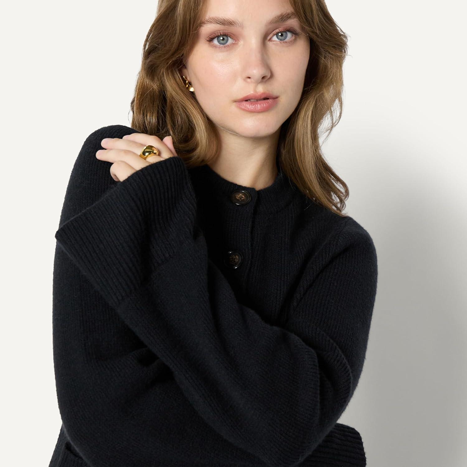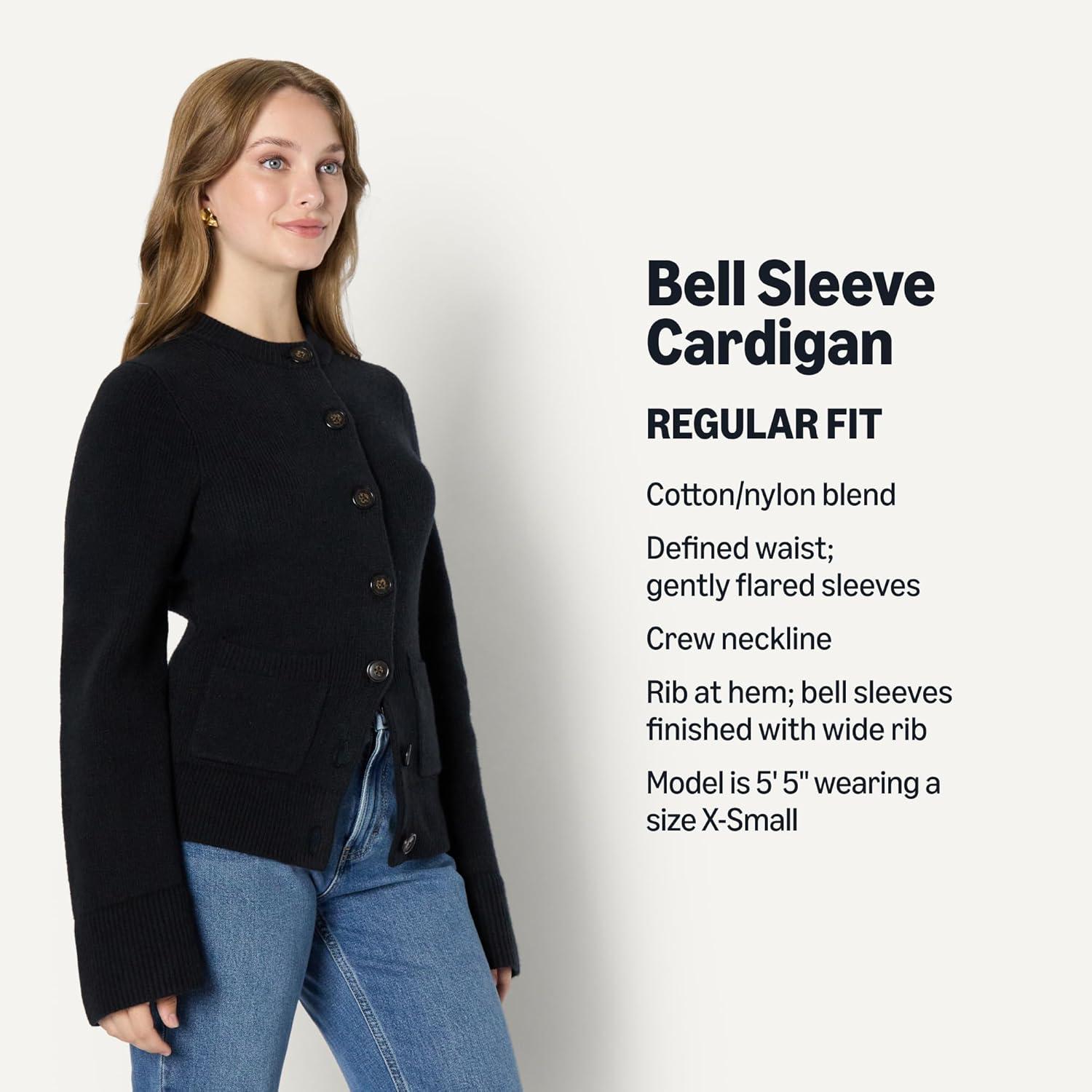 Amazon Essentials Womens Regular-Fit Long-Sleeve Cardigan with Bell Sleeves and Shaped Waist(Black)