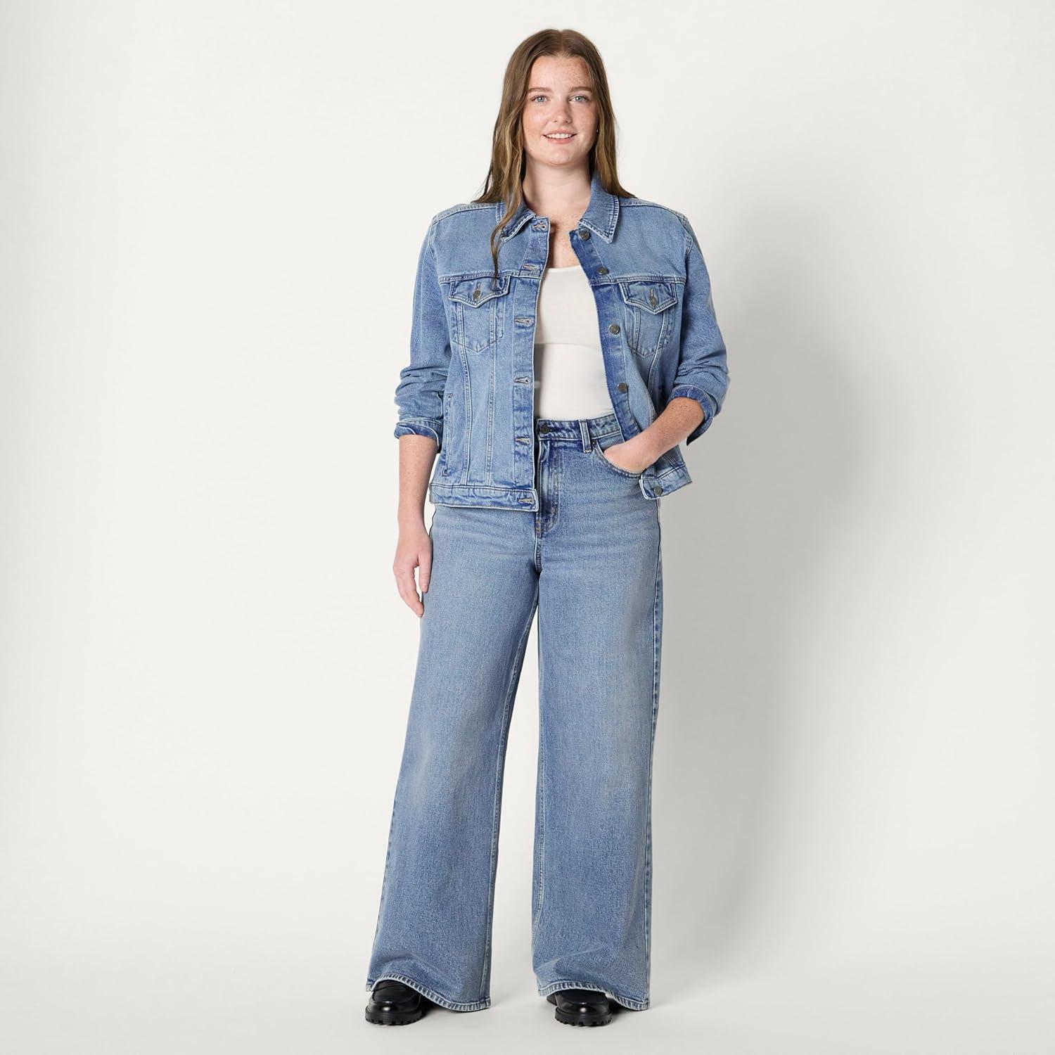 Amazon Essentials Women's Regular-Fit Low Stretch Denim Button-Front Trucker Jacket(Authentic Medium Wash)