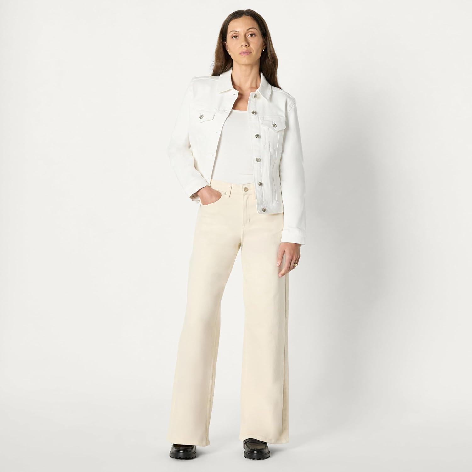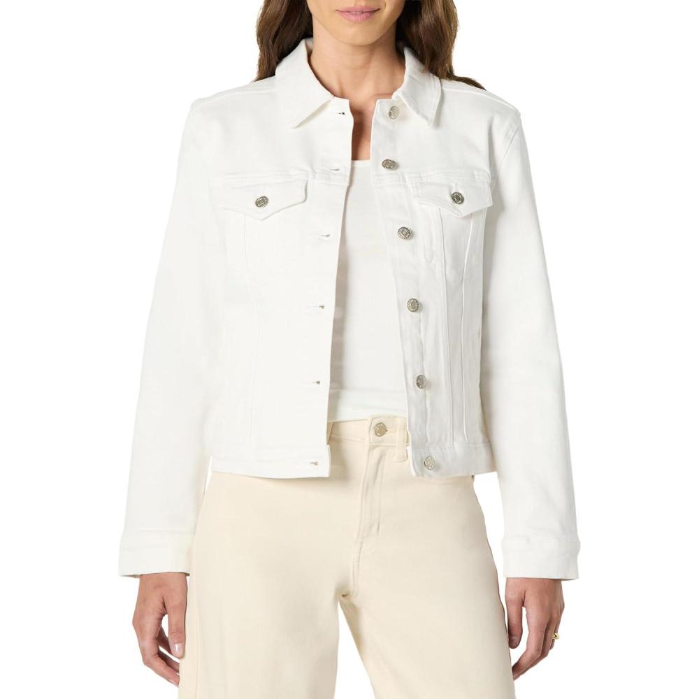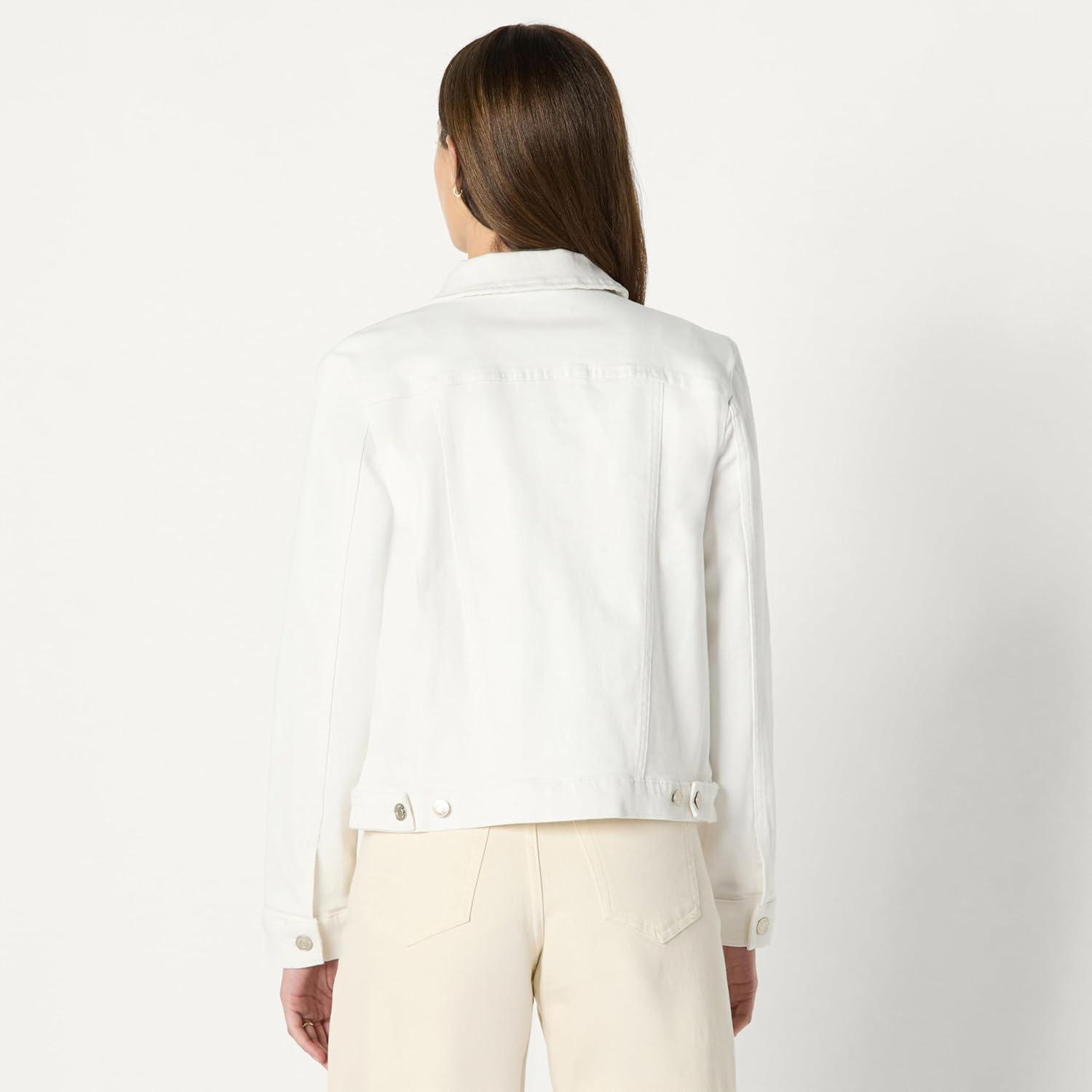 Amazon Essentials Women’s Regular-Fit Low Stretch Denim Button-Front Trucker Jacket(White)