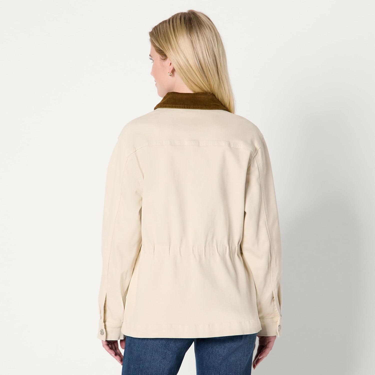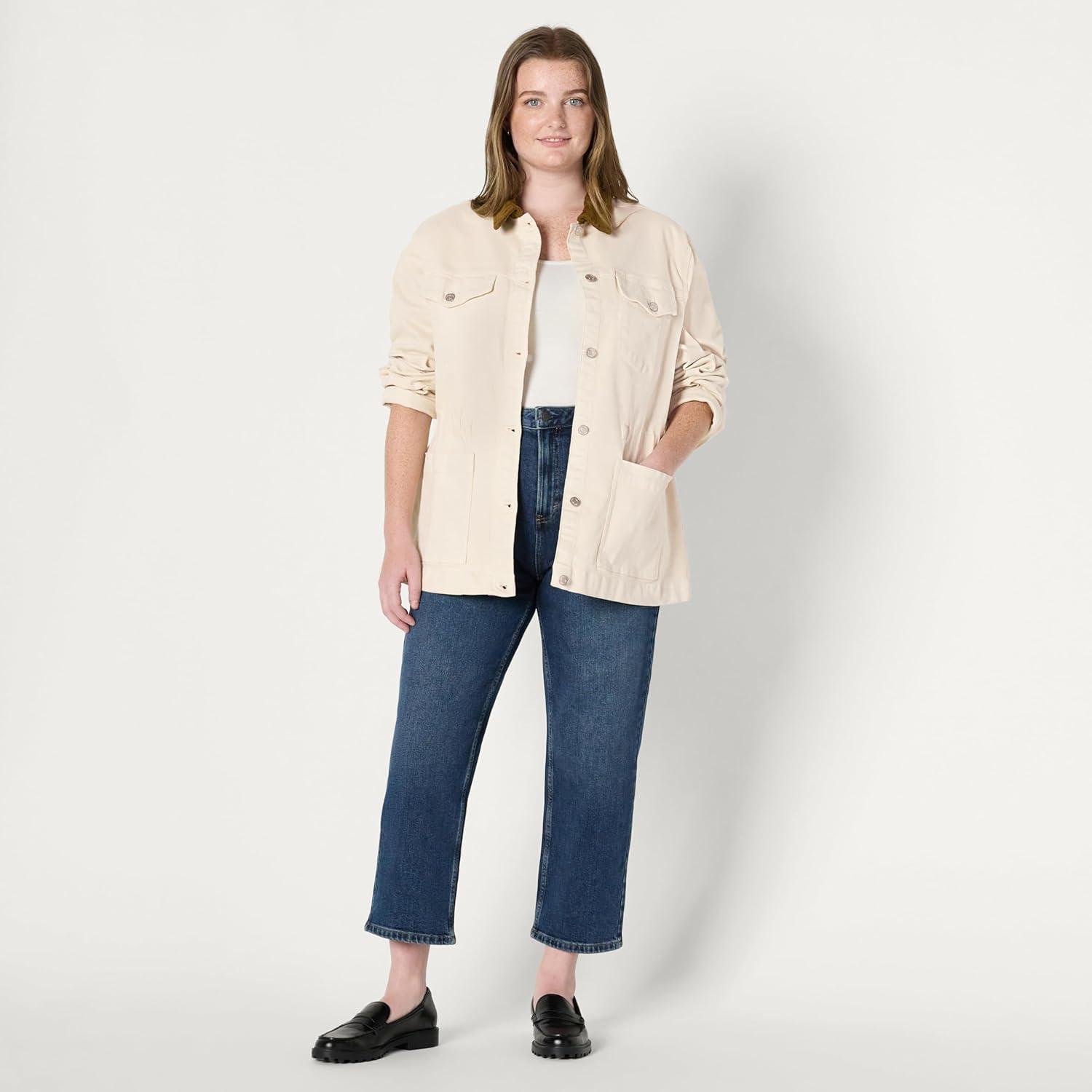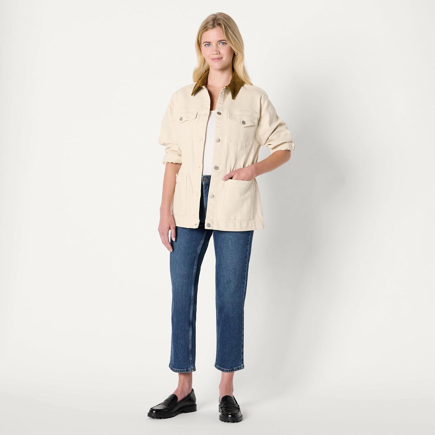 Amazon Essentials Women’s Regular-Fit Low Stretch Denim Cinched Waist Barn Jacket(Ecru)