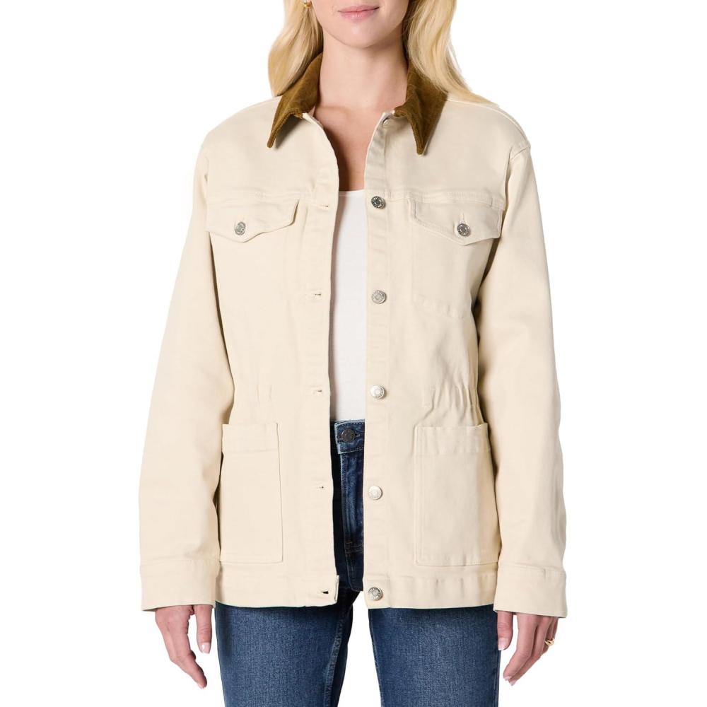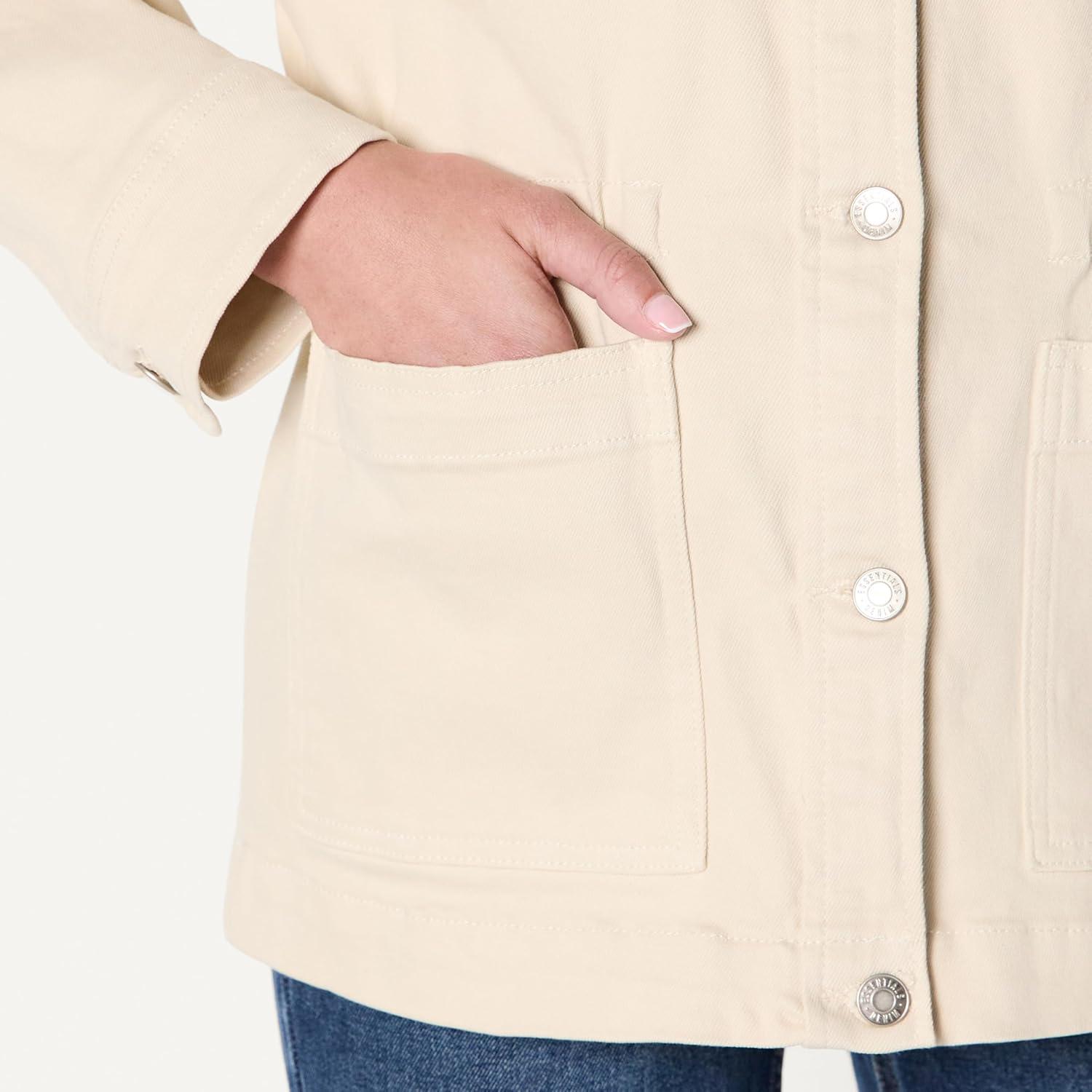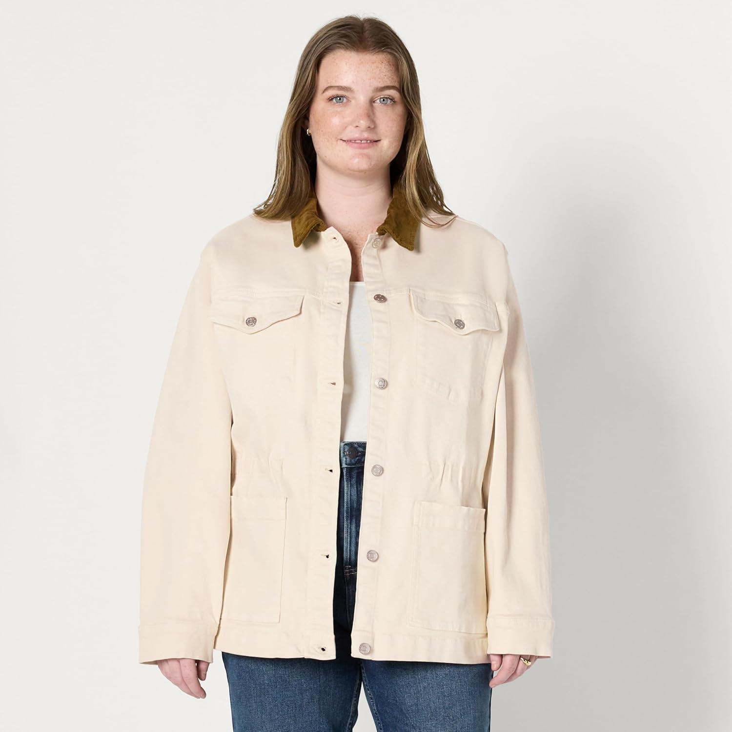 Don’t wait, get up to 50% off on Amazon Essentials Women’s Regular-Fit Low Stretch Denim Cinched Waist Barn Jacket(Ecru) during our end-of-season sale event.