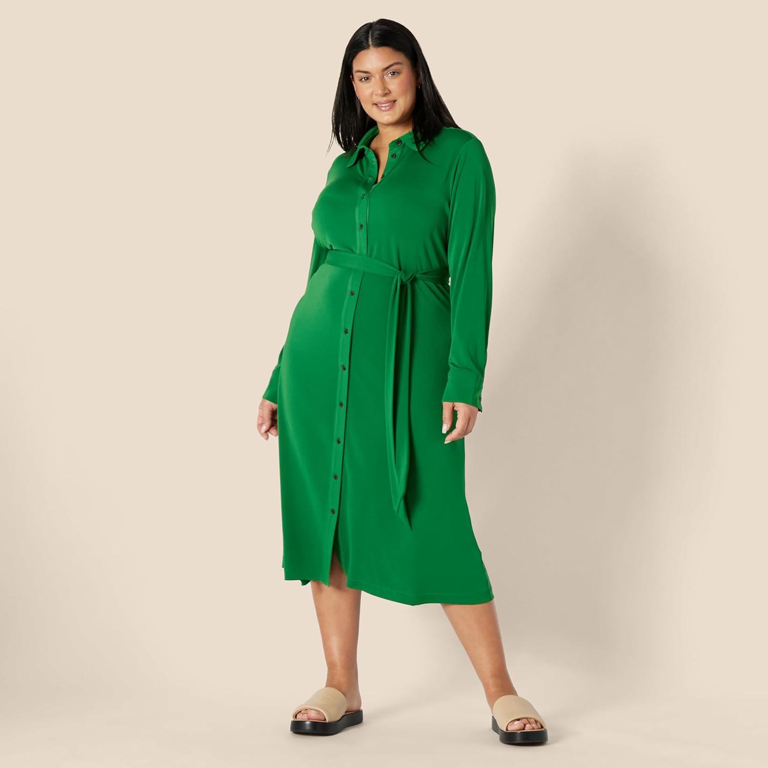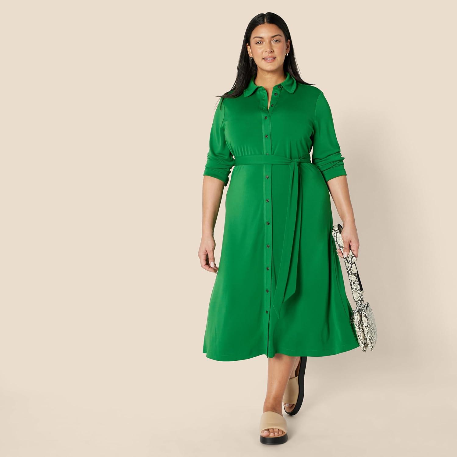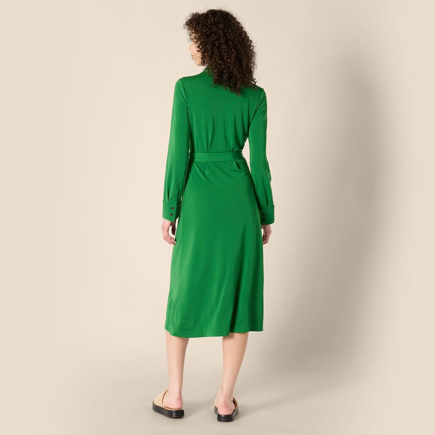 Amazon Essentials Women's Regular-Fit Matte Jersey Midi Length Dress(Emerald Green)