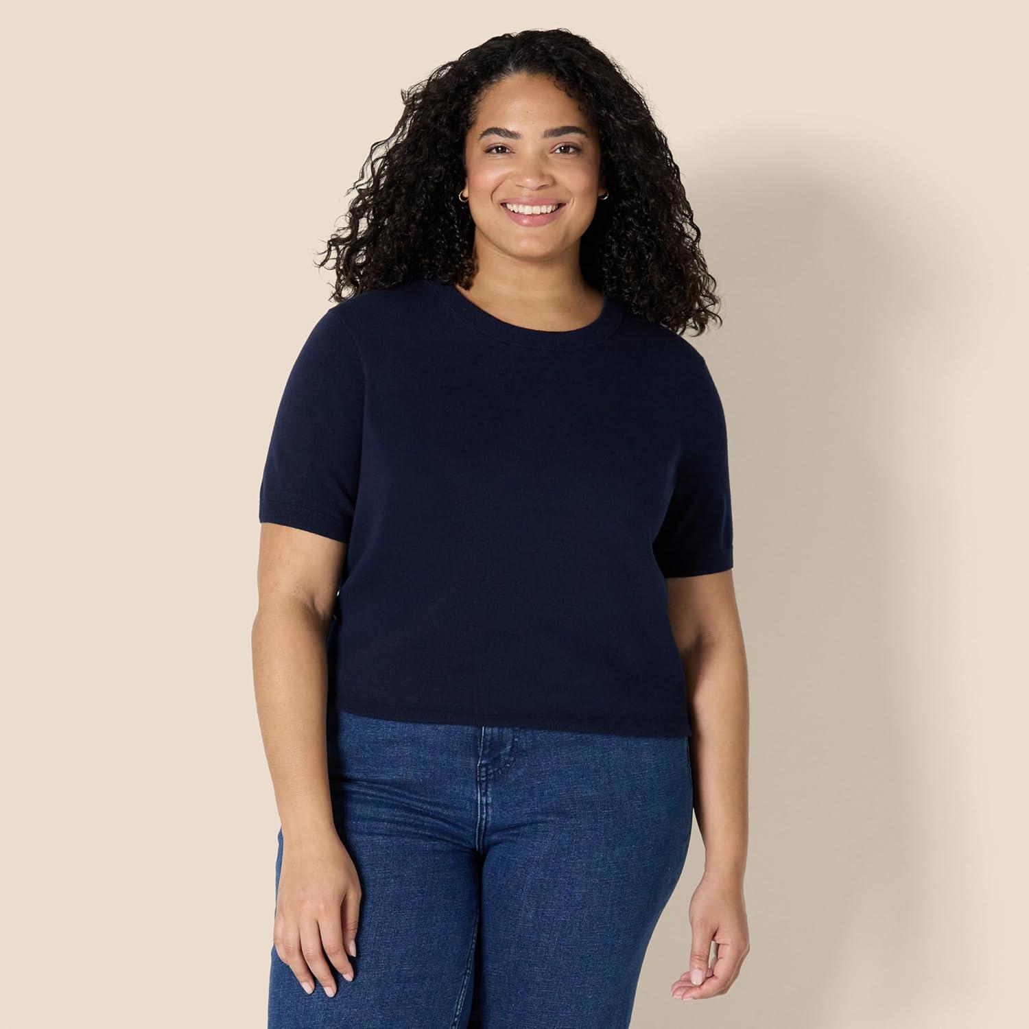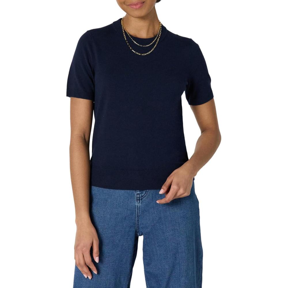 Amazon Essentials Women’s Regular-Fit Short Sleeve Pullover Sweater Top(Navy)