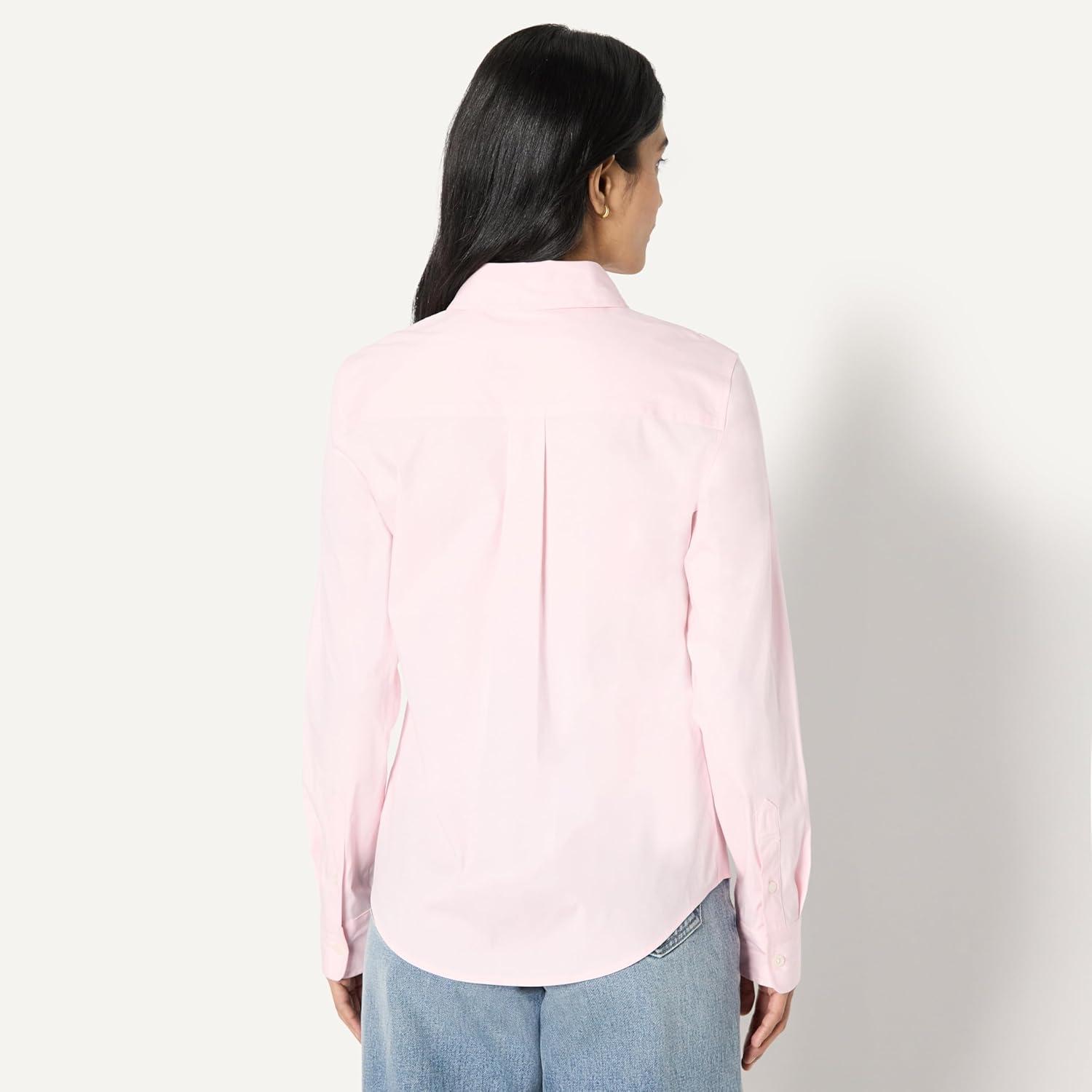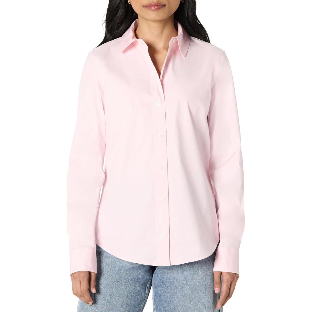 Amazon Essentials Womens Regular-Fit Stretch Poplin Button-Up Dress Shirt(Light Pink)
