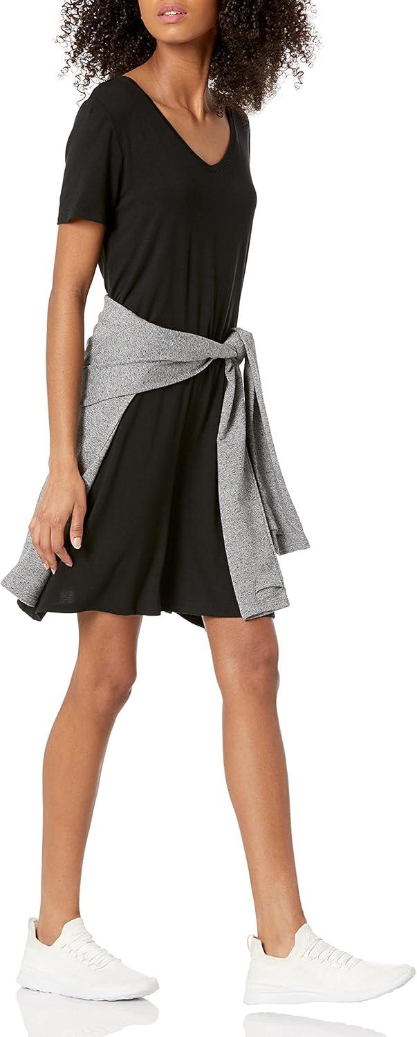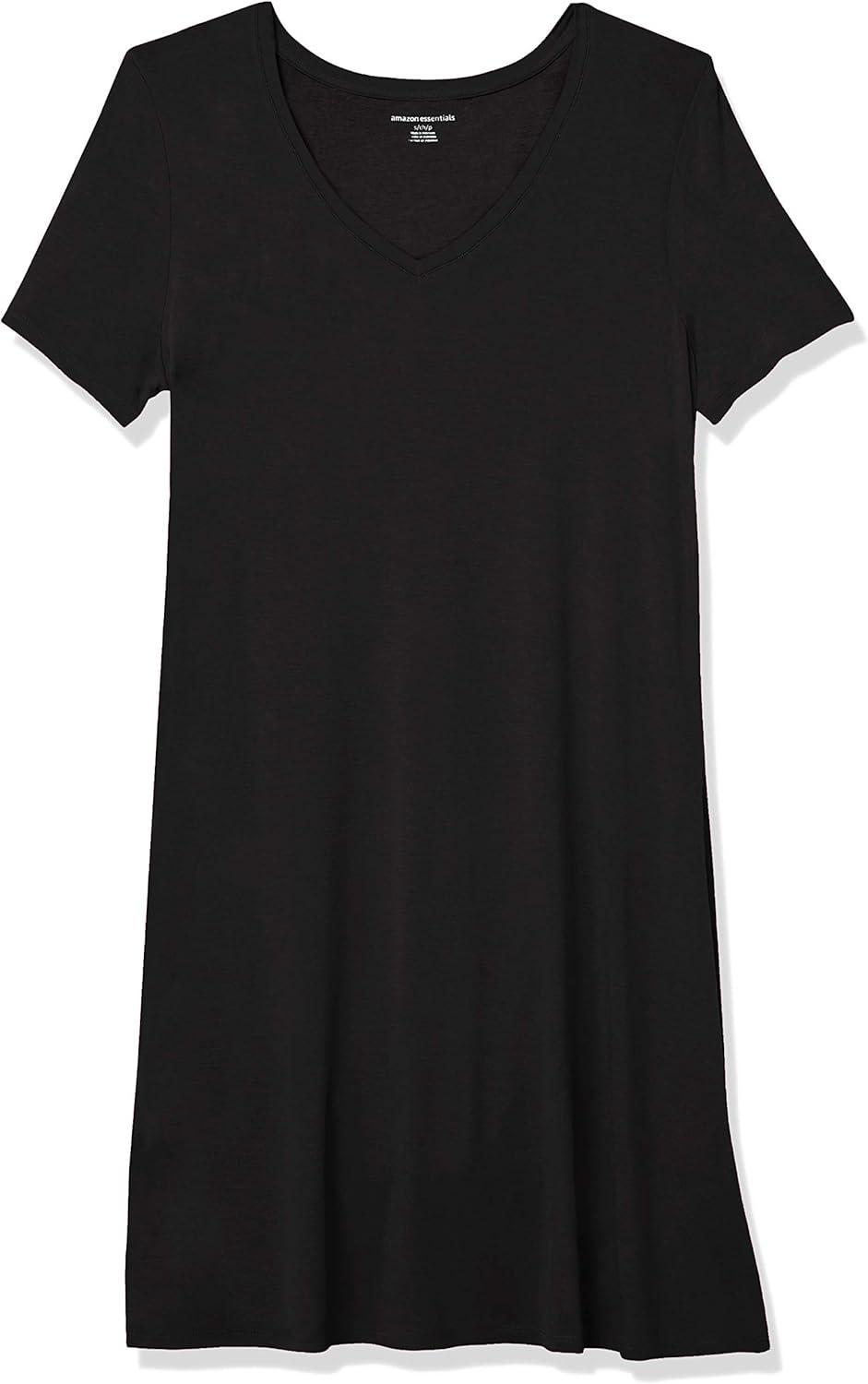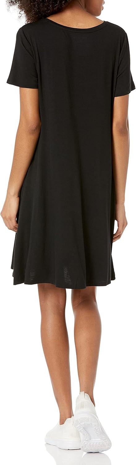 Amazon Essentials Women’s Regular Short-Sleeve V-Neck Swing Dress(Black)