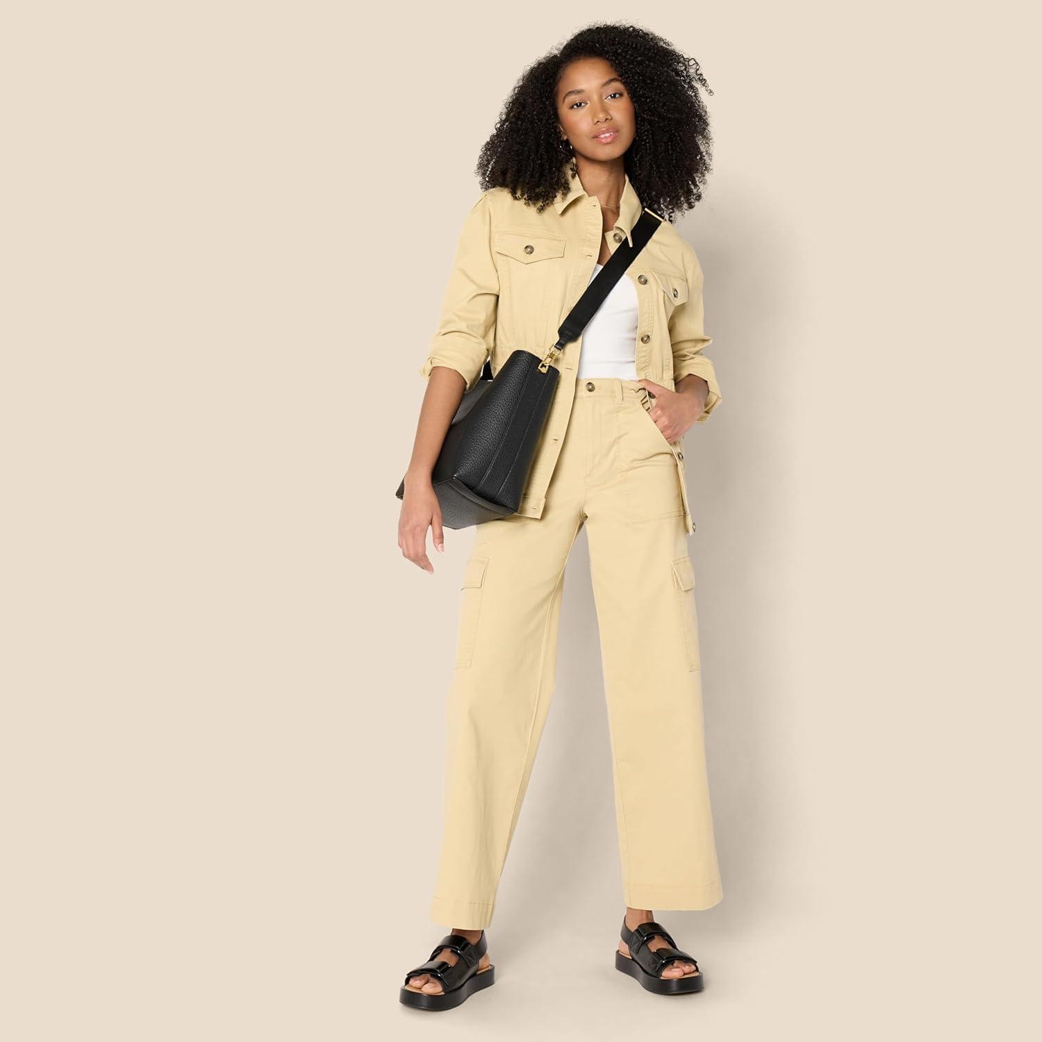 Amazon Essentials Women’s Relaxed- Fit Dropped Shoulder Midweight Cotton Twill Jacket(Tan)