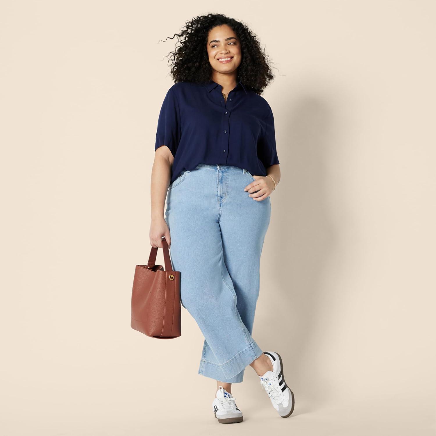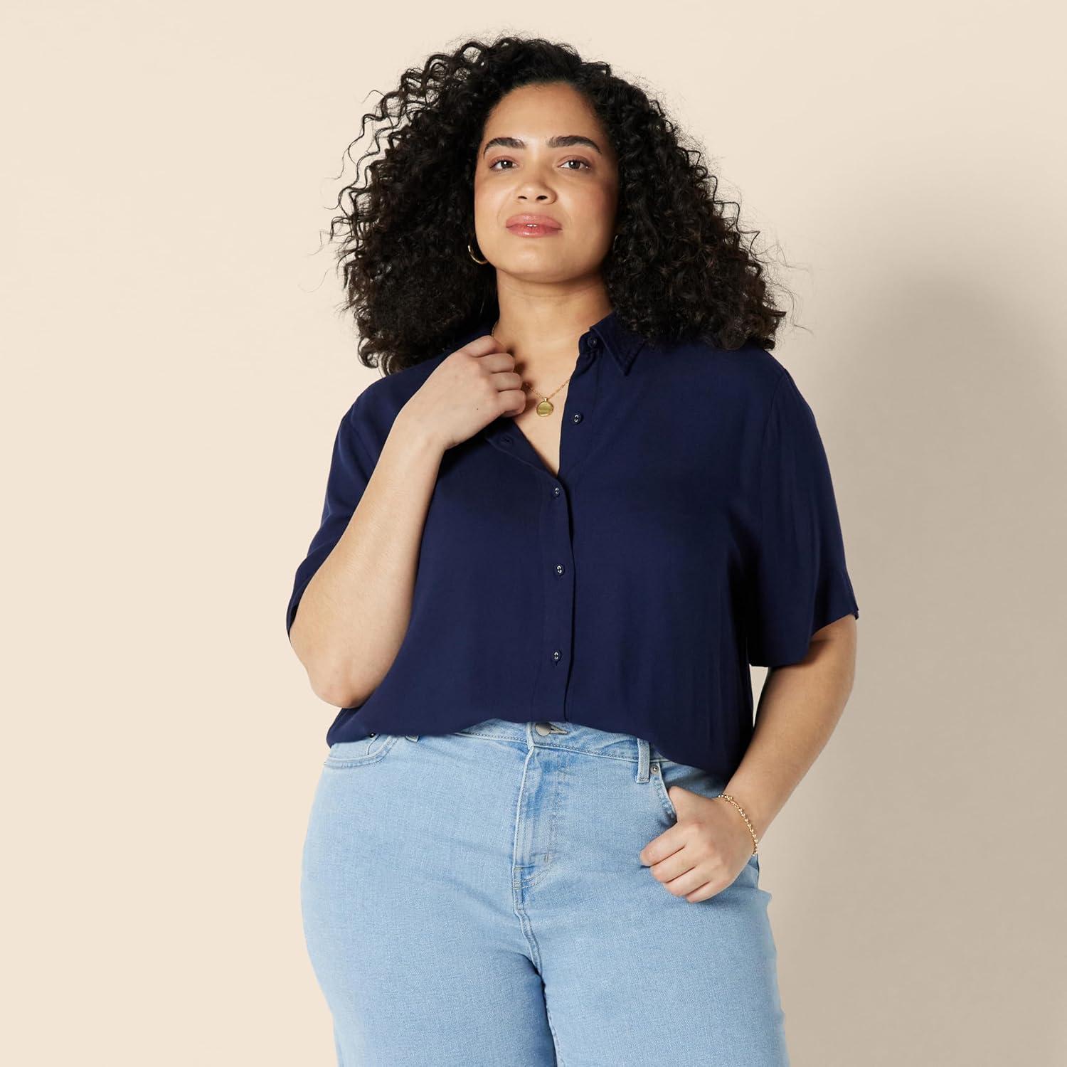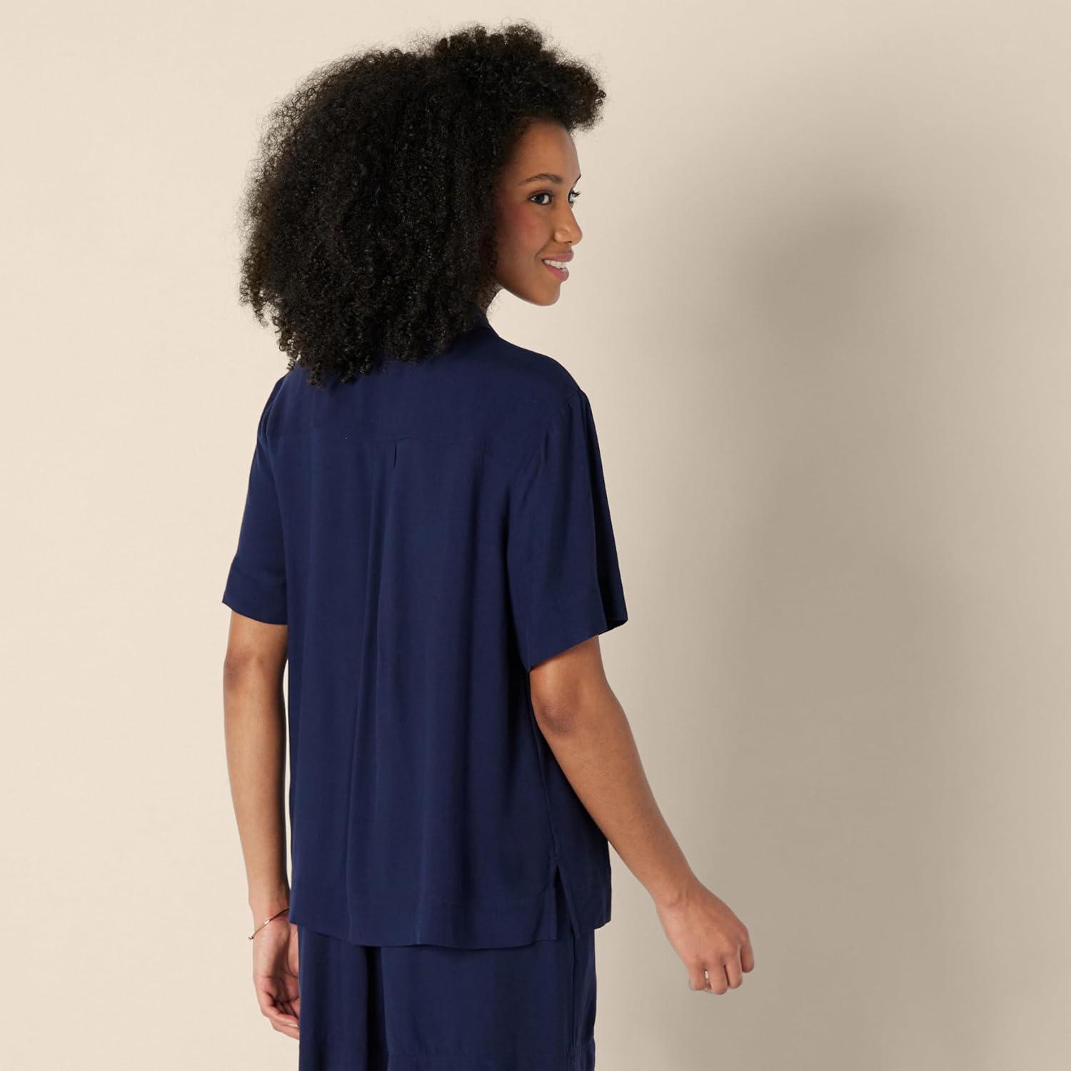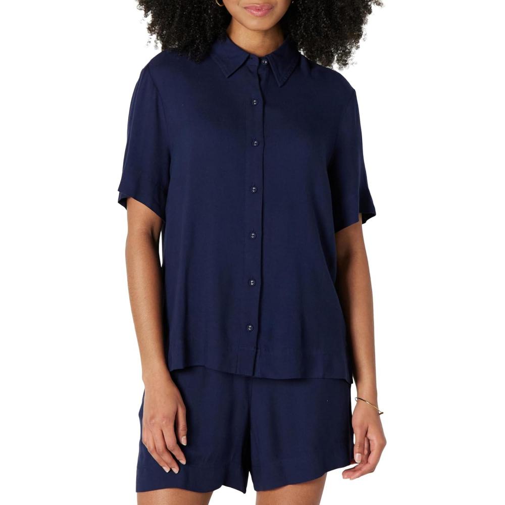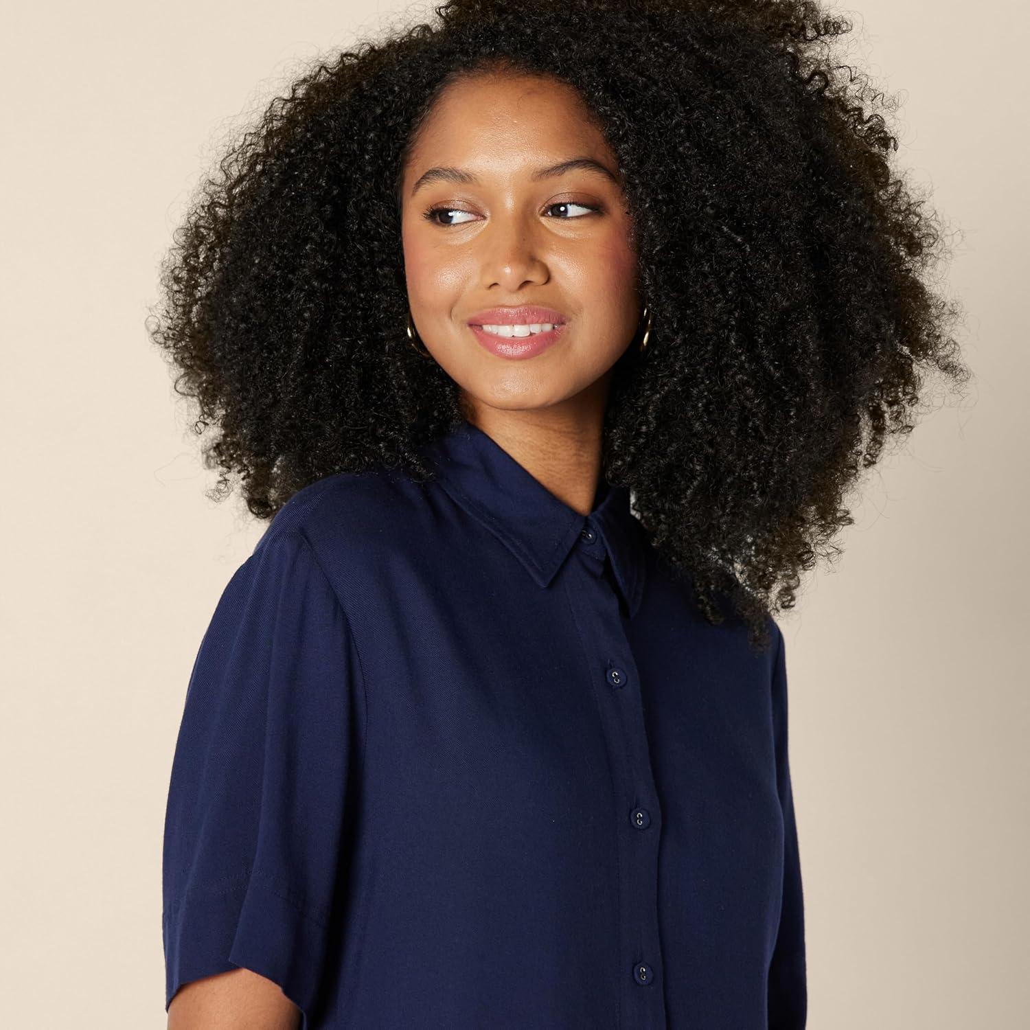 Amazon Essentials Women’s Relaxed-Fit Fluid Twill Button-Down Shirt (Short Sold Separately)(Navy)