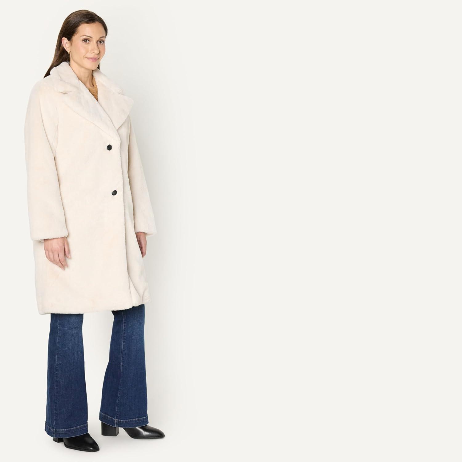 Amazon Essentials Womens Relaxed-Fit Long Faux Fur Coat with Lapel Collar(Beige)