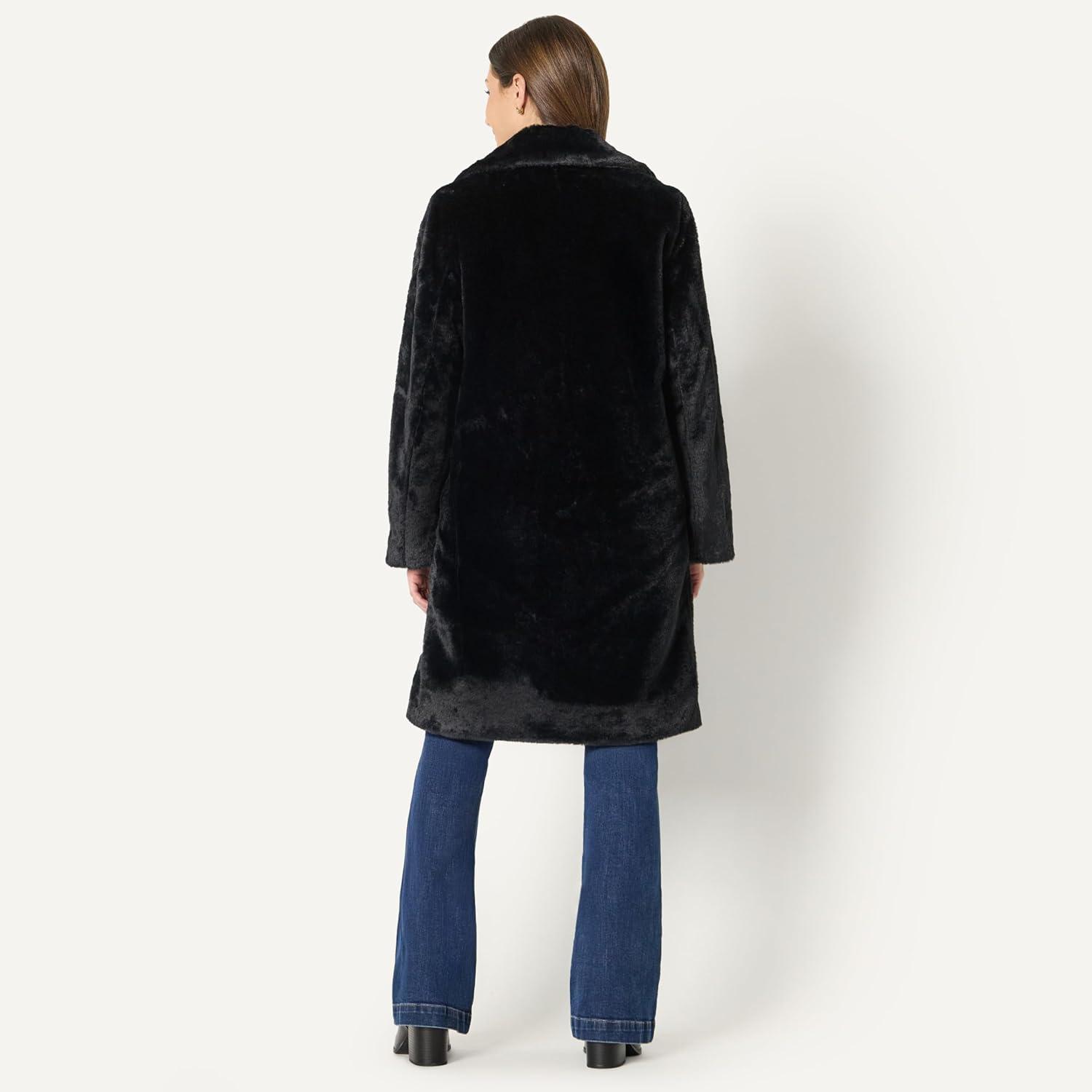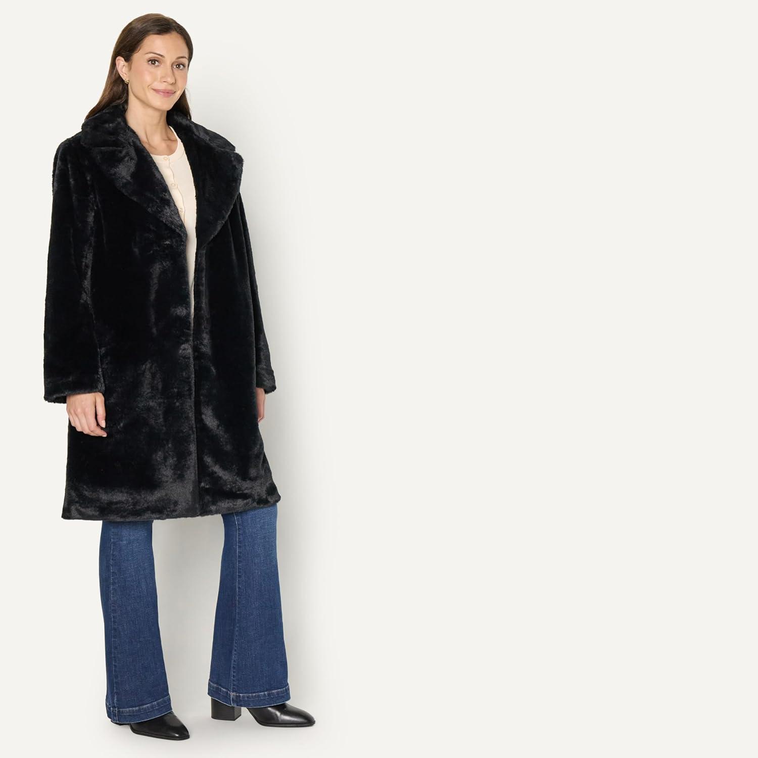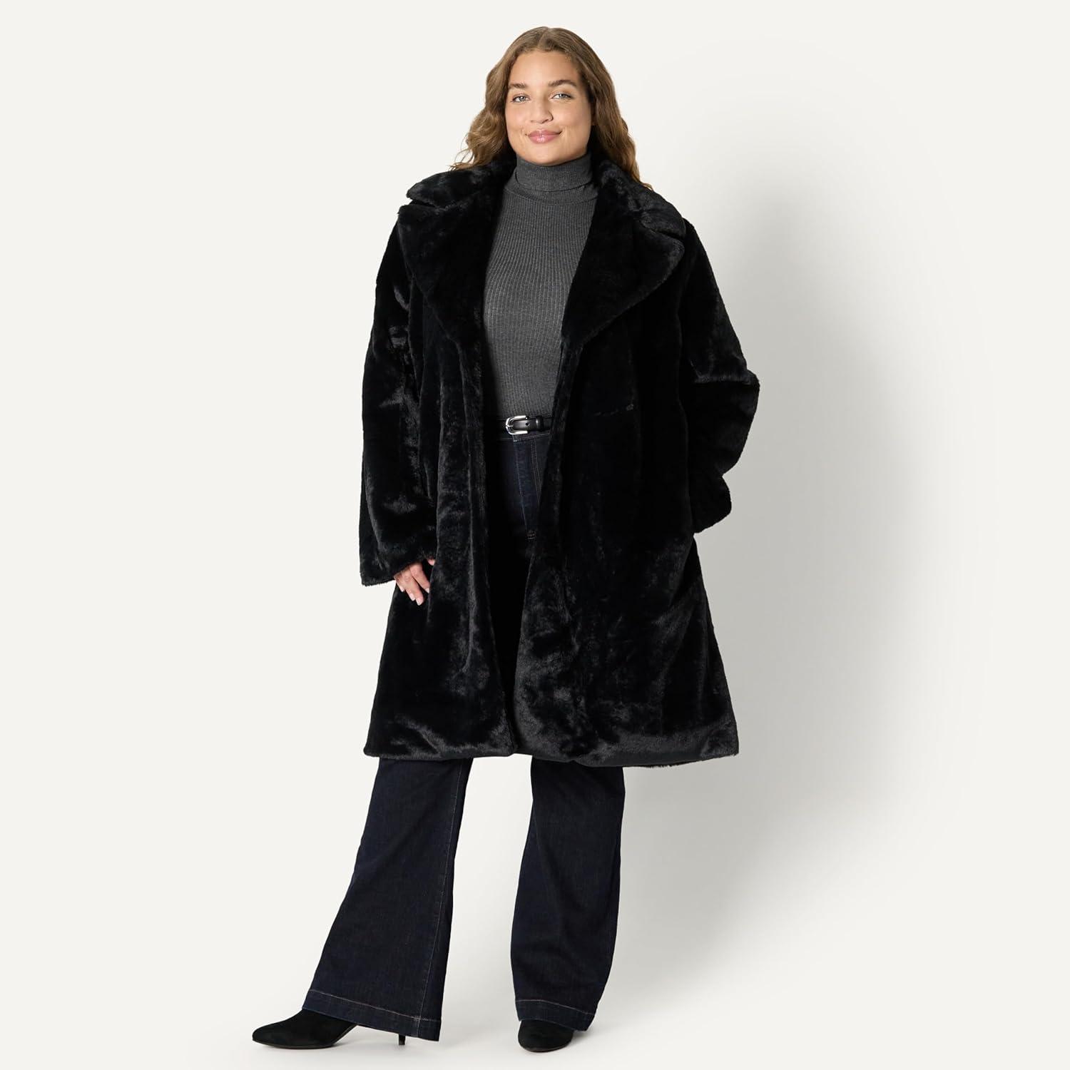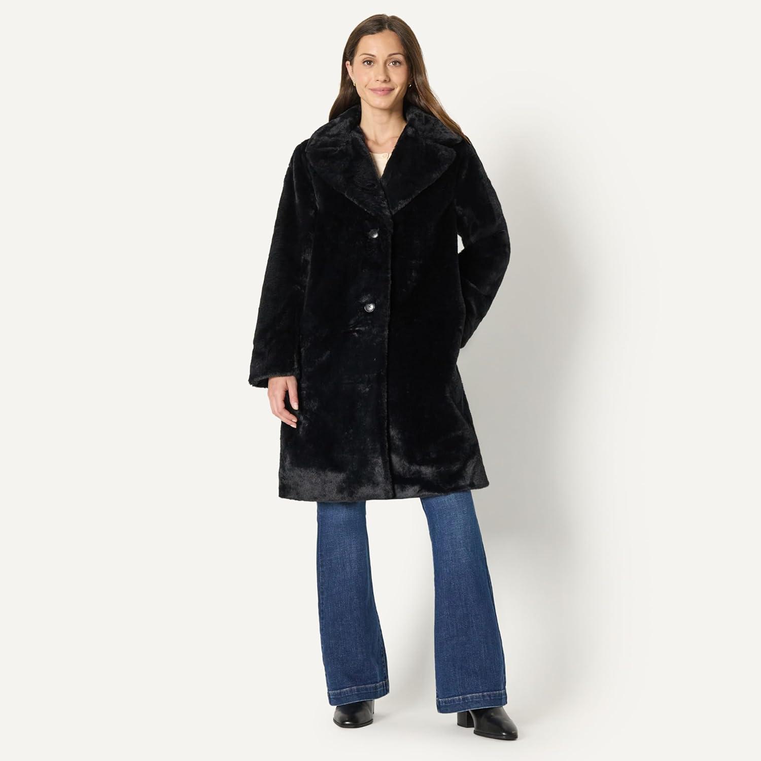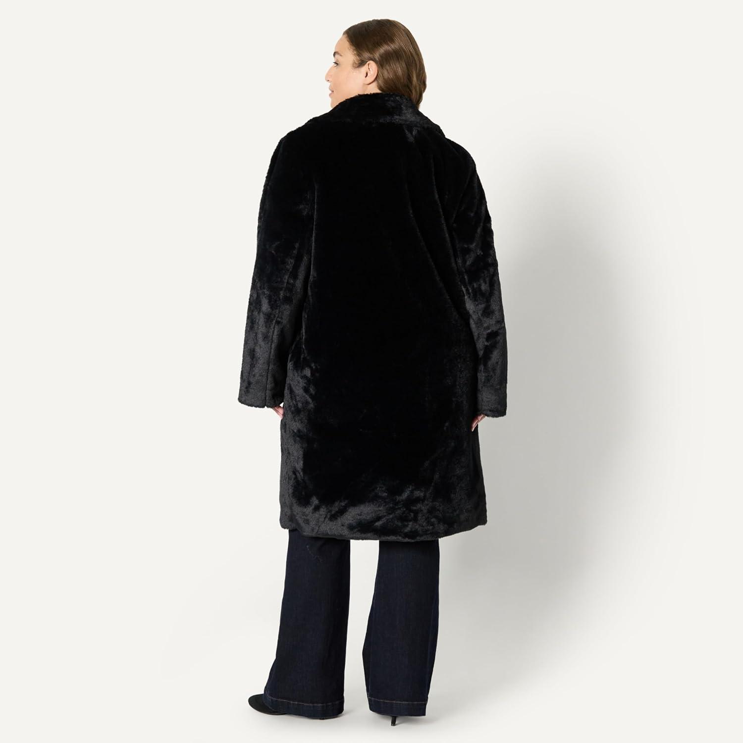 Amazon Essentials Womens Relaxed-Fit Long Faux Fur Coat with Lapel Collar(Black)