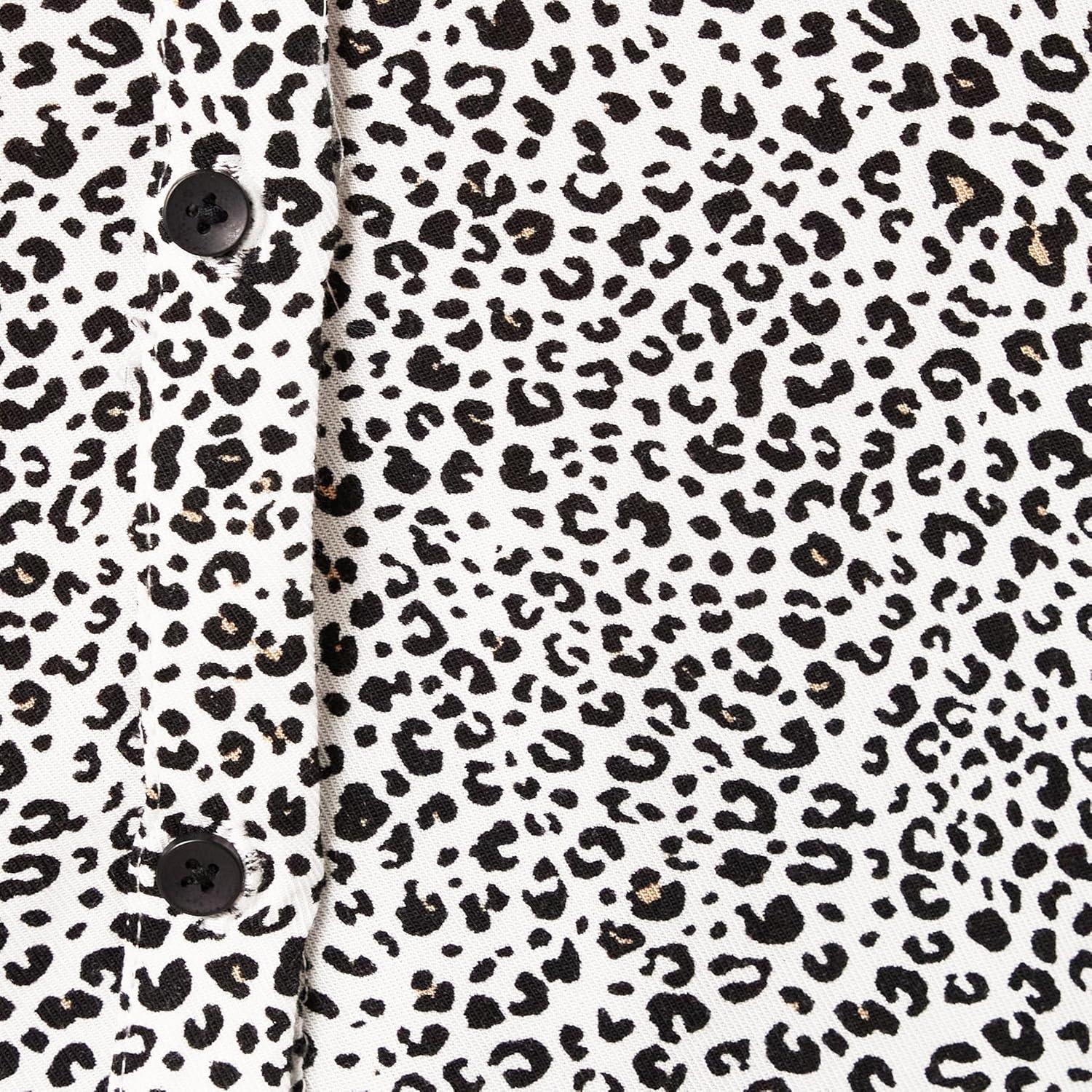 Amazon Essentials Women’s Relaxed-Fit Short-Sleeve Woven Blouse(Mini Leopard)