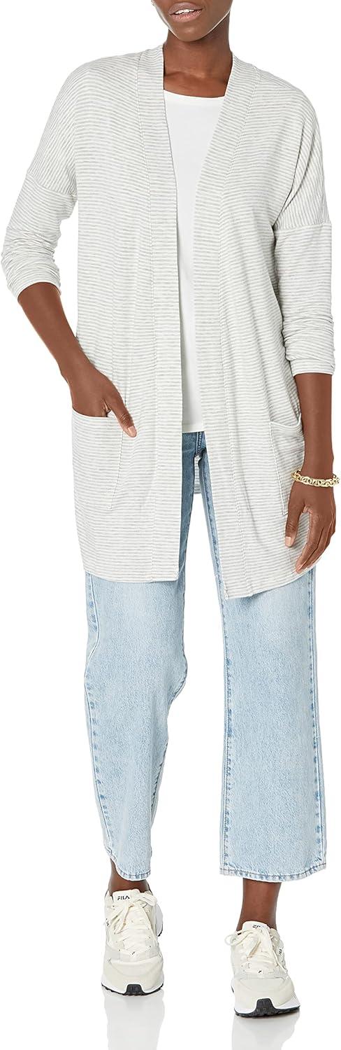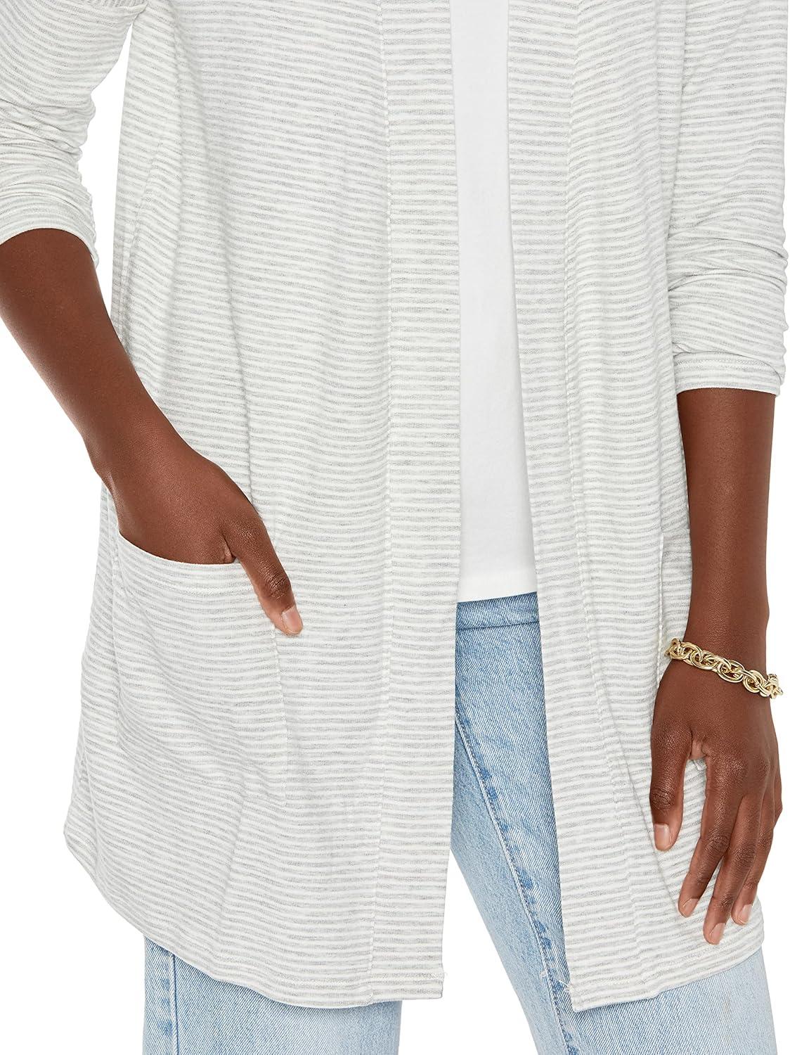 Amazon Essentials Women's Relaxed-Fit Ultra-Lightweight Open-Front Cardigan(Grey Heather Stripe)