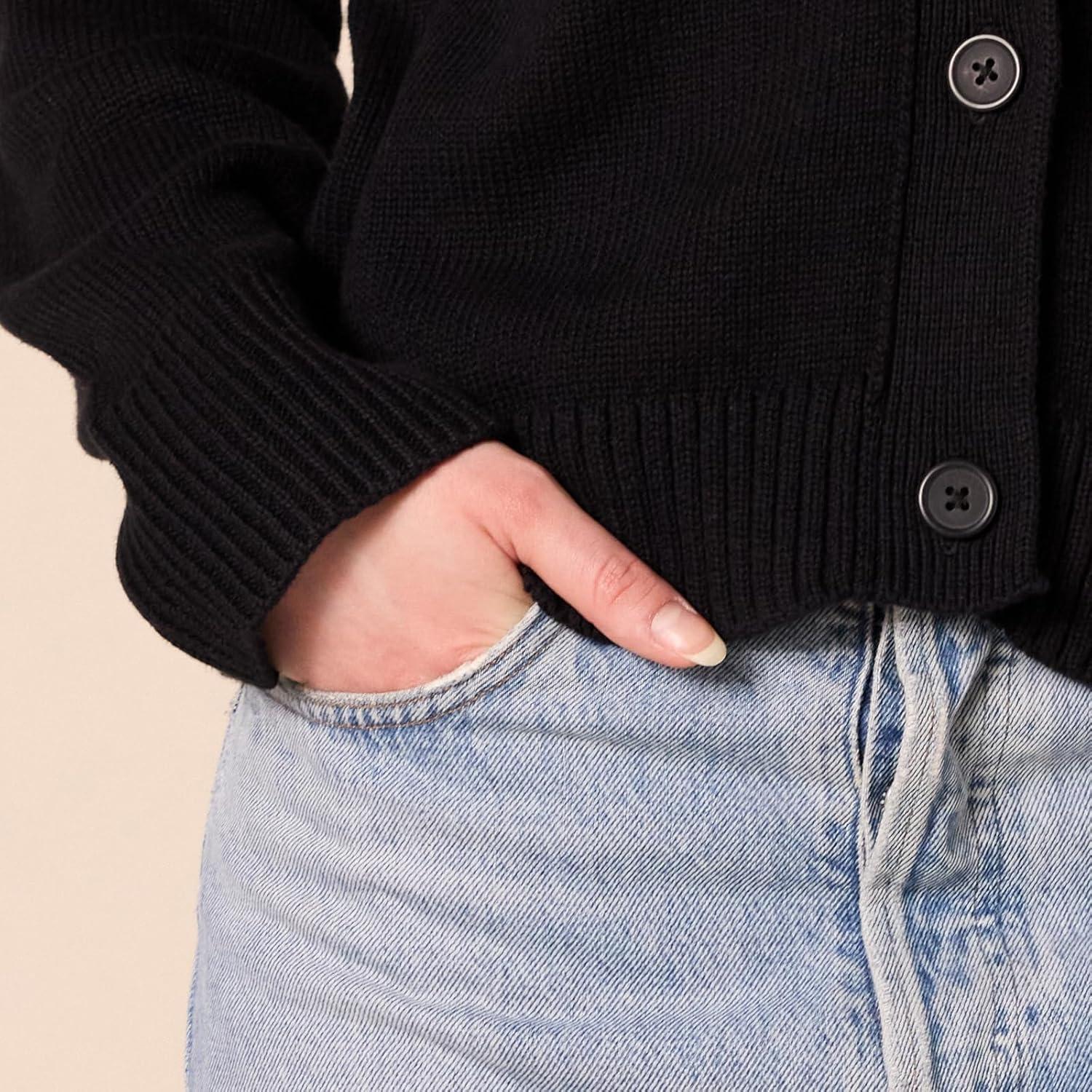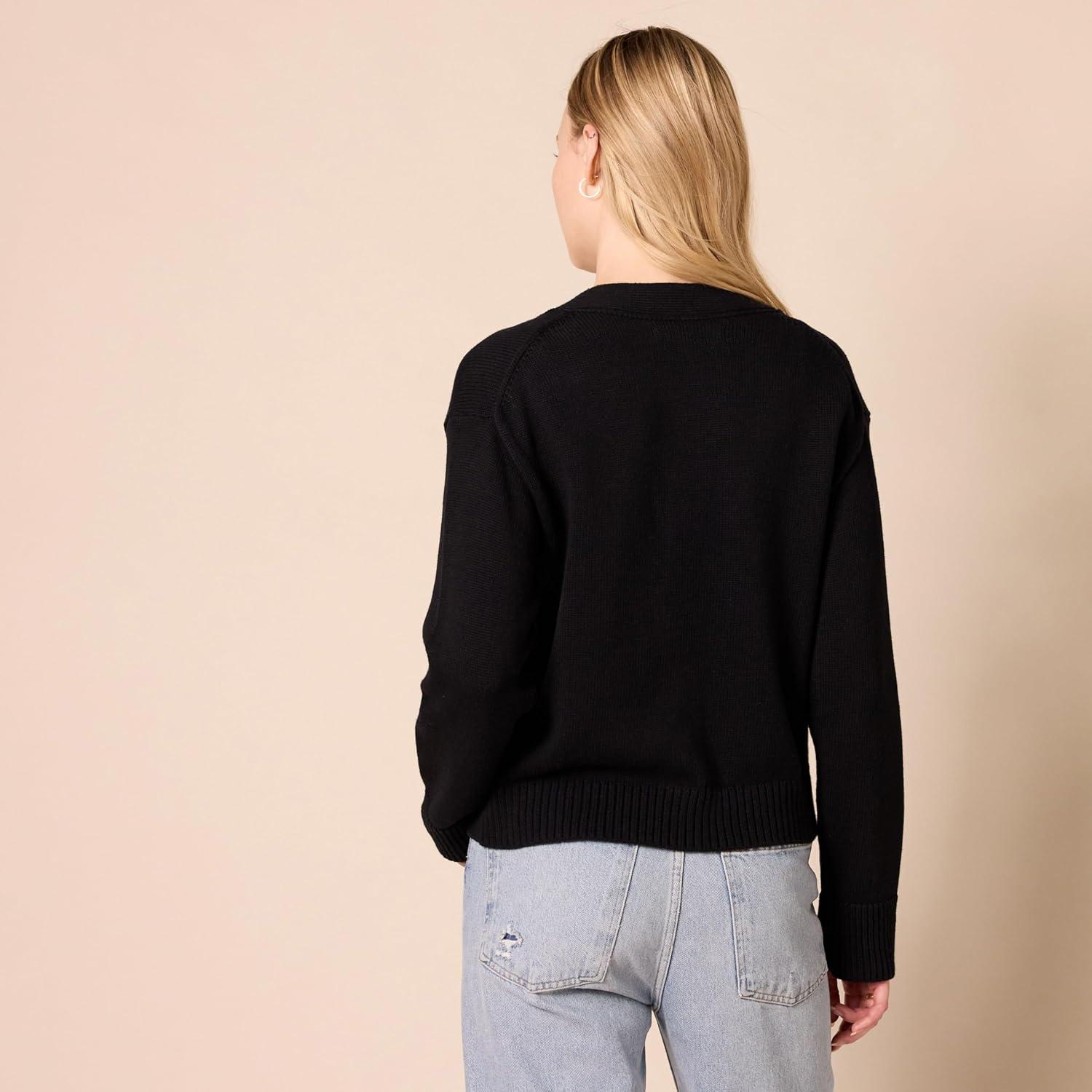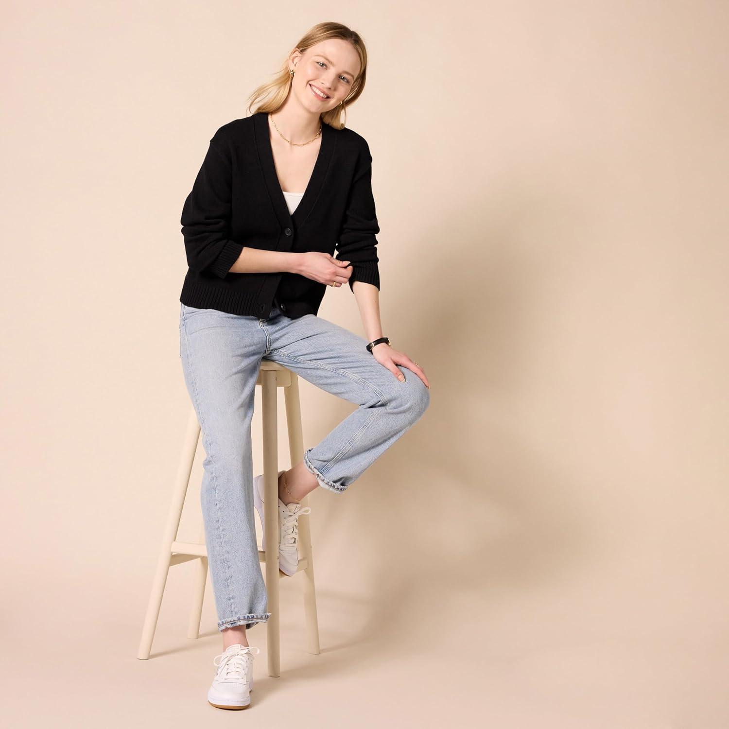 Amazon Essentials Women’s Relaxed Fit V-Neck Cropped Cardigan(Black)