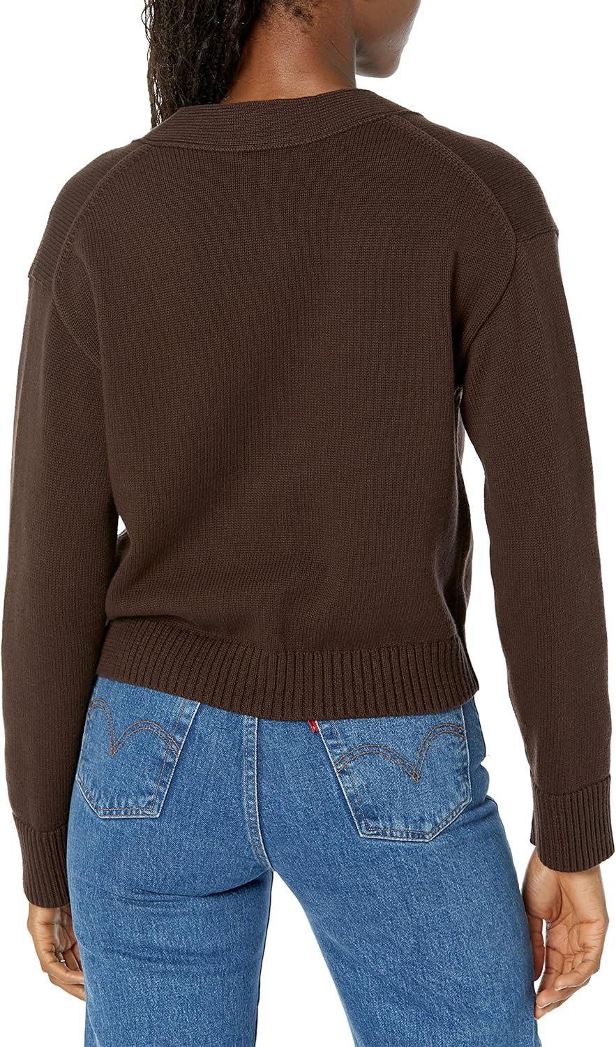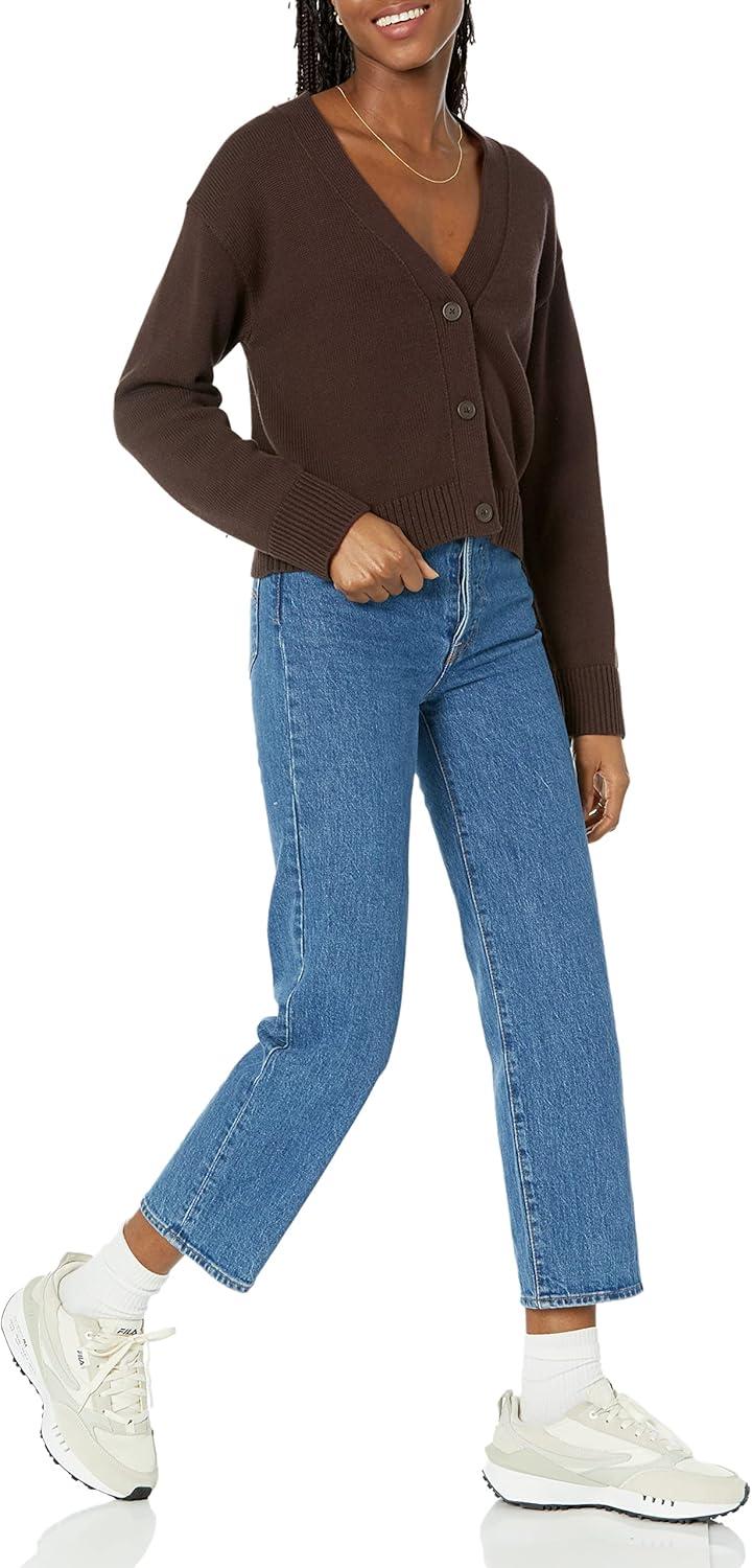 Amazon Essentials Women’s Relaxed Fit V-Neck Cropped Cardigan(Espresso)