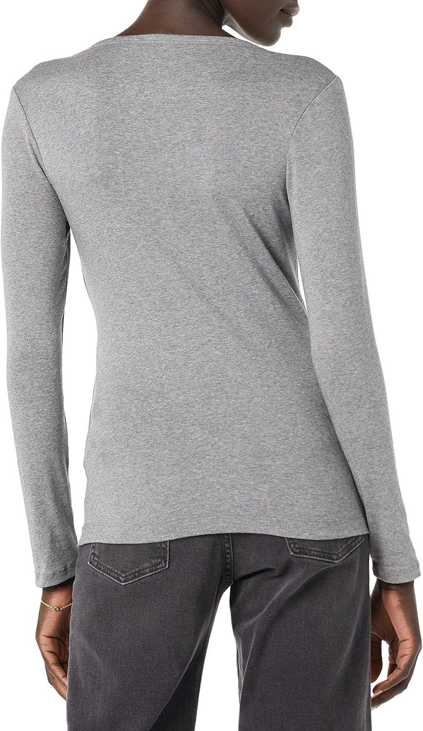 Amazon Essentials Women’s Ribbed Knit Long Sleeve Henley Slim Fit T-Shirt(Grey Heather)