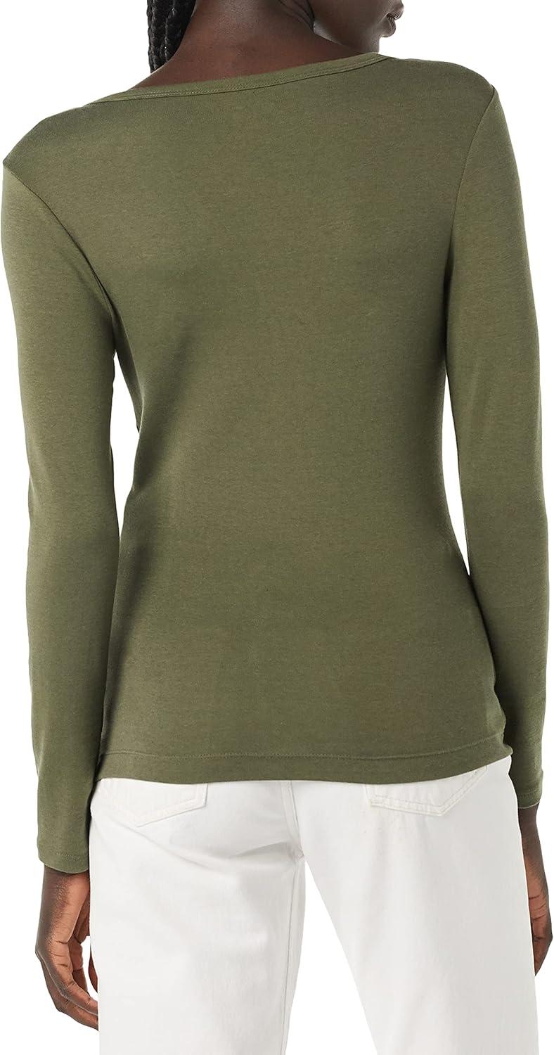 Amazon Essentials Women's Ribbed Knit Long Sleeve Henley Slim Fit T-Shirt(Olive)
