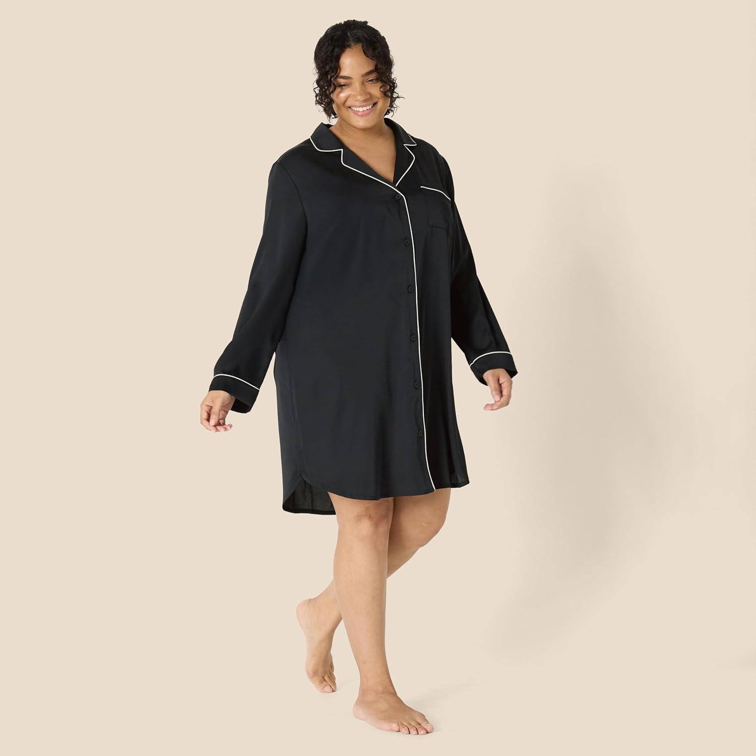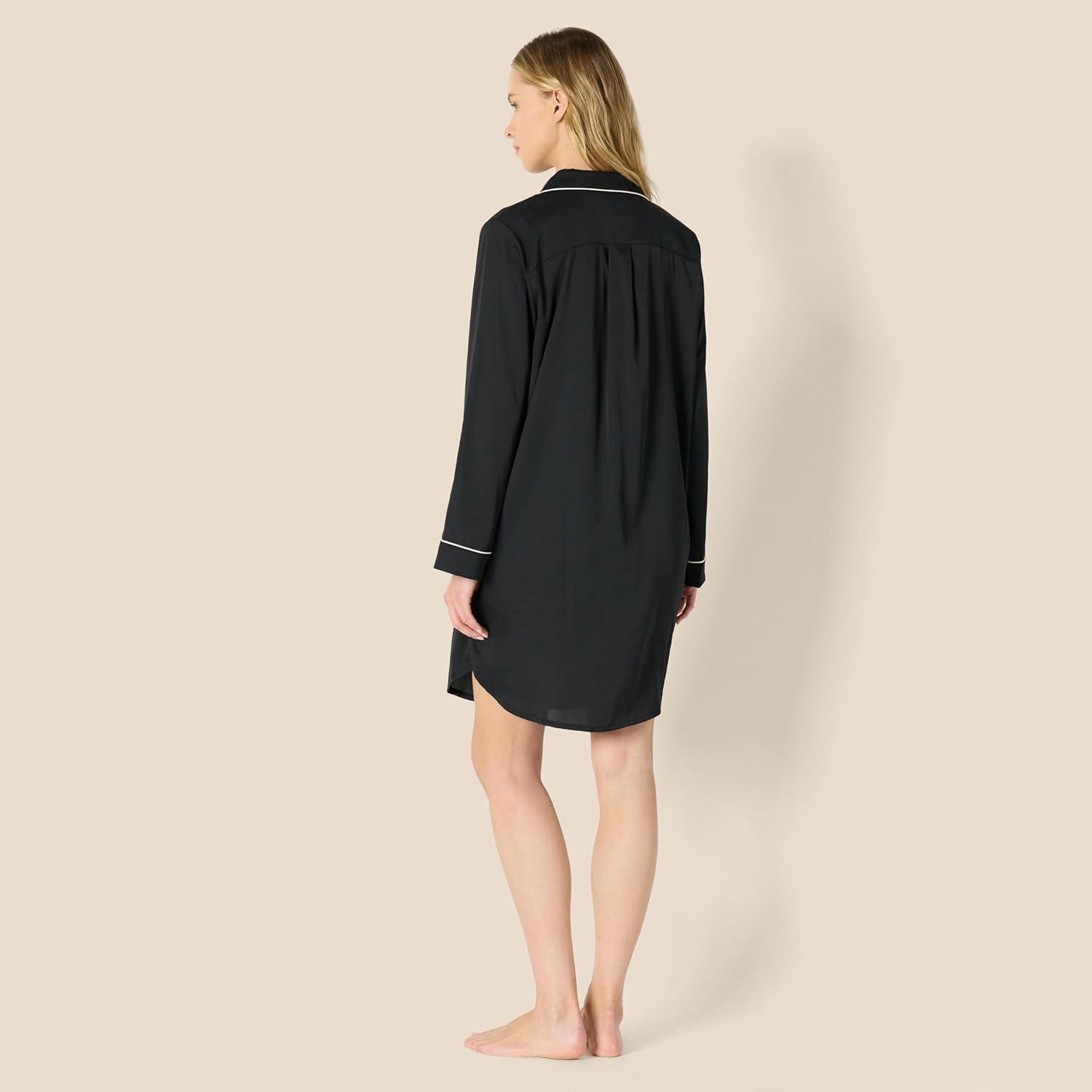Amazon Essentials Women’s Satin Button-Down Sleepwear Nightshirt(Black)