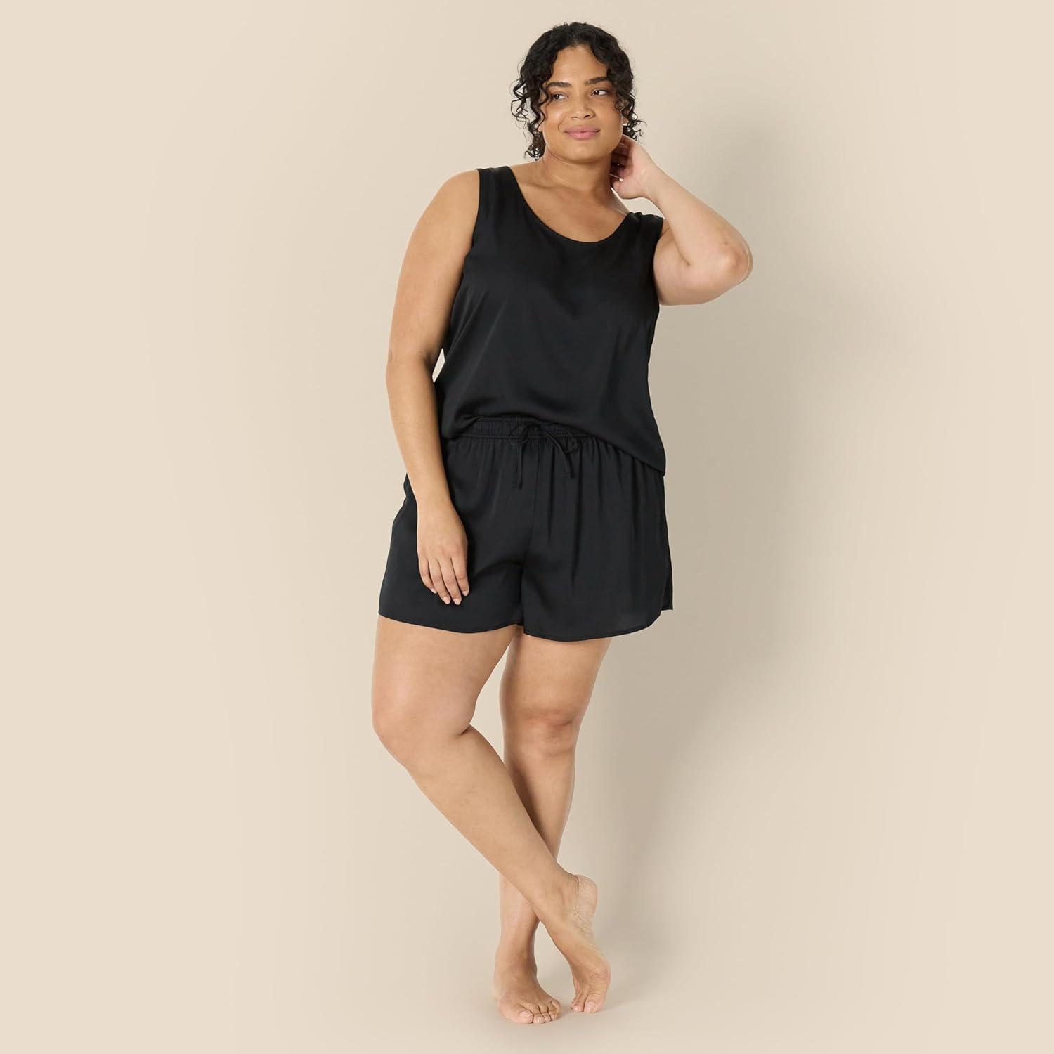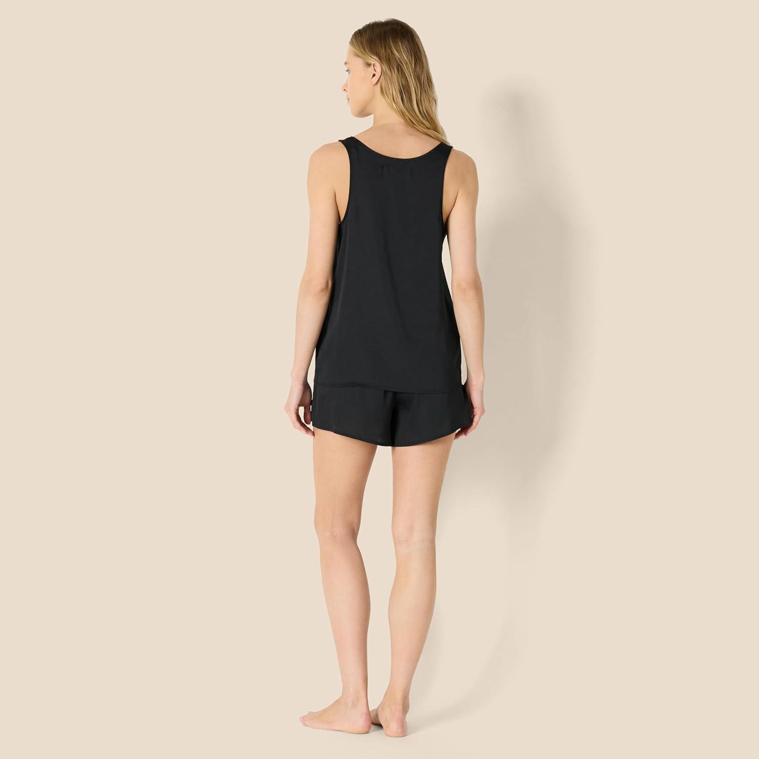 Amazon Essentials Women’s Satin Tank Top and Short Sleepwear Set(Black)