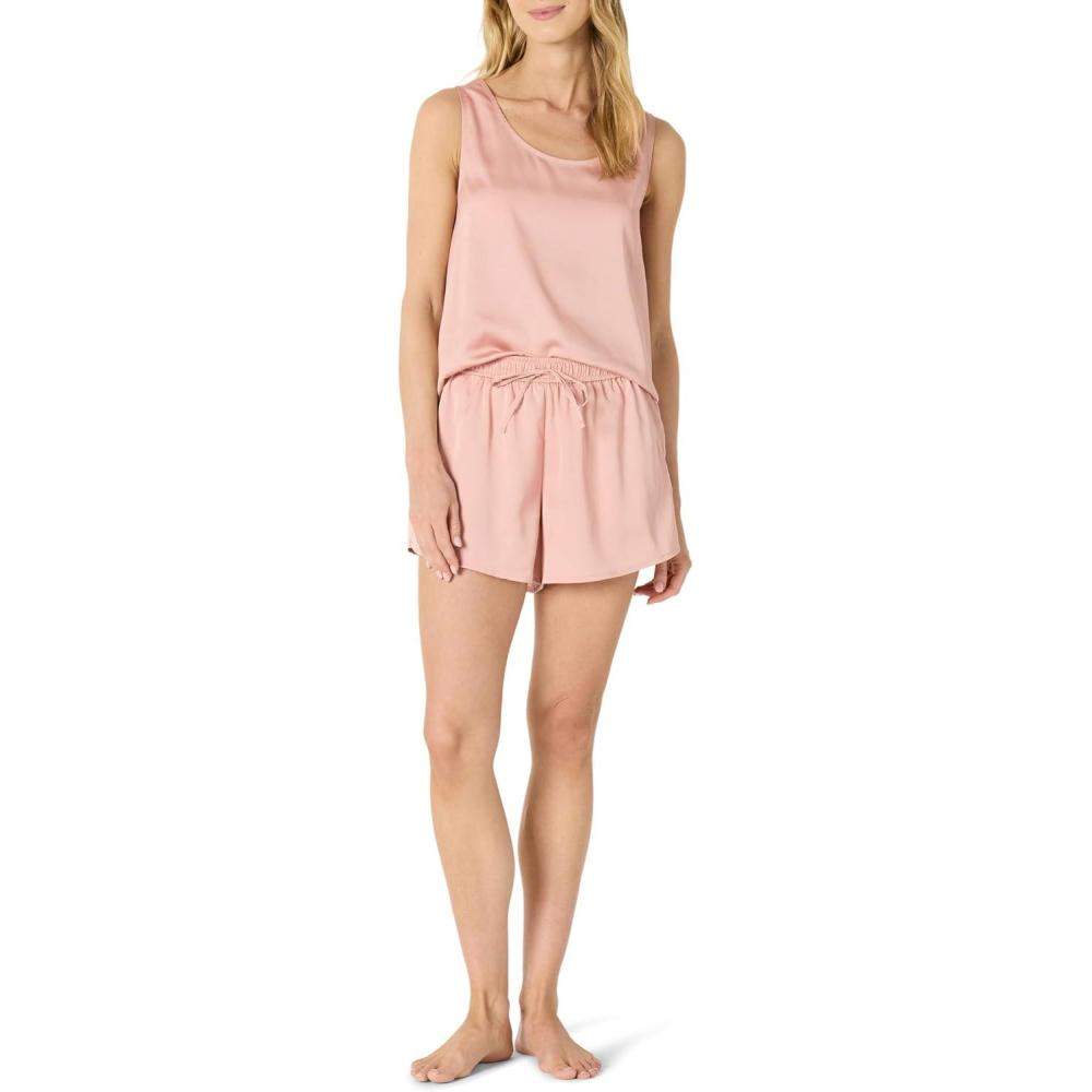 Amazon Essentials Women’s Satin Tank Top and Short Sleepwear Set(Dusty Rose)