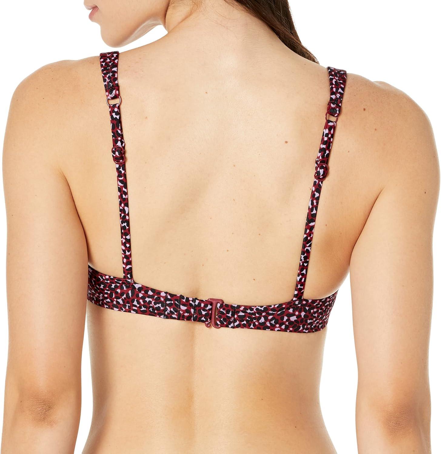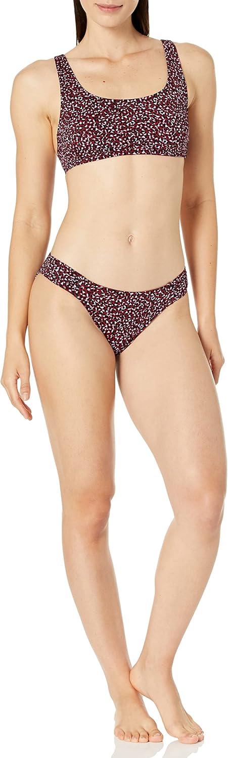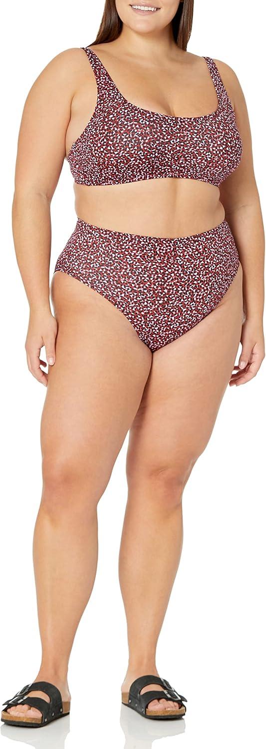 Amazon Essentials Women’s Scoop Neck Swim Crop Top(Brick Red Leopard)