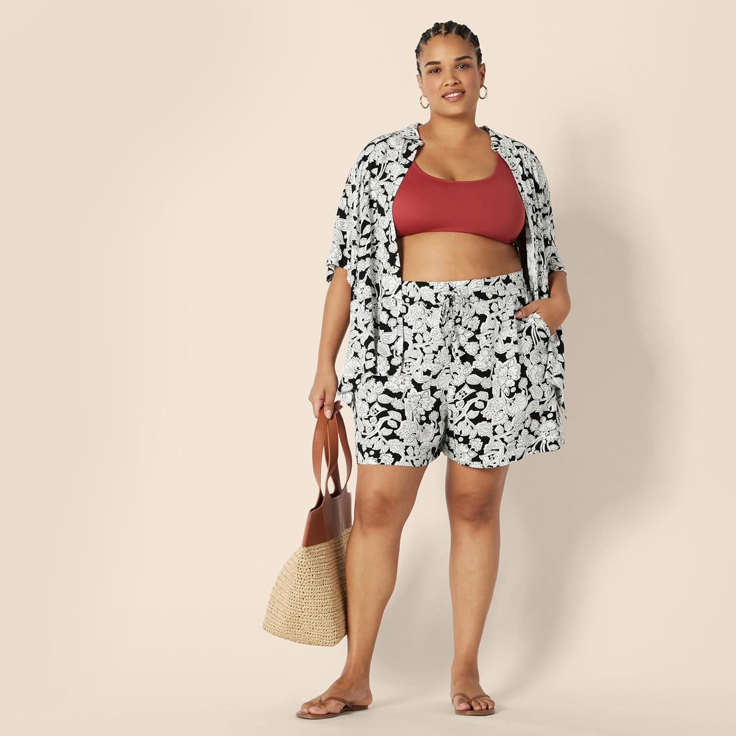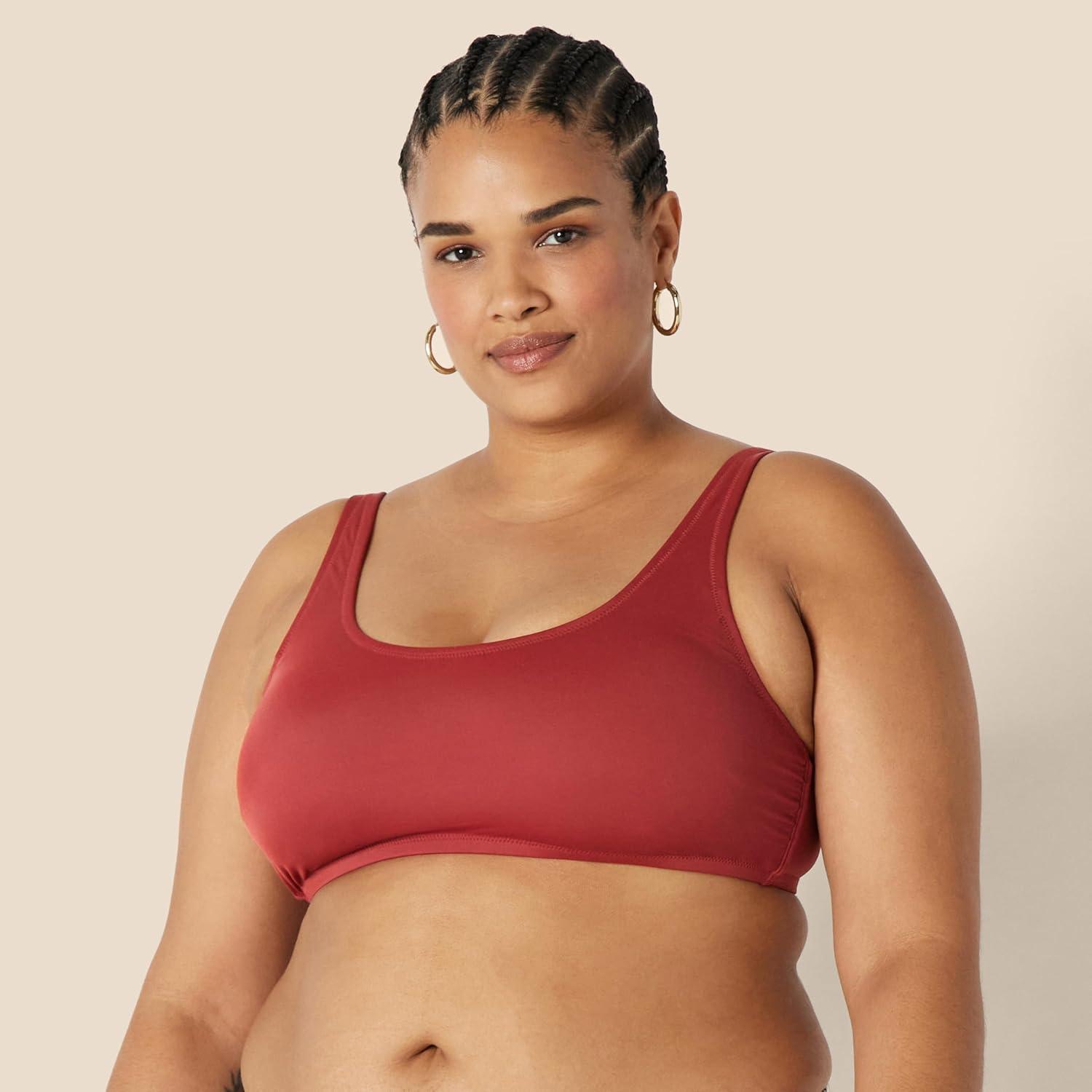 Amazon Essentials Women’s Scoop Neck Swim Crop Top(Brick Red)