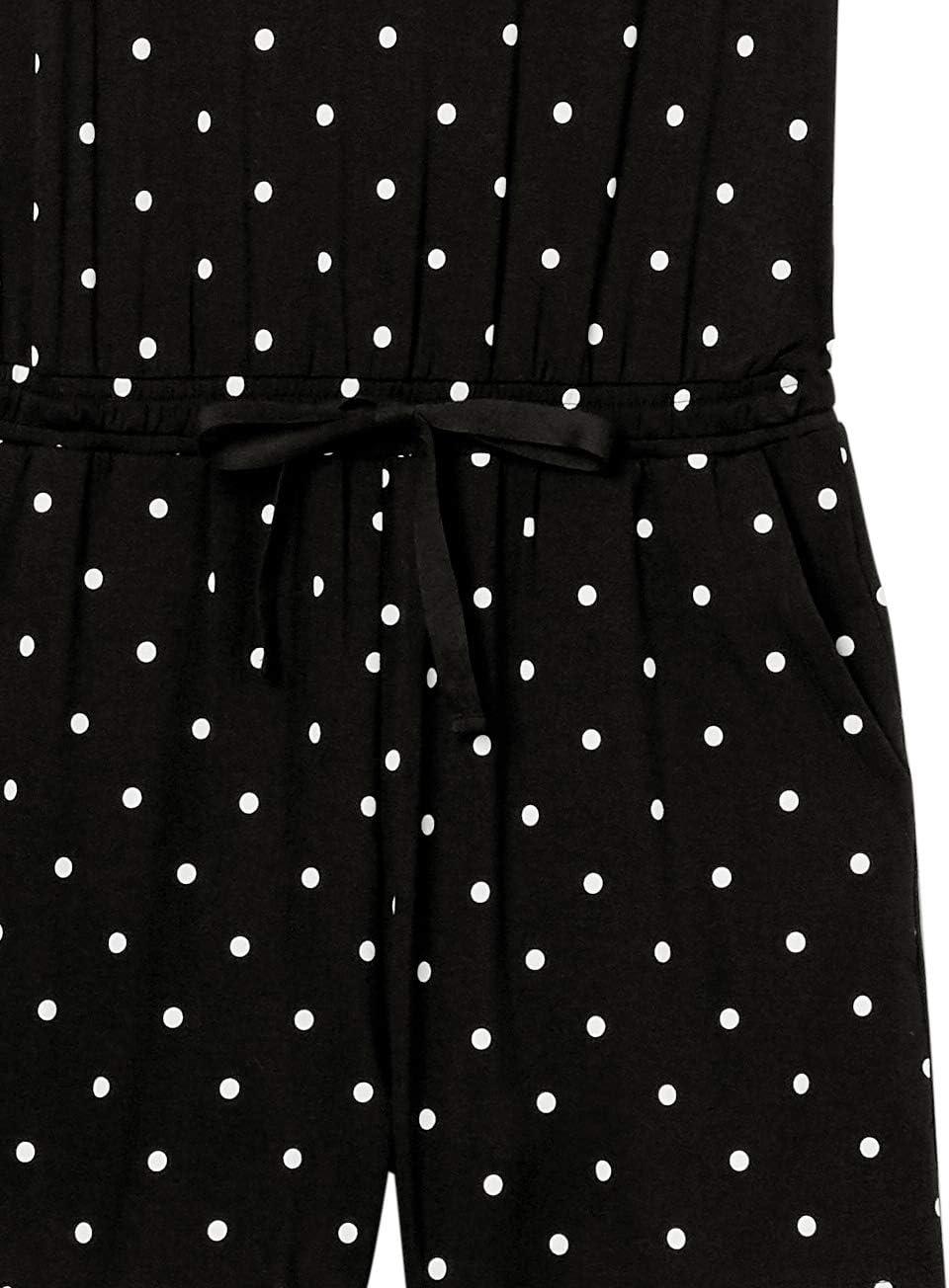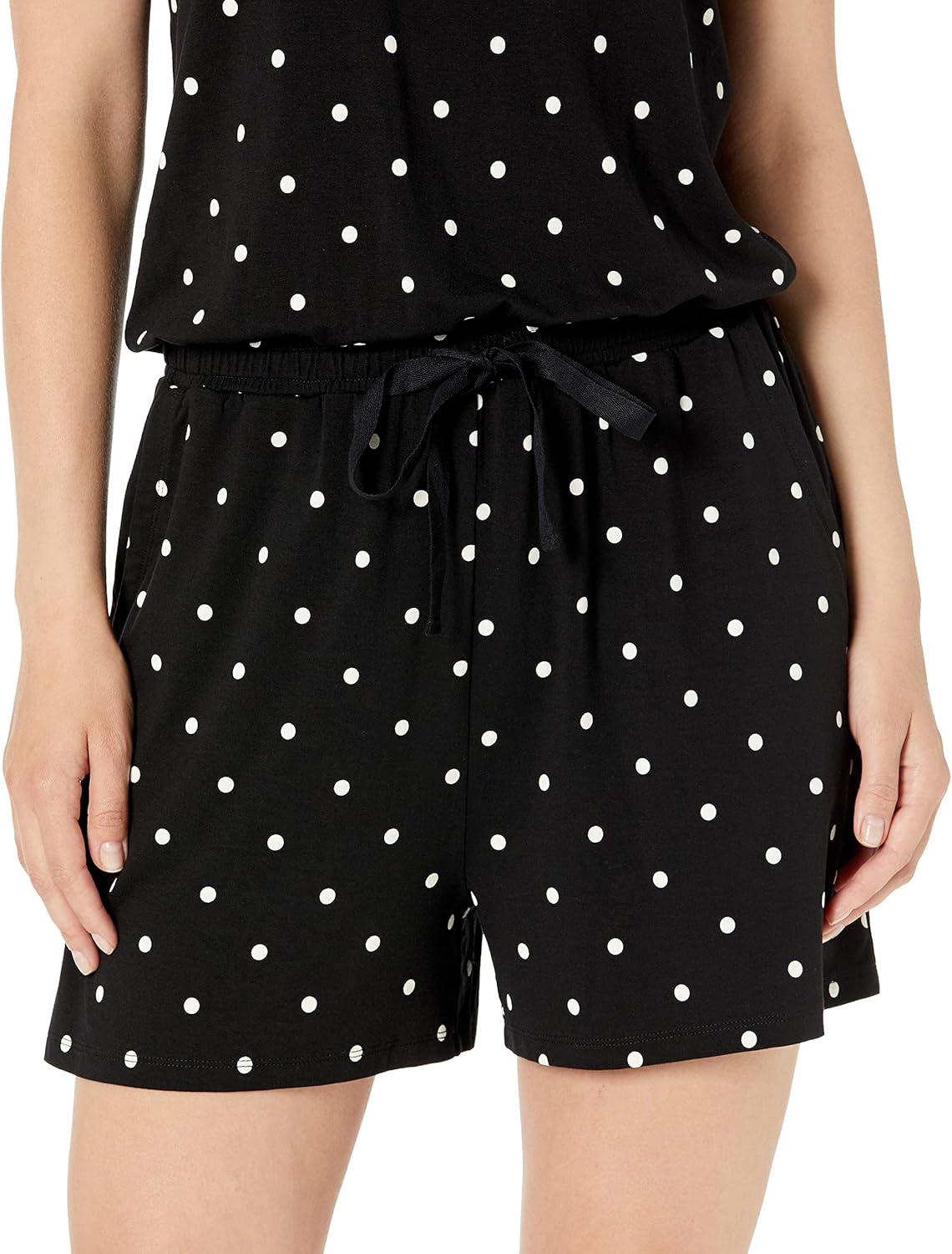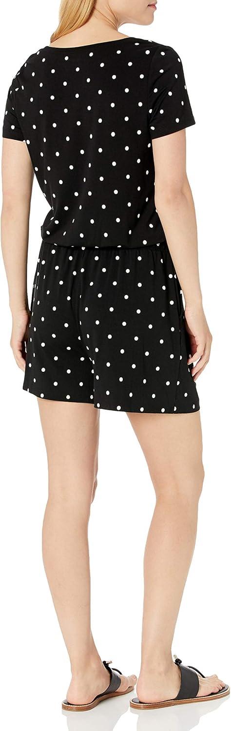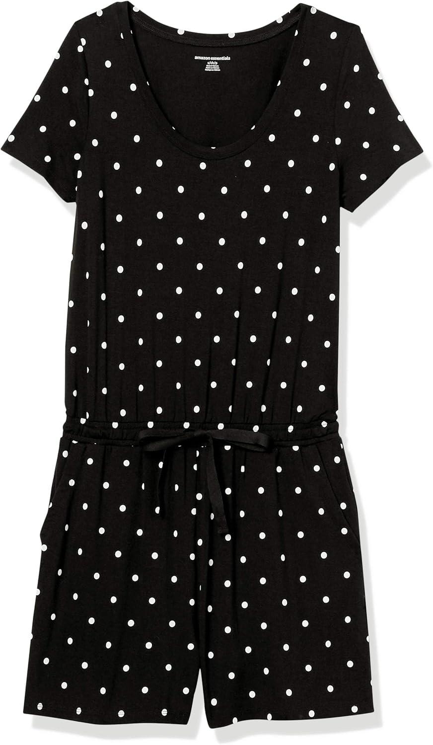 Amazon Essentials Women’s Short-Sleeve Scoop Neck Romper(Black Dots)
