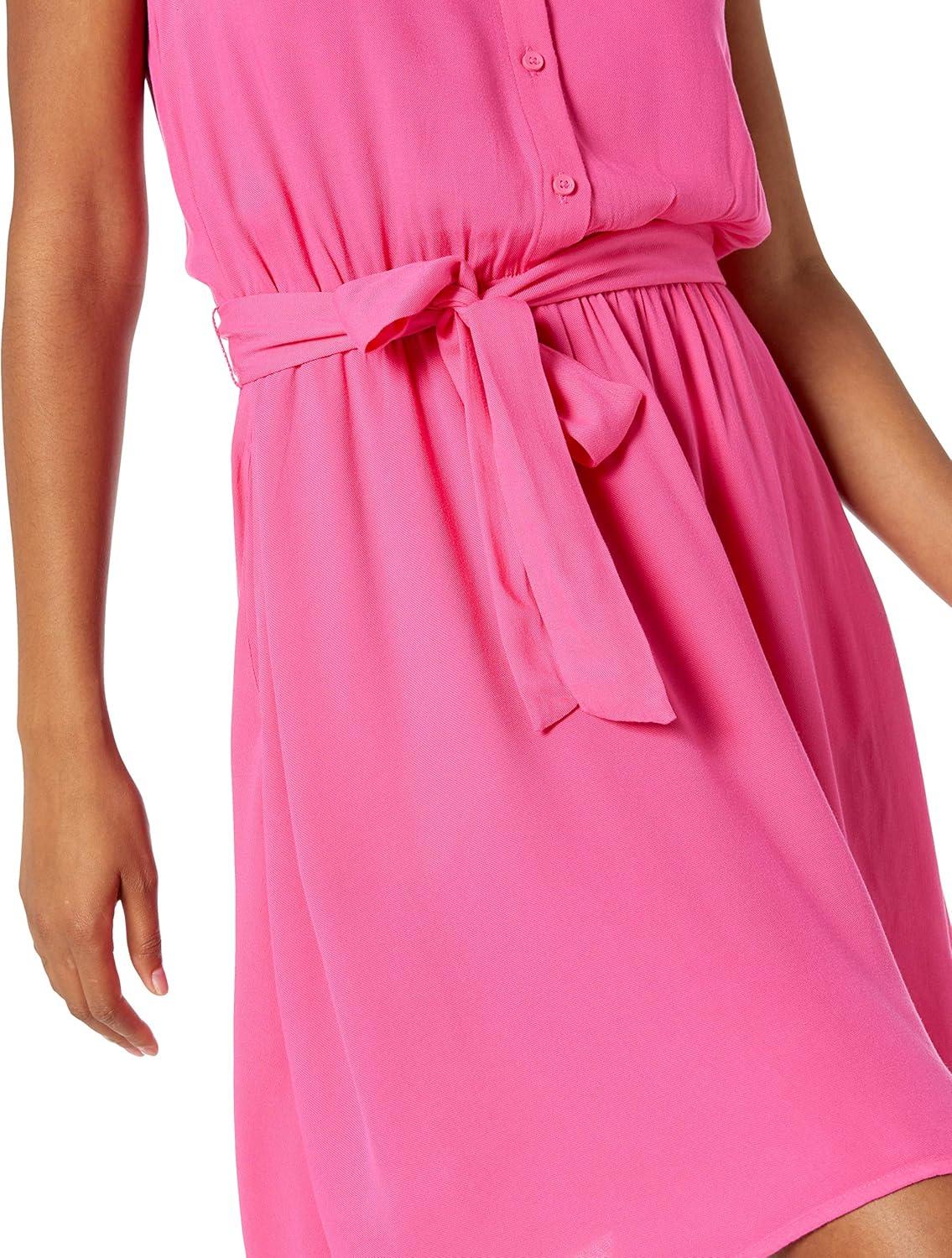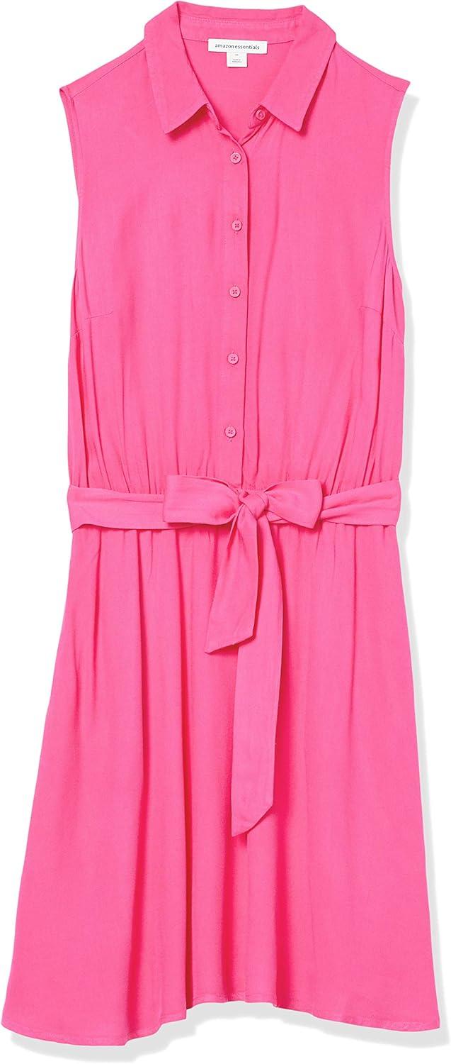 Amazon Essentials Women’s Sleeveless Relaxed-Fit Woven Shirt Dress(Hot Pink)