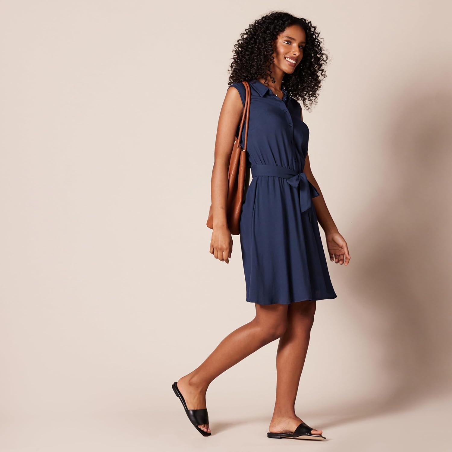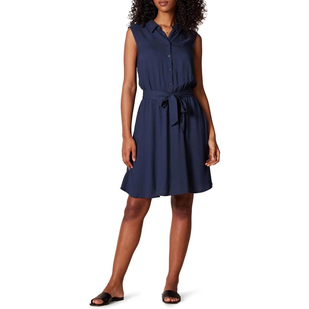 Amazon Essentials Women’s Sleeveless Relaxed-Fit Woven Shirt Dress(Navy)
