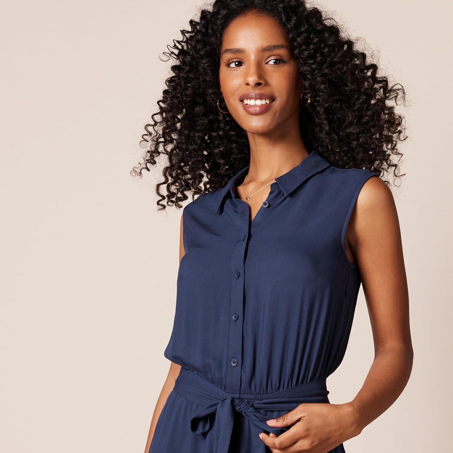 Amazon Essentials Women's Sleeveless Relaxed-Fit Woven Shirt Dress(Navy)