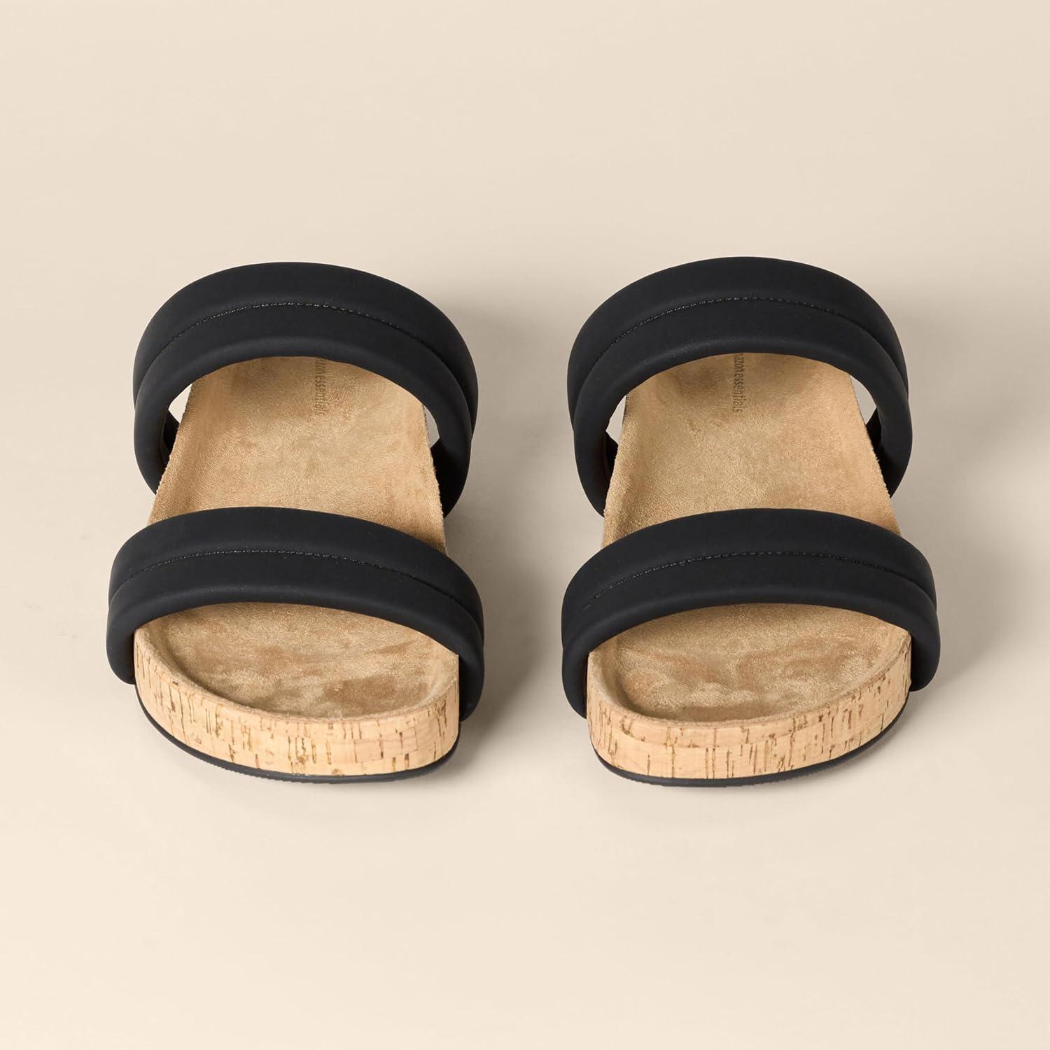 Amazon Essentials Women's Slide Cork Sandals(Black)