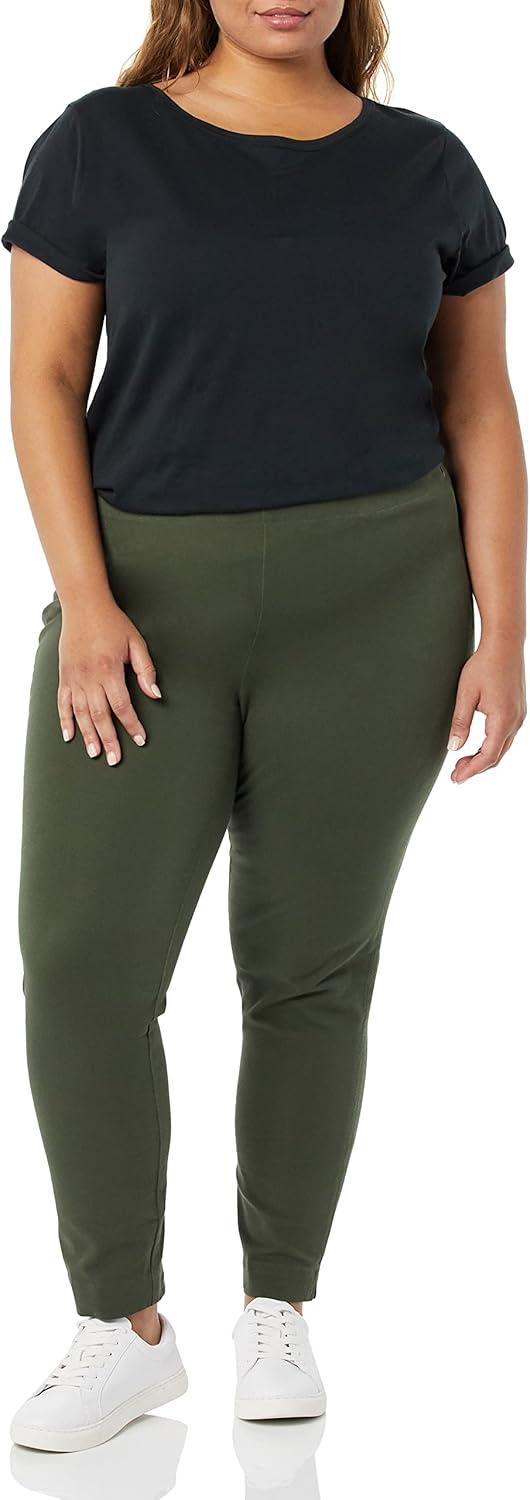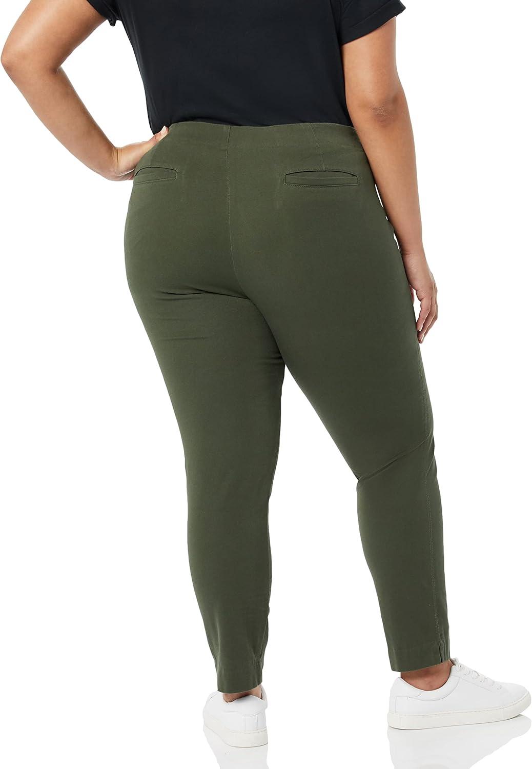 Amazon Essentials Women’s Slim-Fit Bi-Stretch Side Zip Ankle Pant(Dark Green)