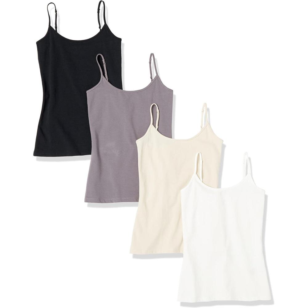 Amazon Essentials Women’s Slim-Fit Camisole, Pack of 4(Grey/Navy/Turquoise Green/White)