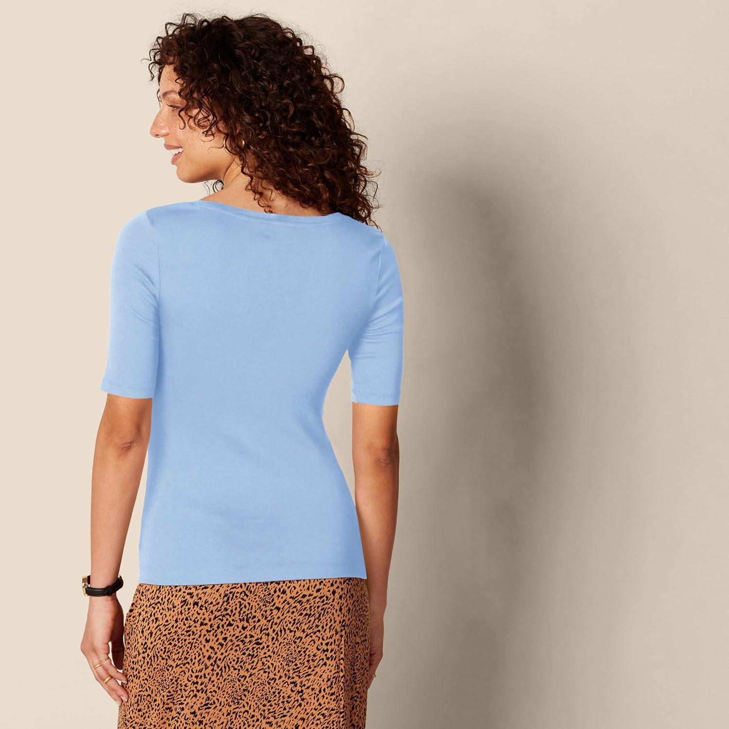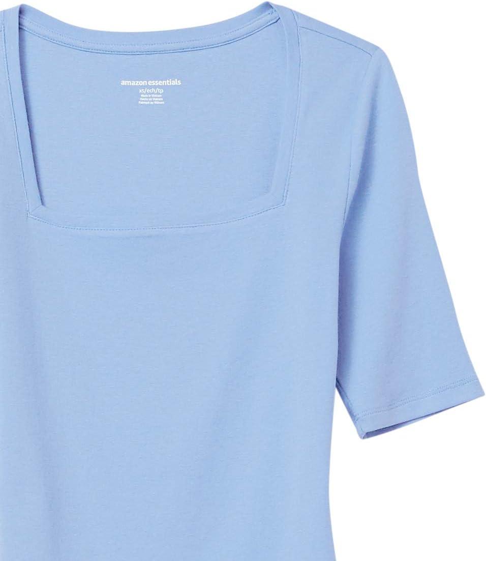 Amazon Essentials Women's Slim-Fit Half Sleeve Square Neck T-Shirt(Blue)