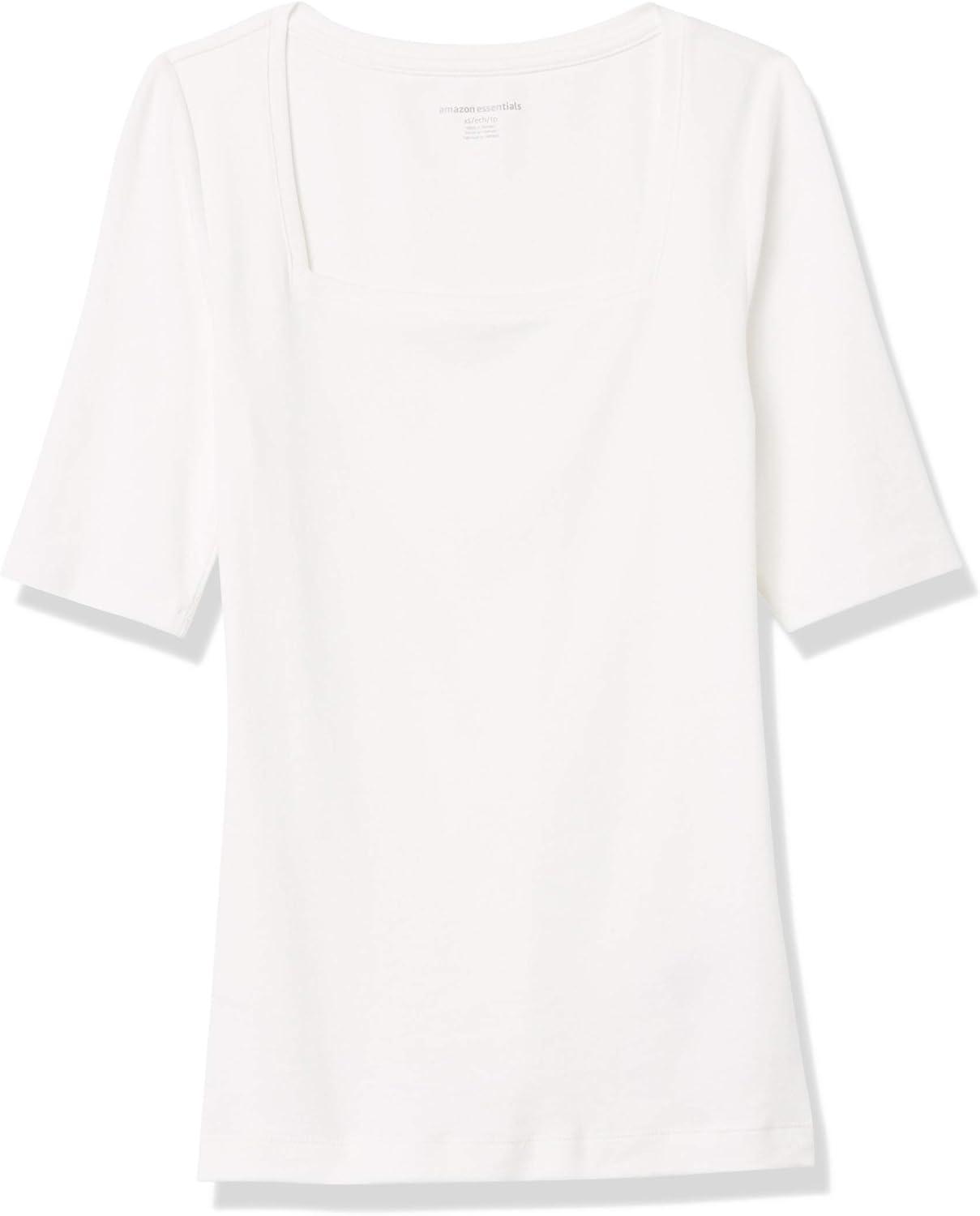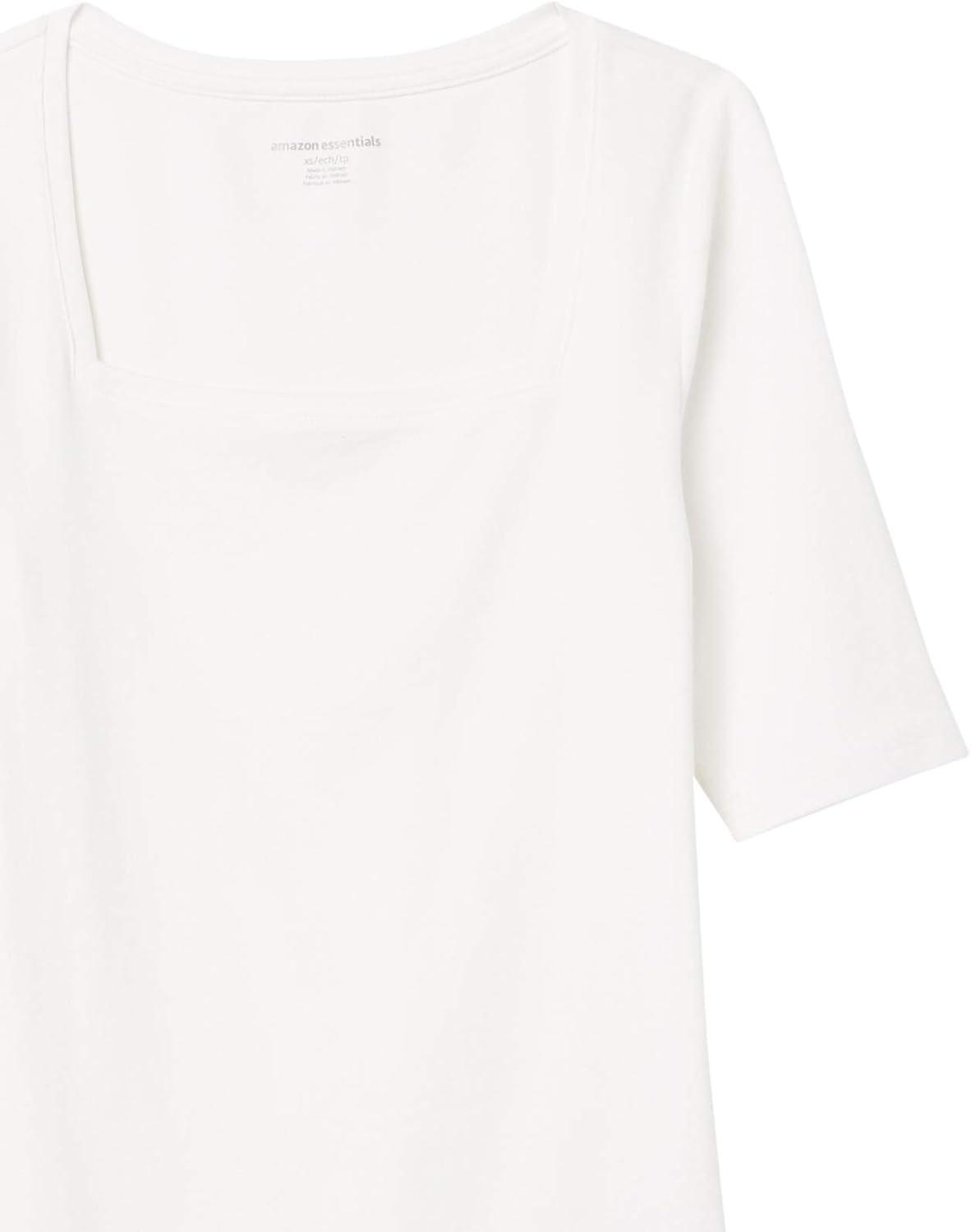 Amazon Essentials Women's Slim-Fit Half Sleeve Square Neck T-Shirt(Bright White)