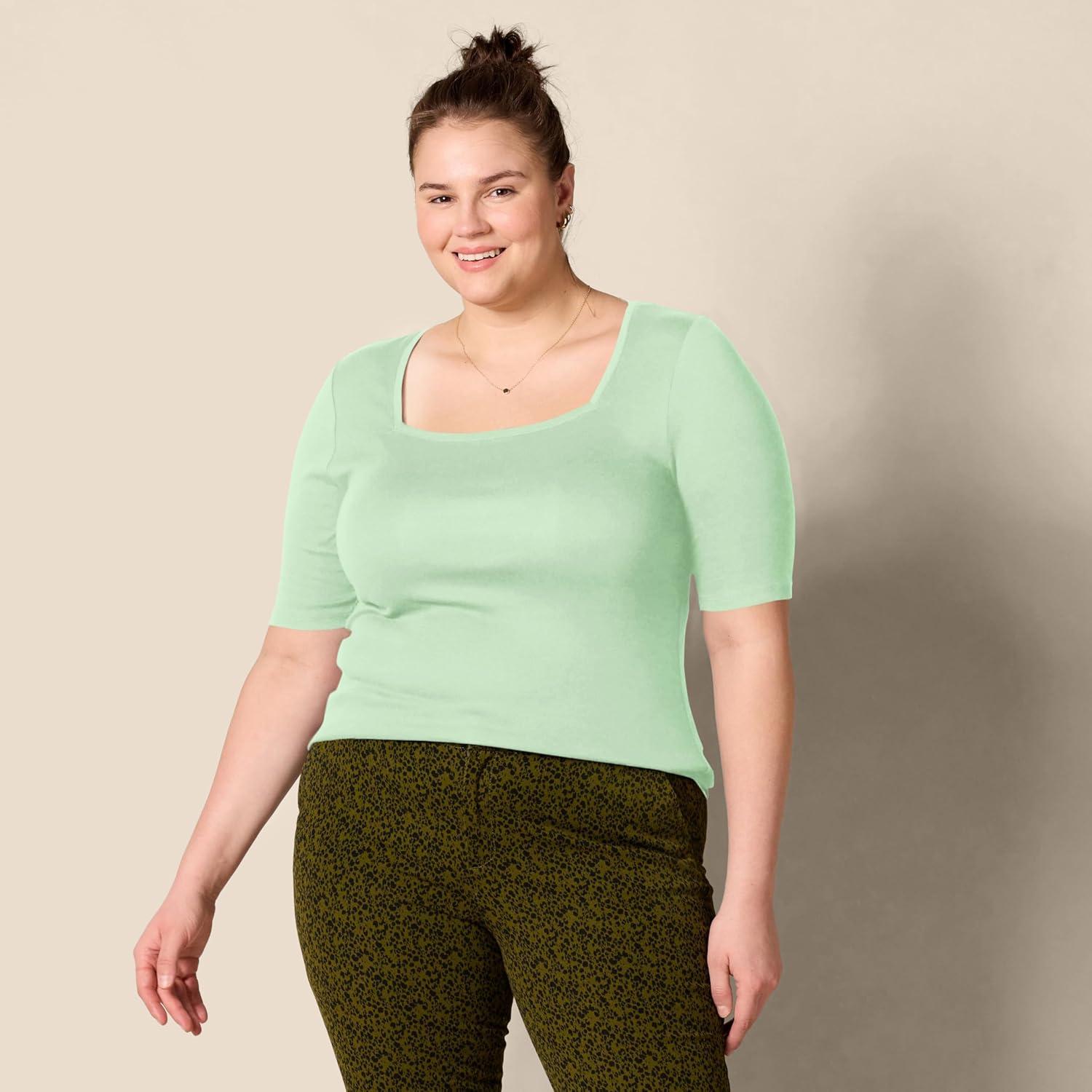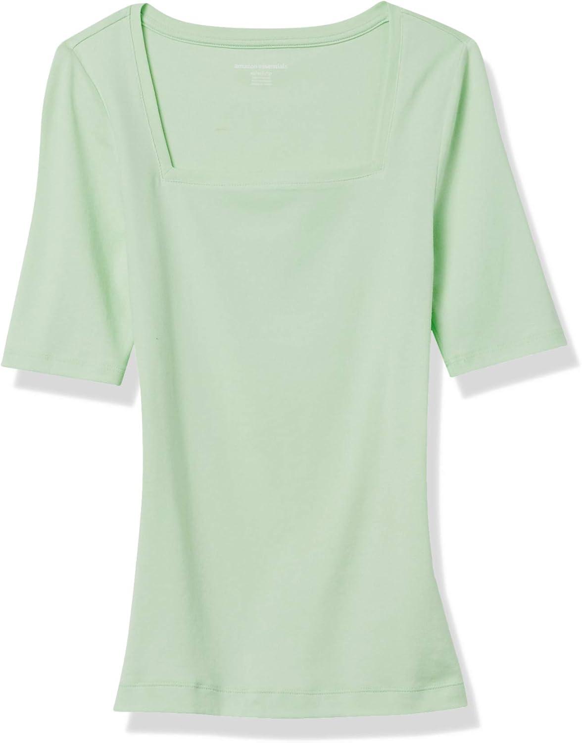 Amazon Essentials Women’s Slim-Fit Half Sleeve Square Neck T-Shirt(Green)