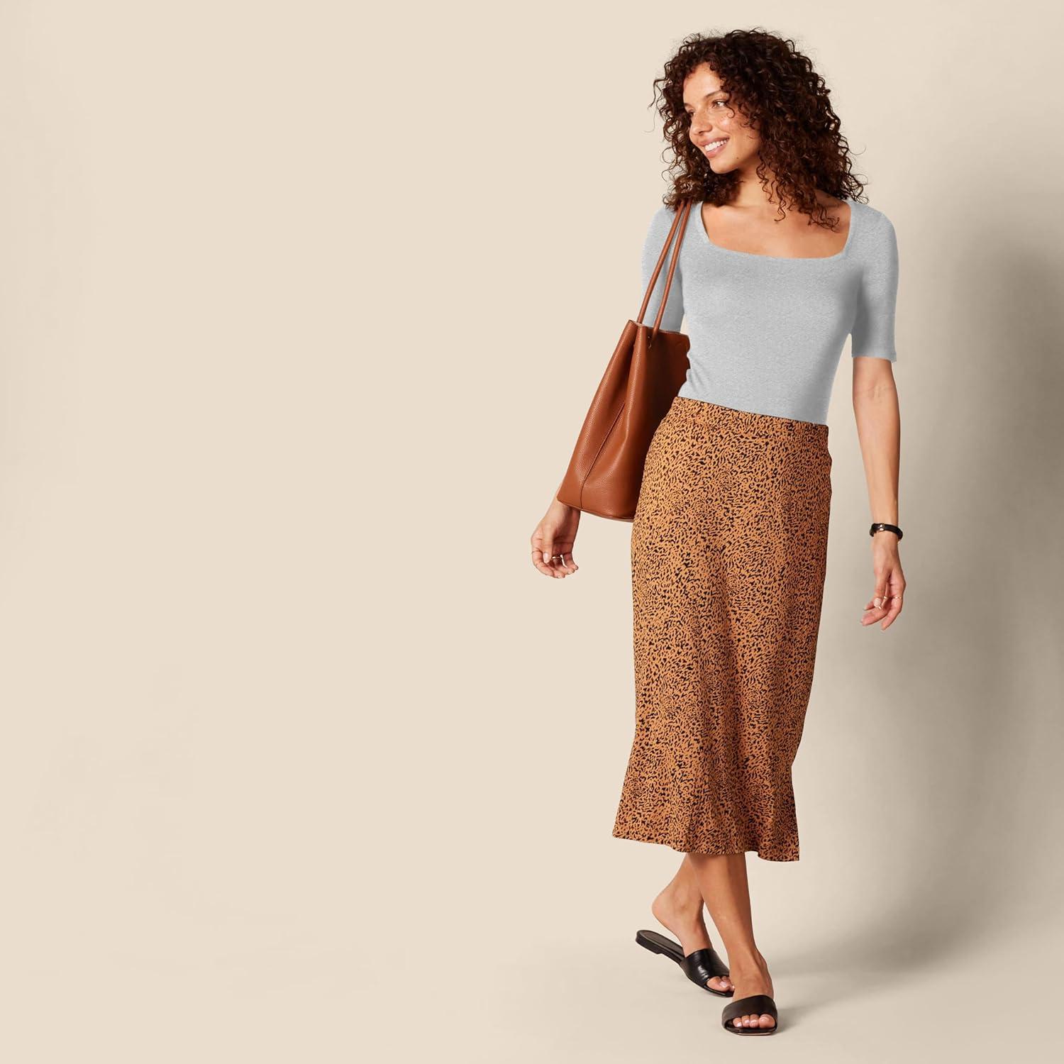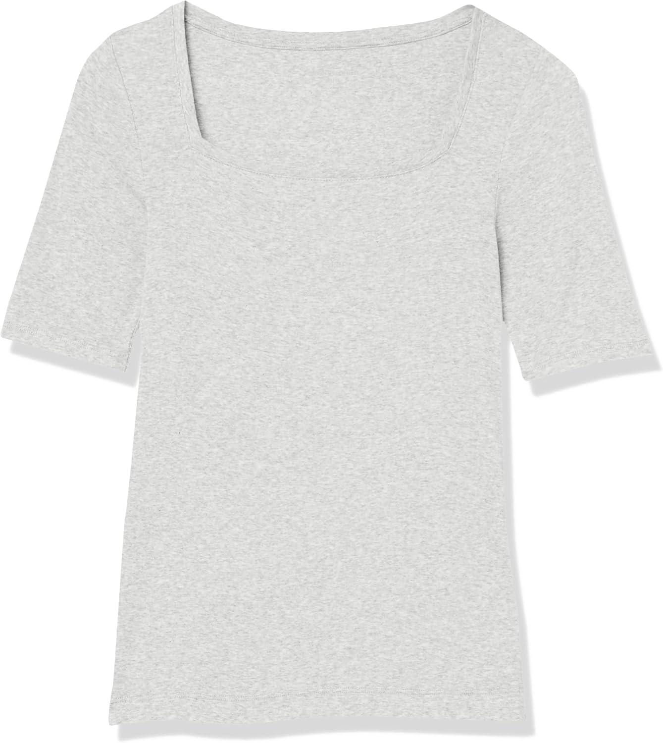 Amazon Essentials Women’s Slim-Fit Half Sleeve Square Neck T-Shirt(Light Grey Heather)