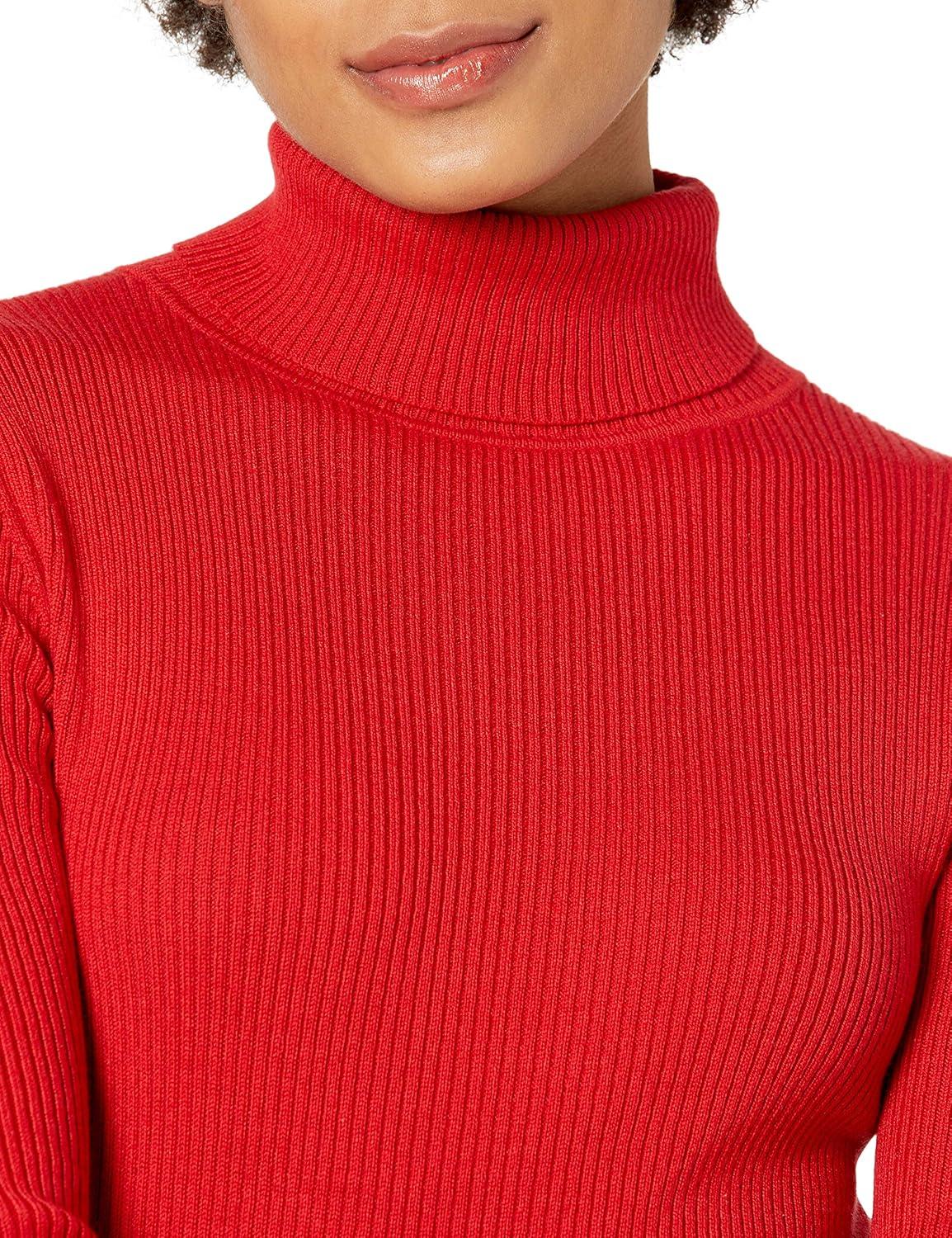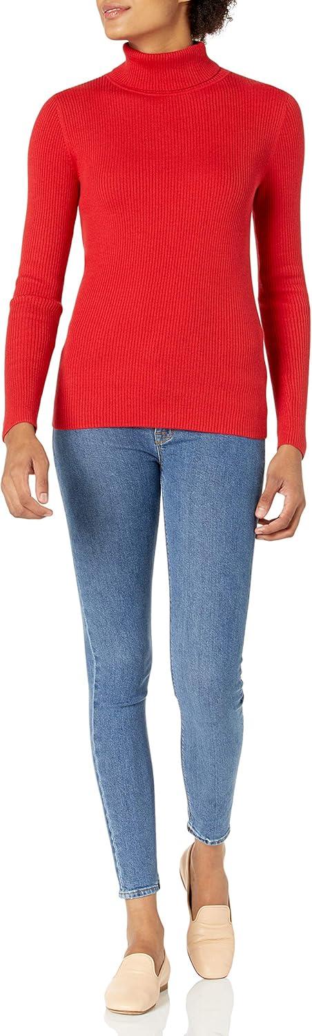 Amazon Essentials Women’s Slim-Fit Lightweight Long-Sleeve Turtleneck Sweater(Cherry Red)