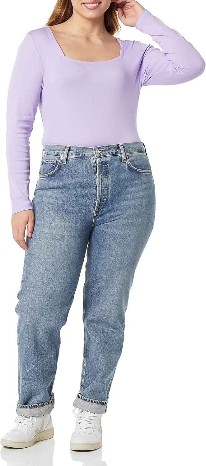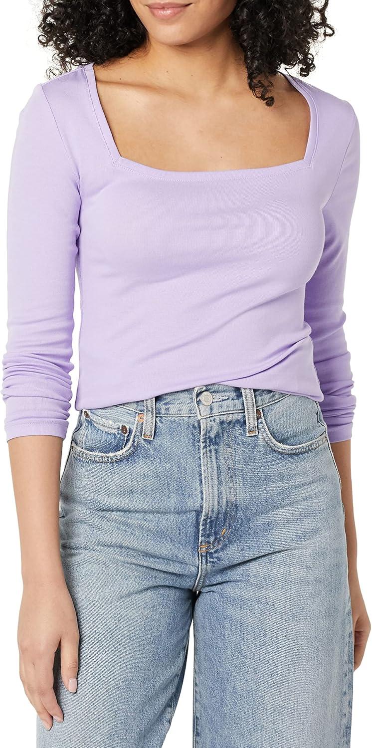 Amazon Essentials Women’s Slim-Fit Long Sleeve Square Neck T-Shirt(Lavender)