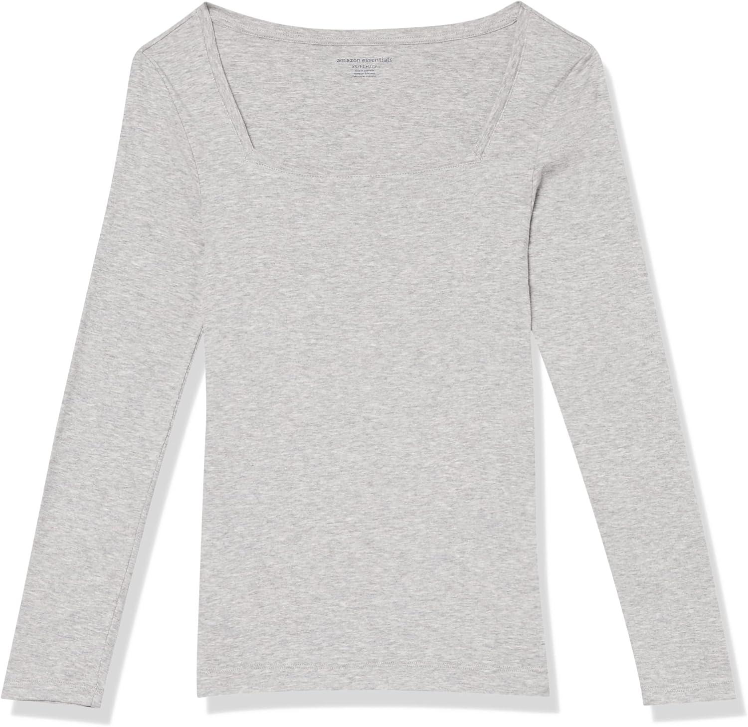 Amazon Essentials Women's Slim-Fit Long Sleeve Square Neck T-Shirt(Light Grey Heather)