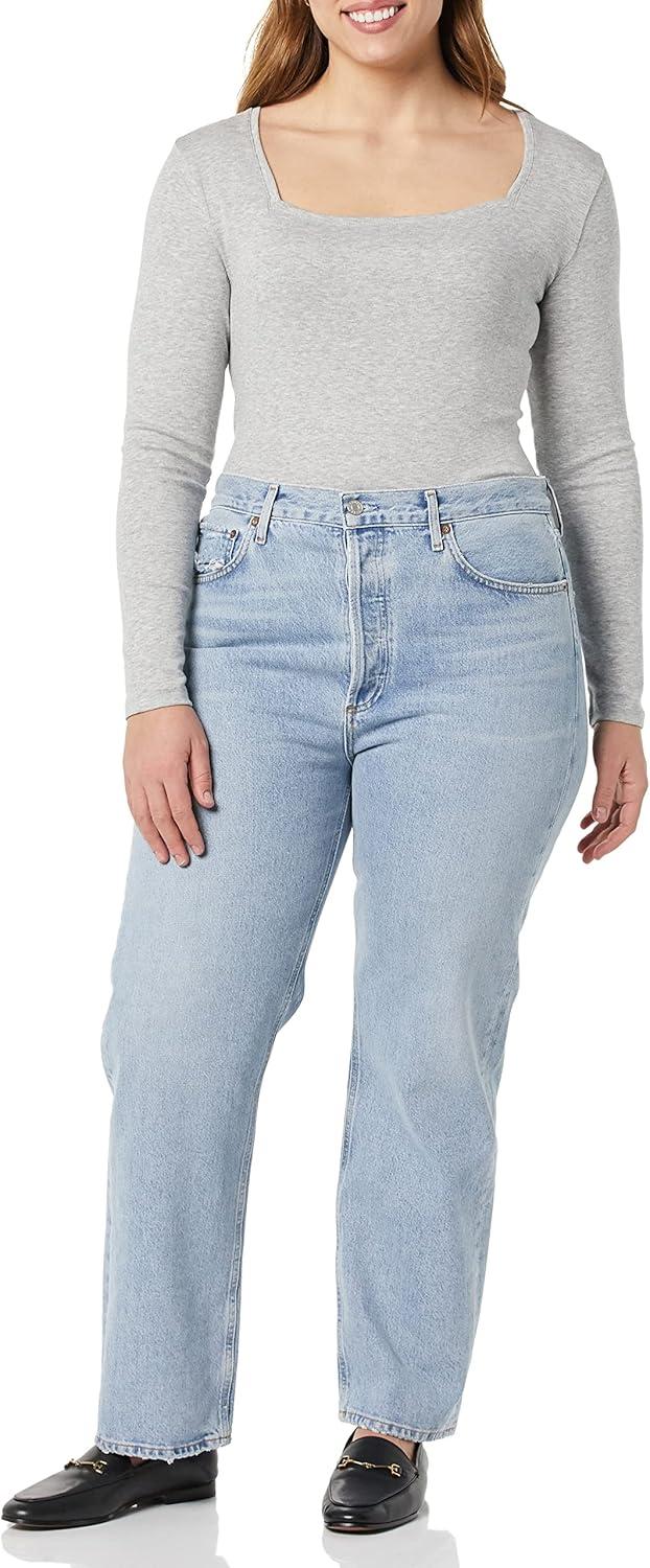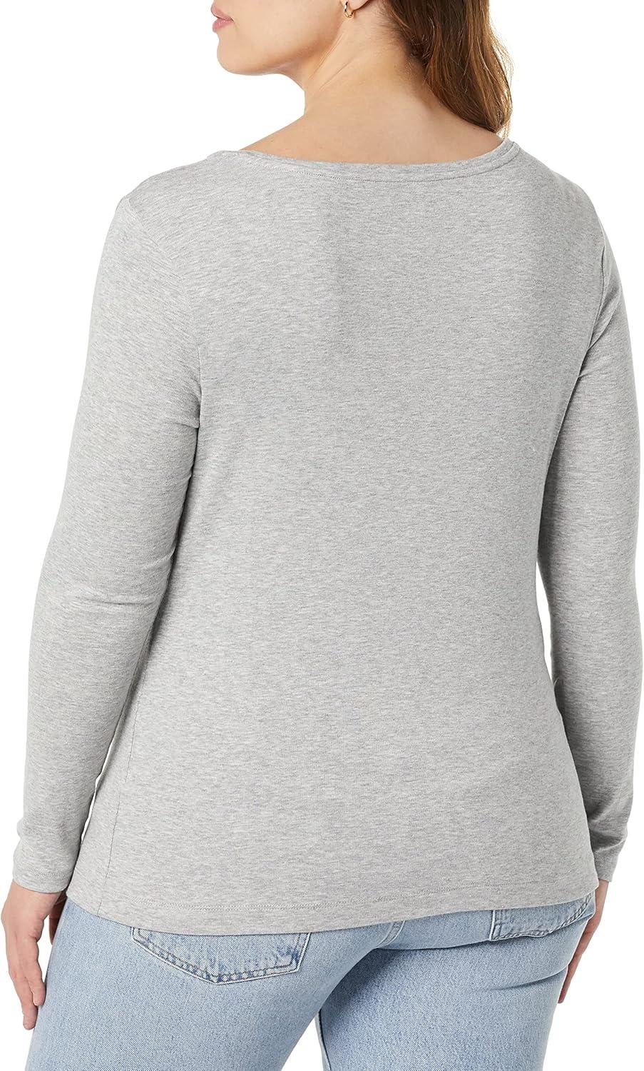 Amazon Essentials Women’s Slim-Fit Long Sleeve Square Neck T-Shirt(Light Grey Heather)
