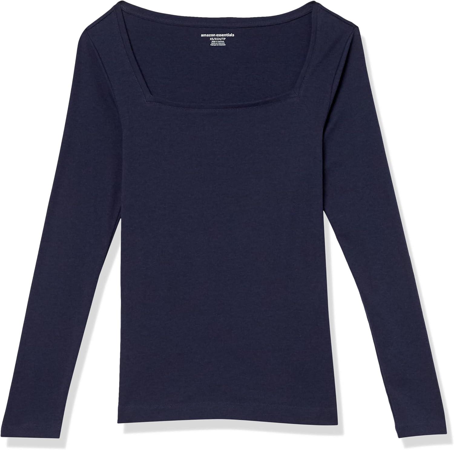 Amazon Essentials Women's Slim-Fit Long Sleeve Square Neck T-Shirt(Navy)