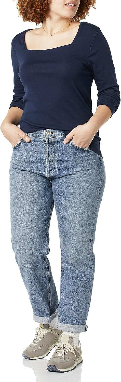 Amazon Essentials Women’s Slim-Fit Long Sleeve Square Neck T-Shirt(Navy)
