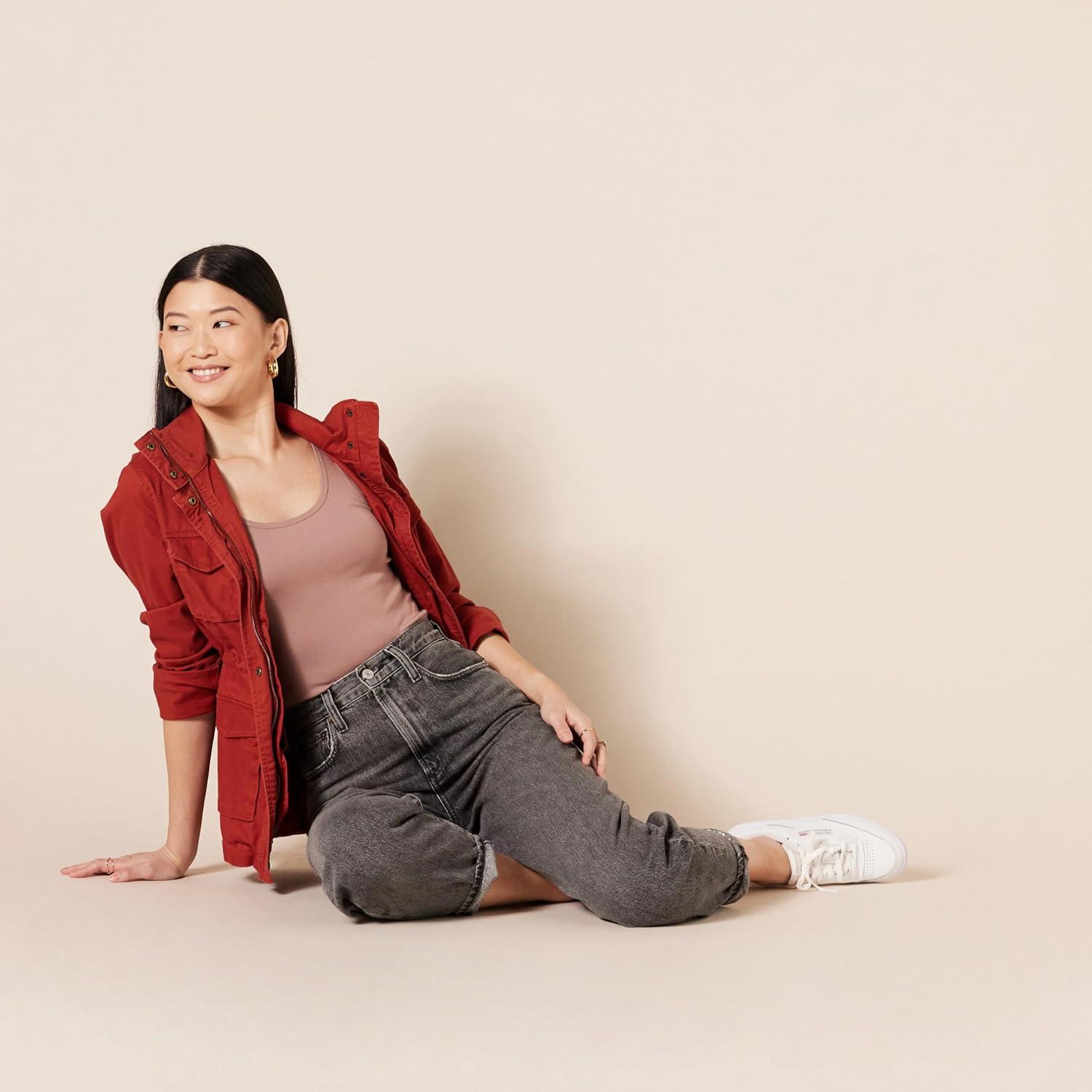 Amazon Essentials Women’s Slim-Fit Tank, Pack of 4(Black/Dark Olive/Navy/White)